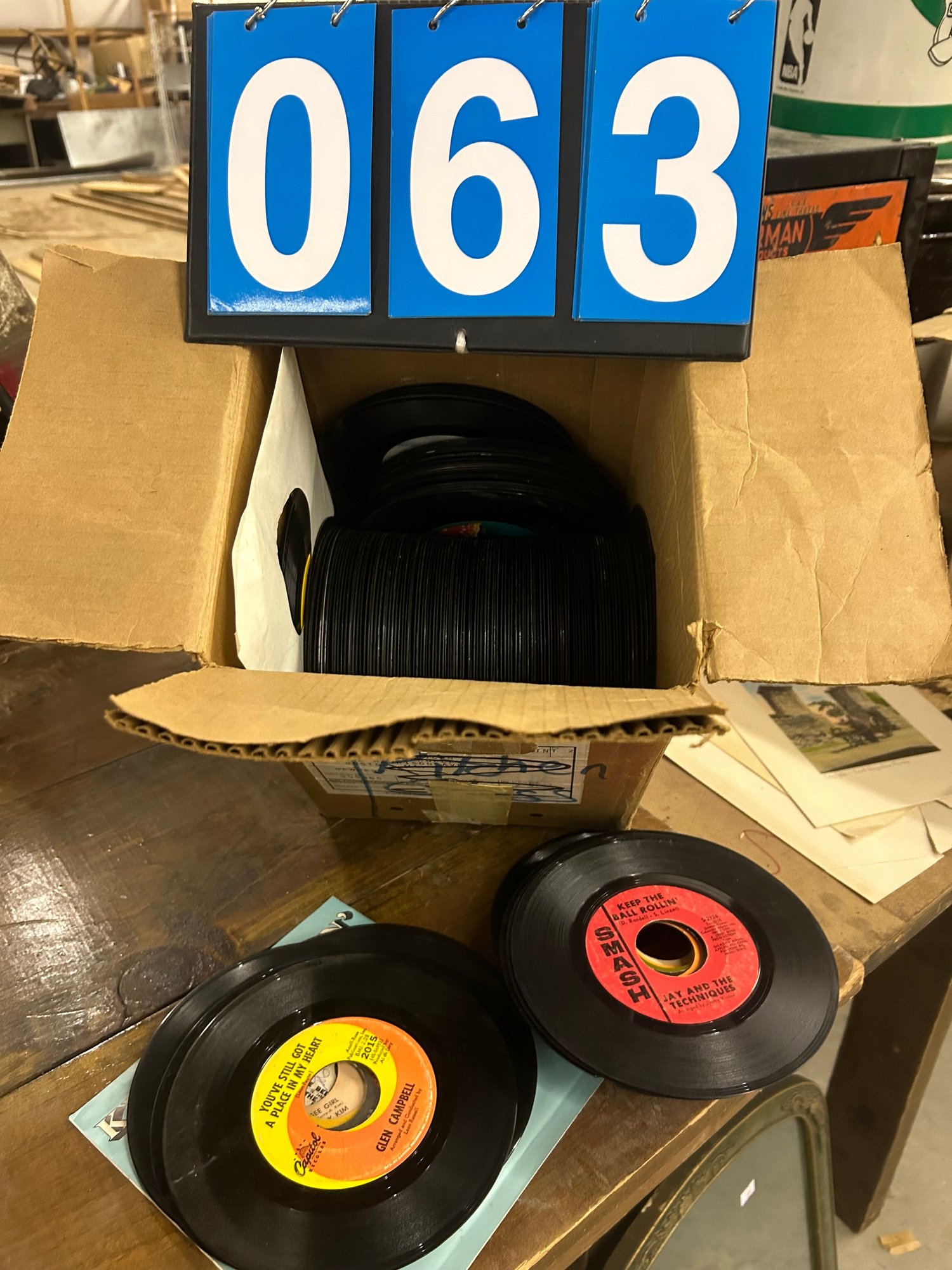 box full of 45 records most without jackets too many to picture or list come to the preview if you want to see them