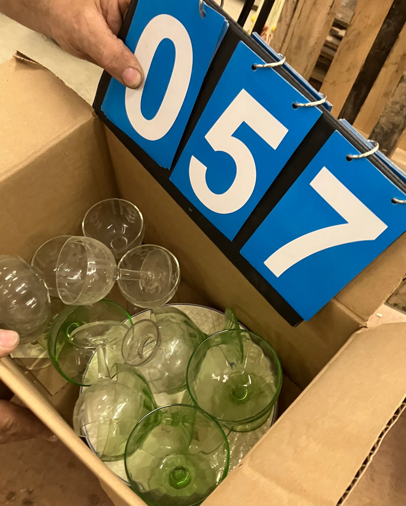 Box Of Glassware Incl Some Vaseline Green Goblets, Etc