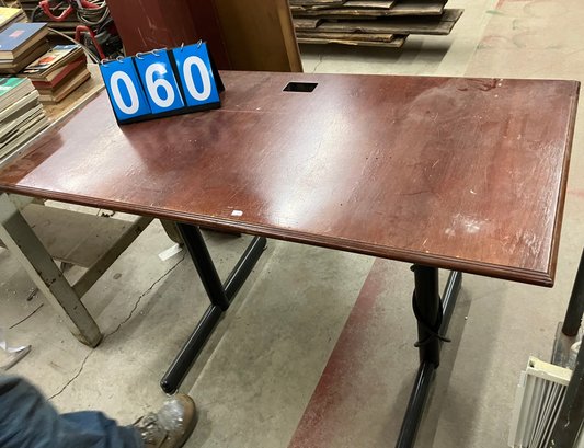 Computer, Printer And Office Desk With A Electric Plug Underneath