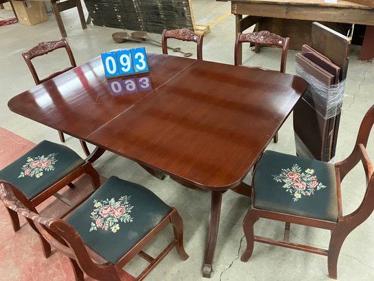 Dining Room Table W/2 Lvs And 6 Rose Carved Side Chairs, Ca 1940s
