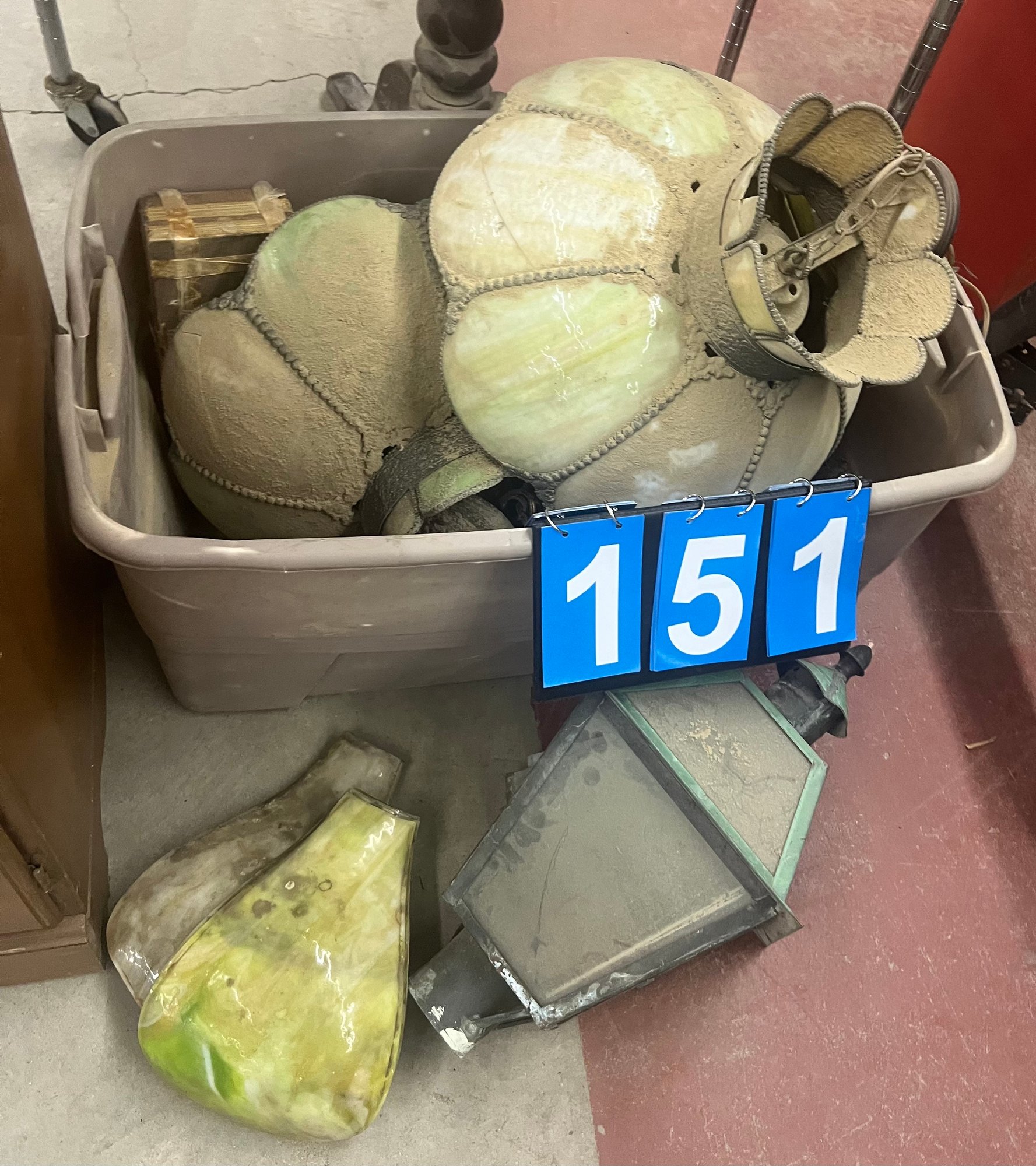 Lot Incl 2 Hanging Lamps, Copper Post Light, And Extra Antique bent slag glass Lamp Panels