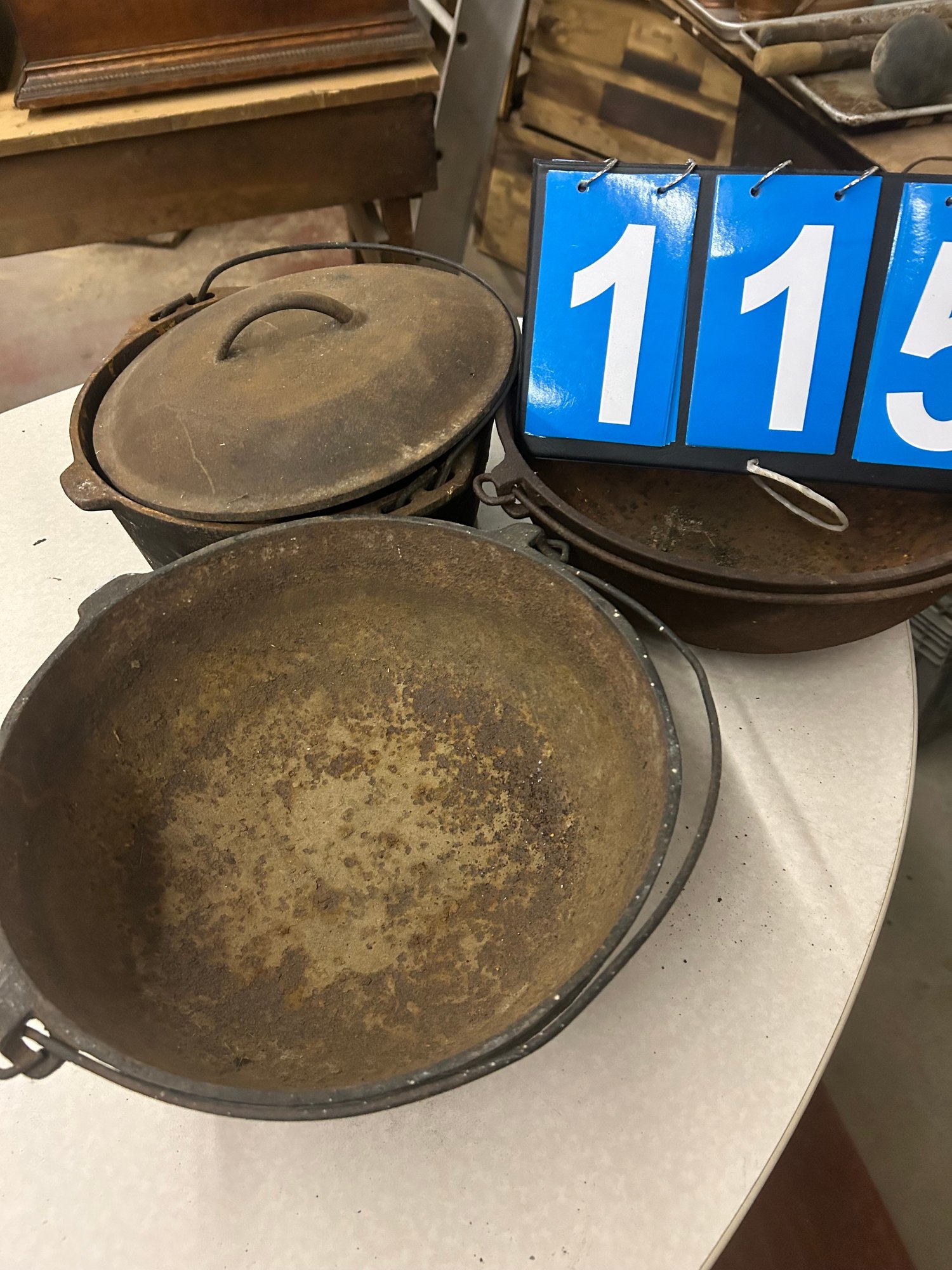 lot of 3 cast iron pots one signed lodge