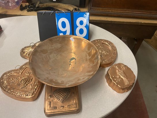 lot of copper molds and copper pot