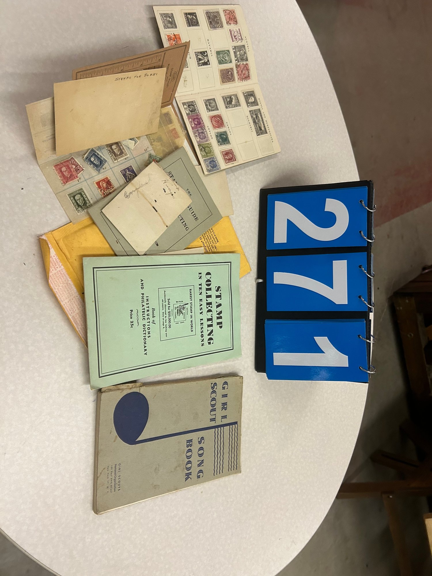 lot of stamps and girl scout book