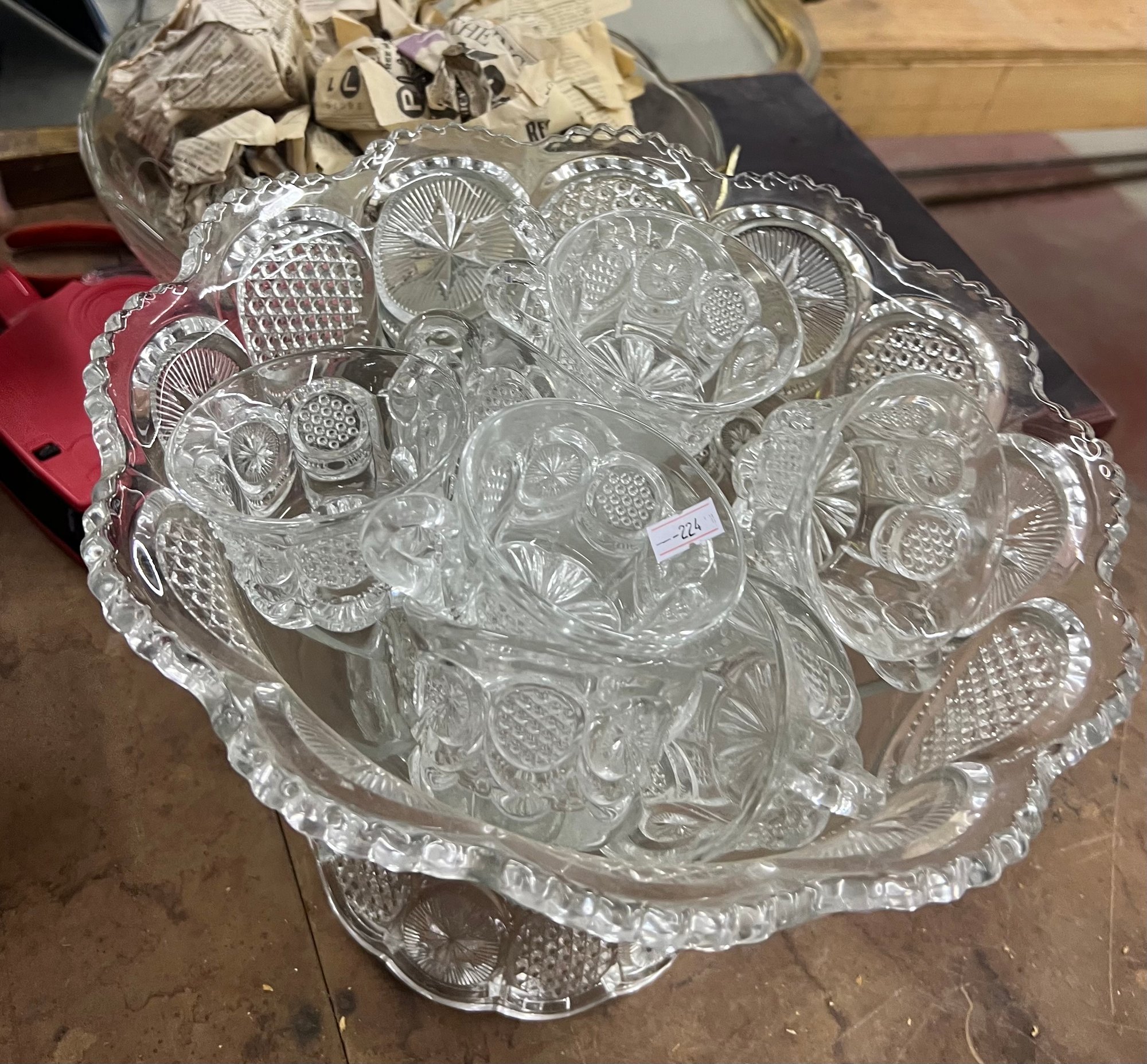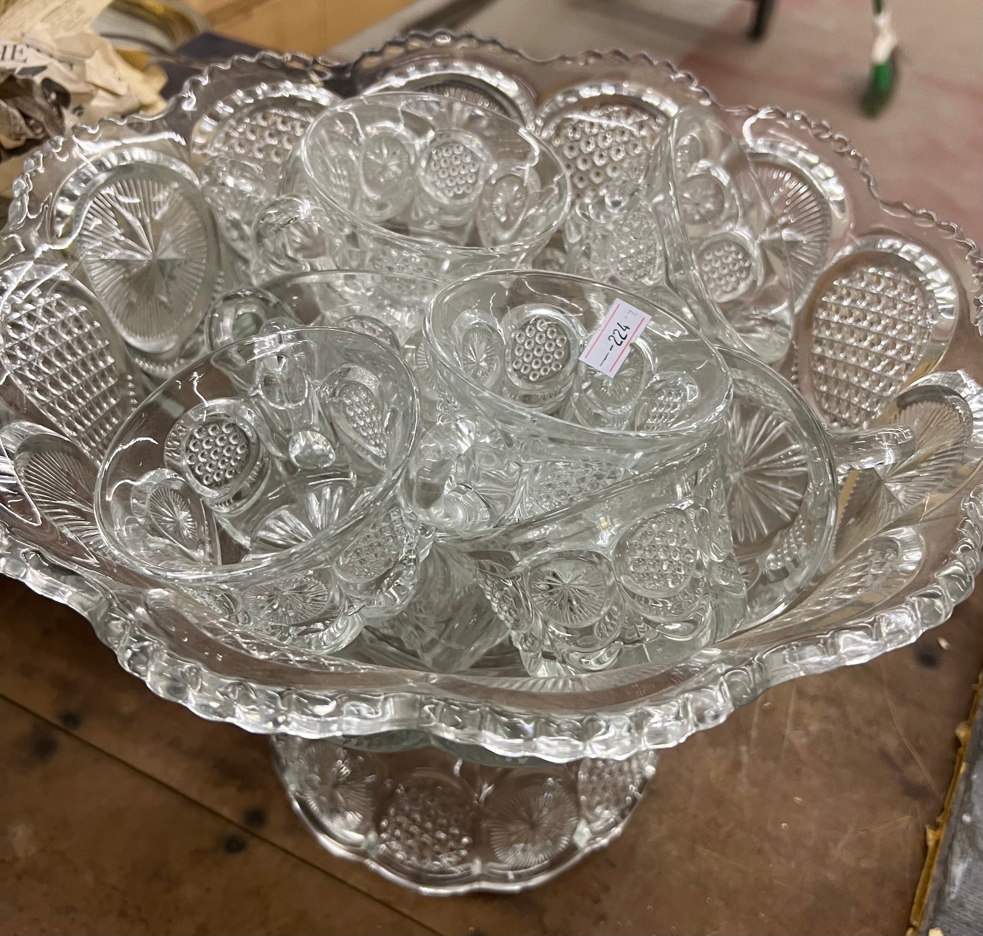Lot Of Two Pressed Glass Punch Bowls With Cups