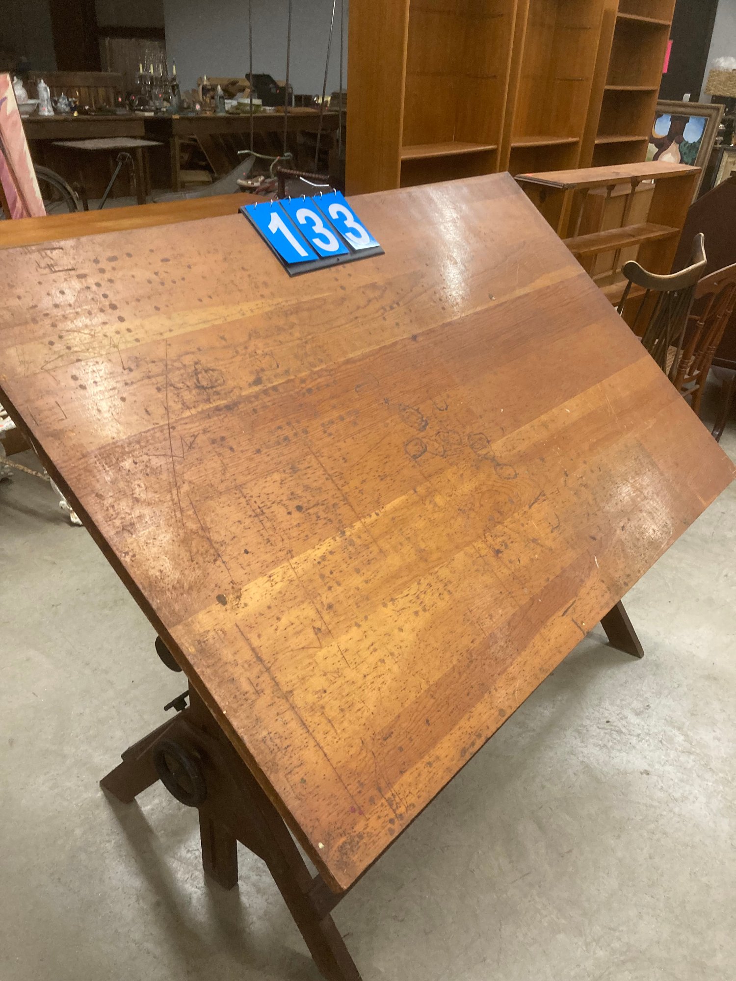 nice old oak drafting table signed
