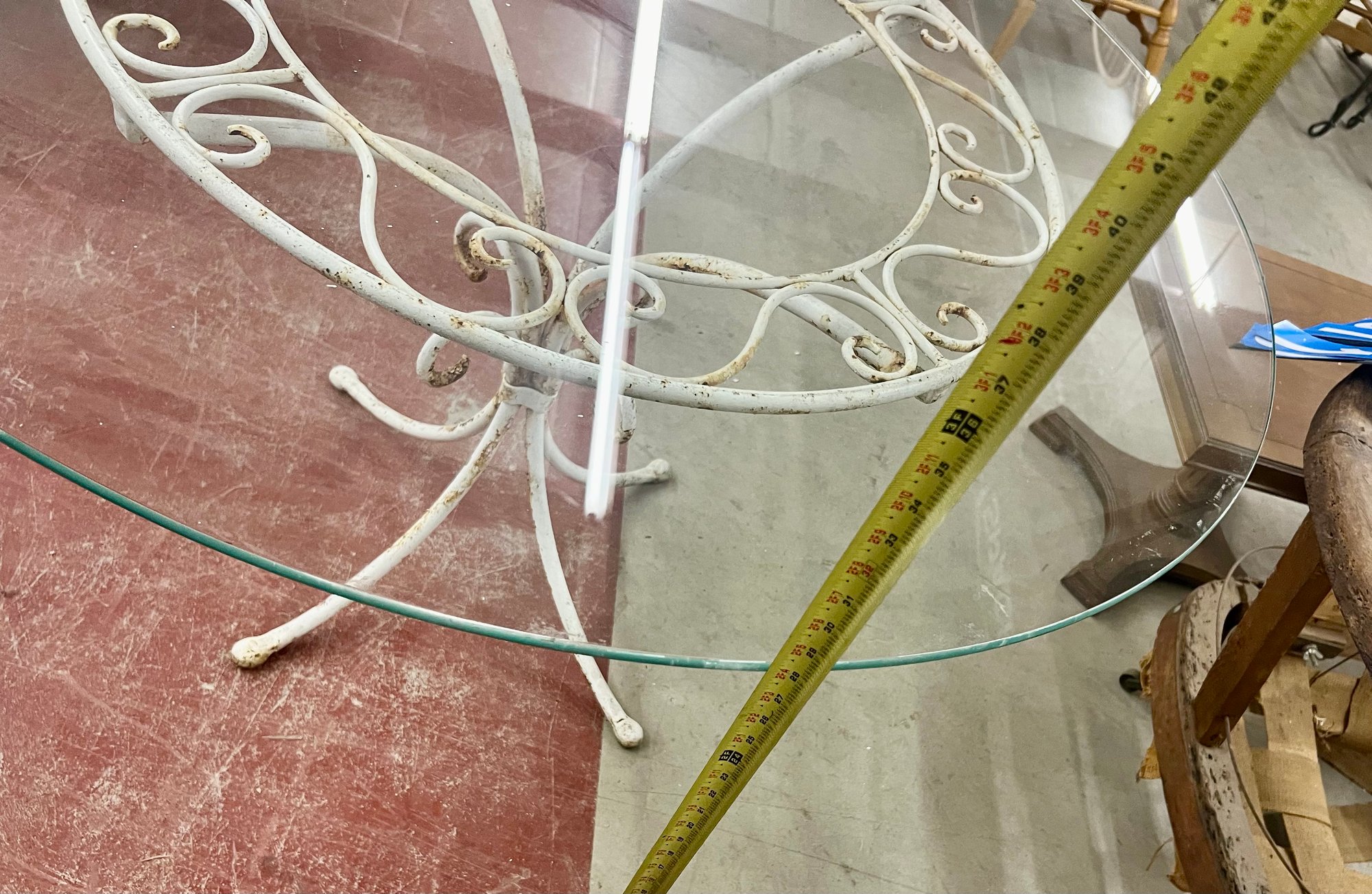 Great Quality Wrought Iron Round Porch Table With Glass Top
