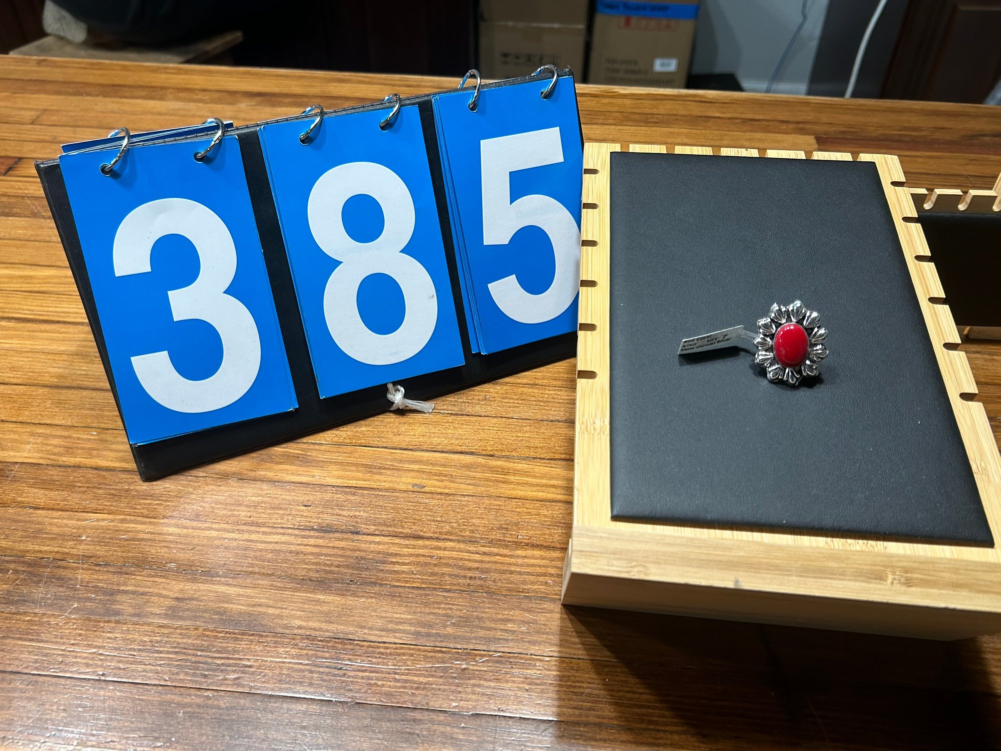 red coral size 7 ring set in german silver