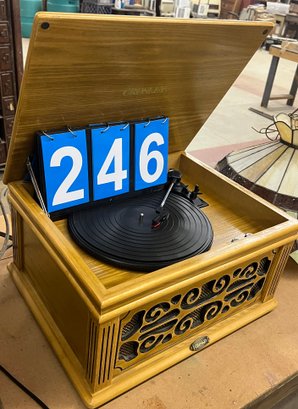 Reproduction Crosley Oak Phonograph Record Player With Black Turntable In Oak Case
