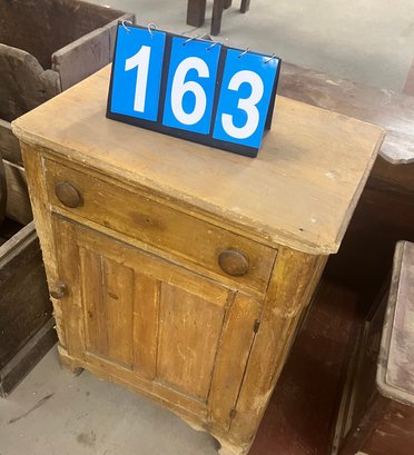 Small Size Antique Pine One Door Commode With Drawer