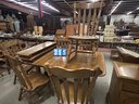 solid oak 67" dinning table and 6 chairs with 2 12" leafs