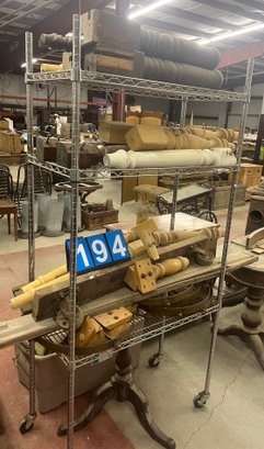 Tall Steel Rolling Metrocart With Contents Including Table Legs Etc