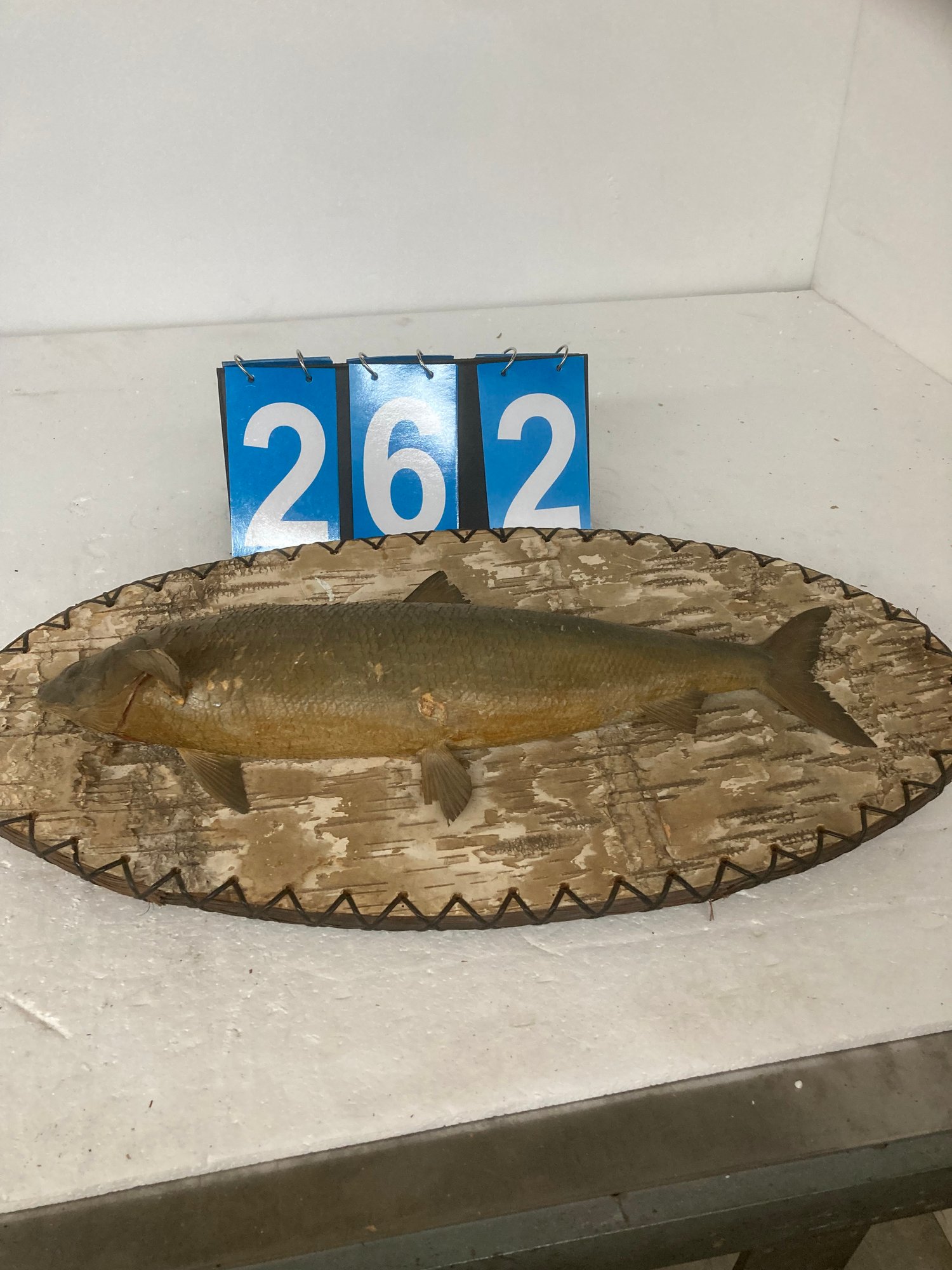 Taxidermy Fish mounted on white birch one small fin missing