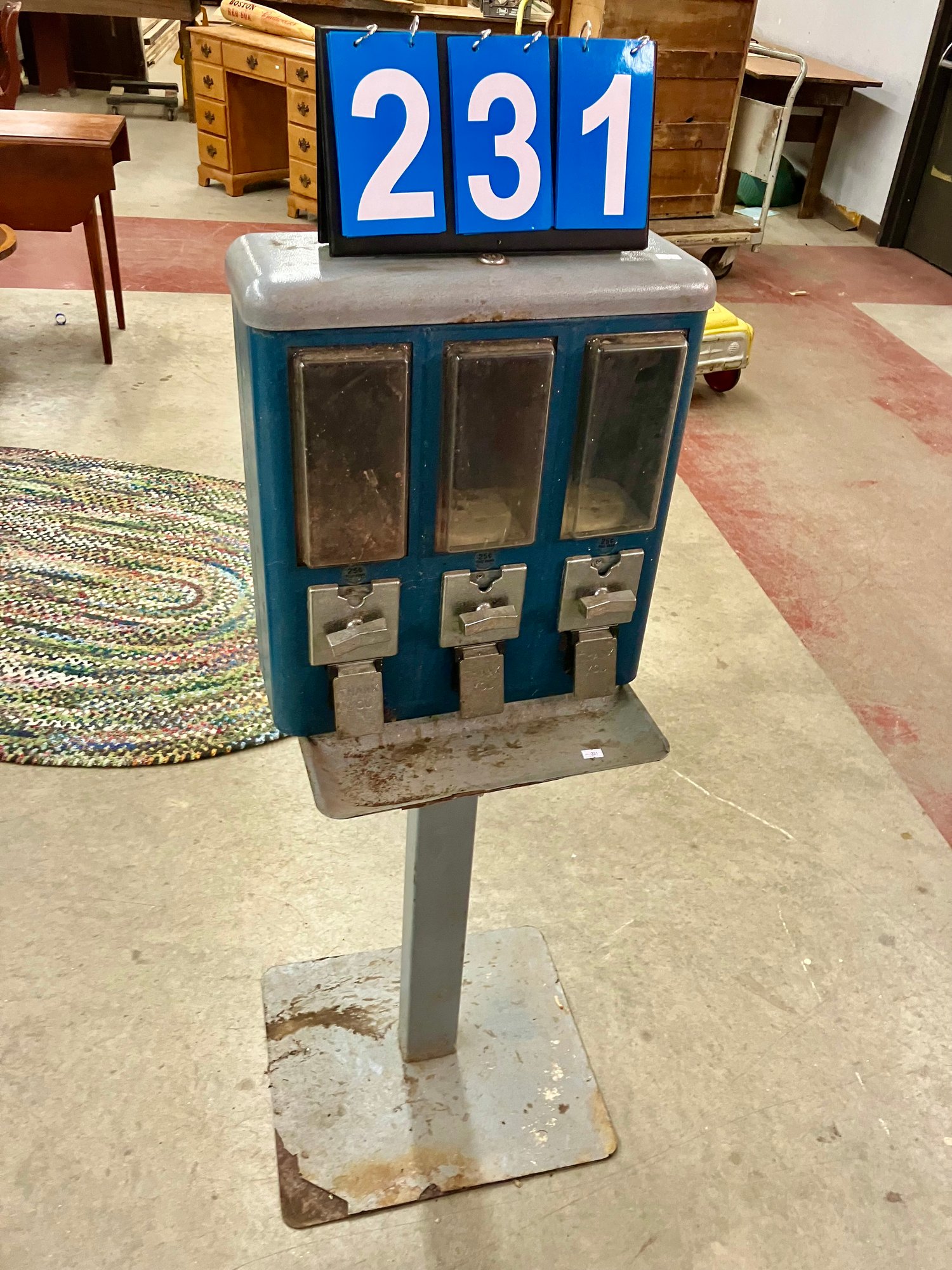 Triple Play Vending Gumball Machine In Blue Paint On Metal Base