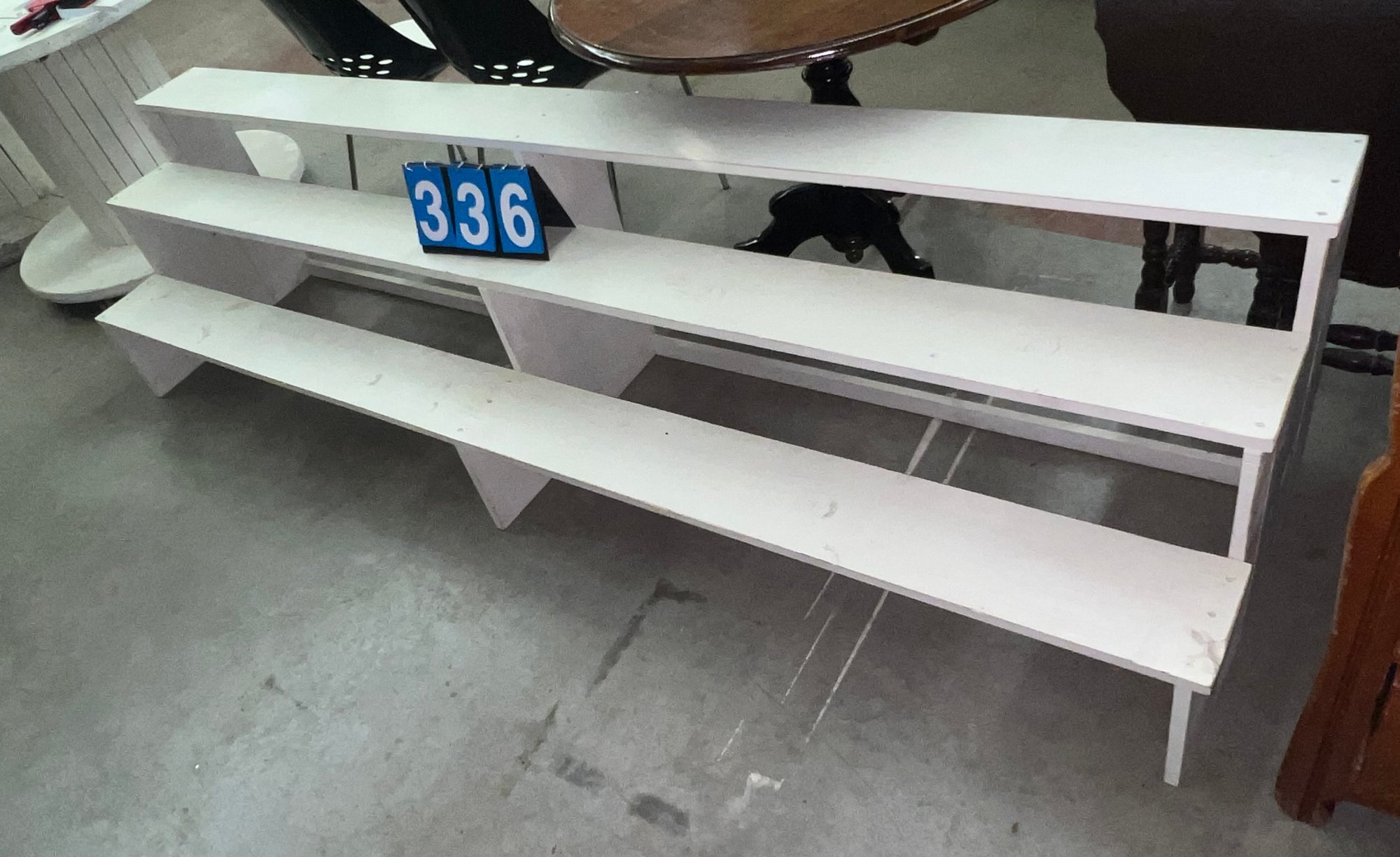 White Painted Wood 3 Tier Plant Shelf Or Store Display Shelf, 8'Long