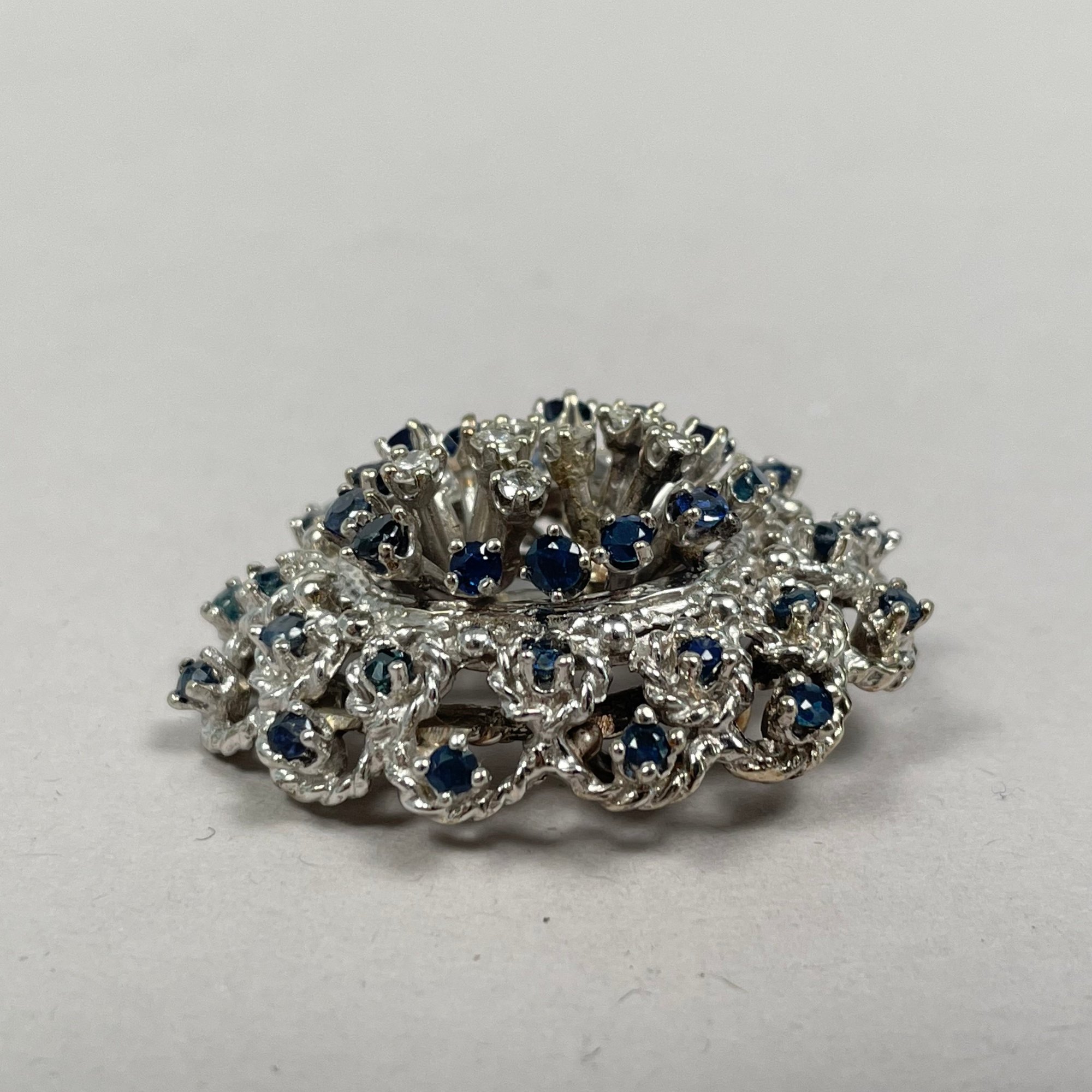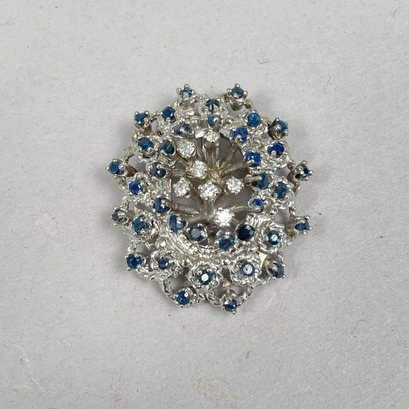 10K White Gold, Diamond and Sapphire Pendant Brooch.