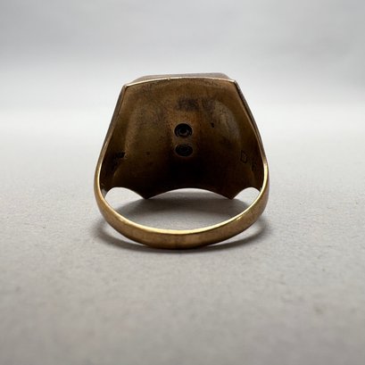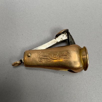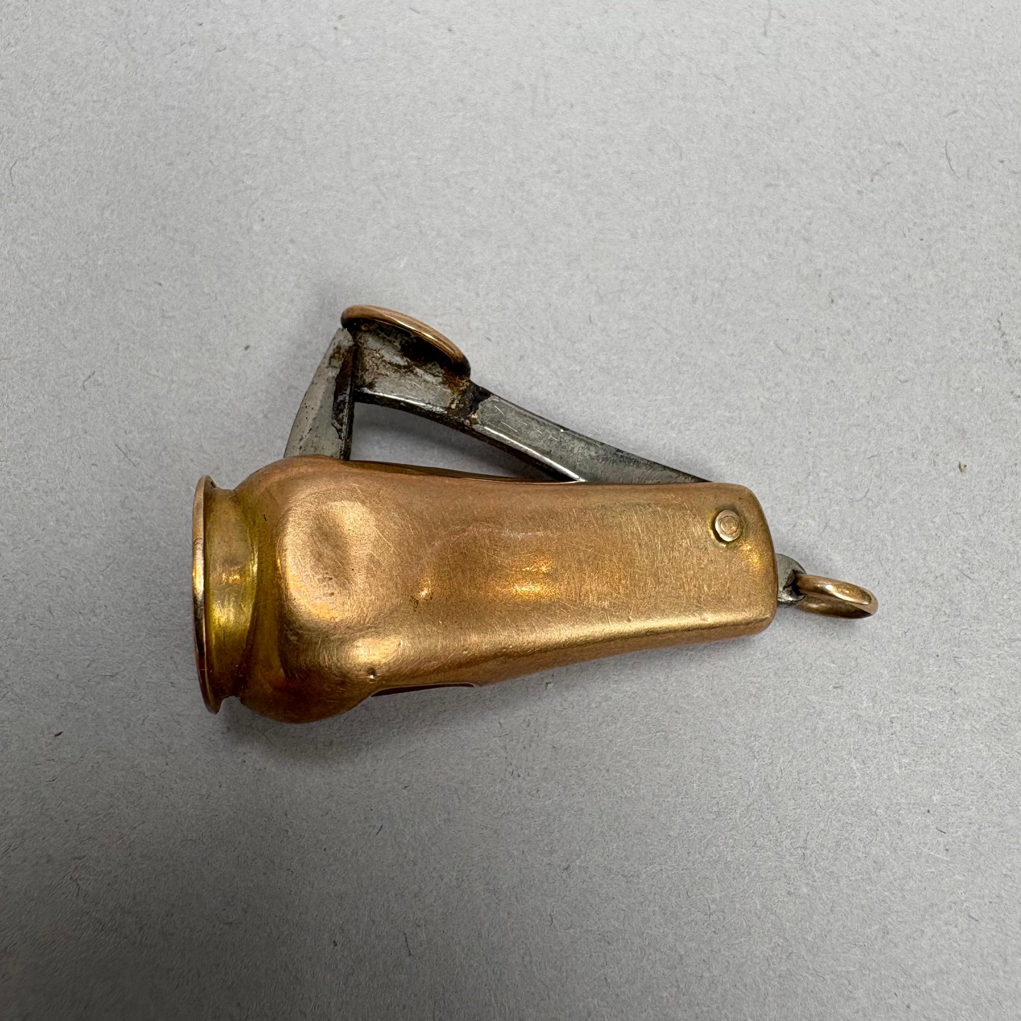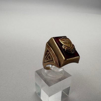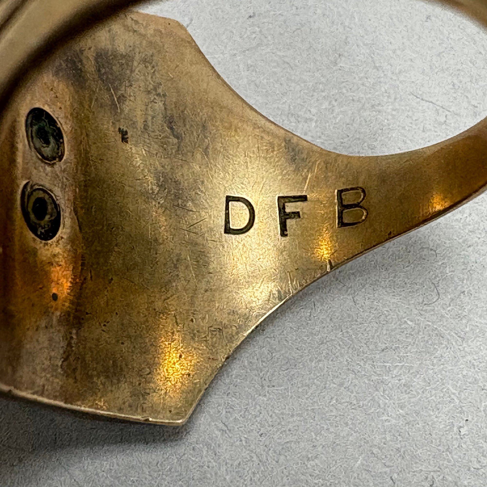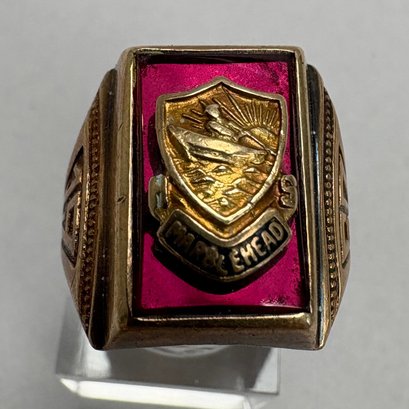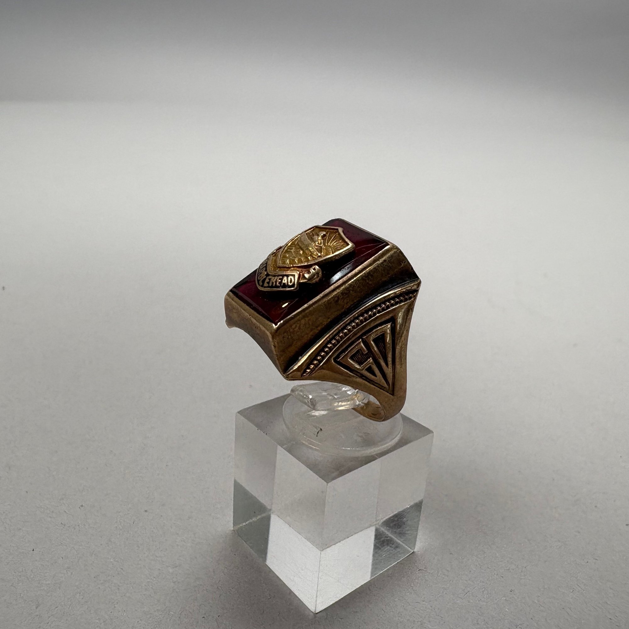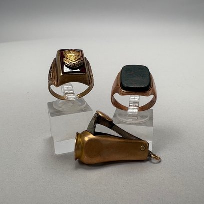 10k Yellow Gold Cigar Cutter, Bloodstone Ring and a Marblehead High School Yellow Gold Class Ring. The cigar cutter engraved with the initials "WCF" in script letters, marked "10KA;" the class ring engraved with the initials "DFB," marked "10k" and "WALLBANE."
