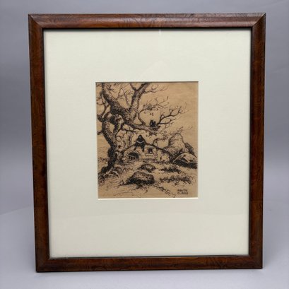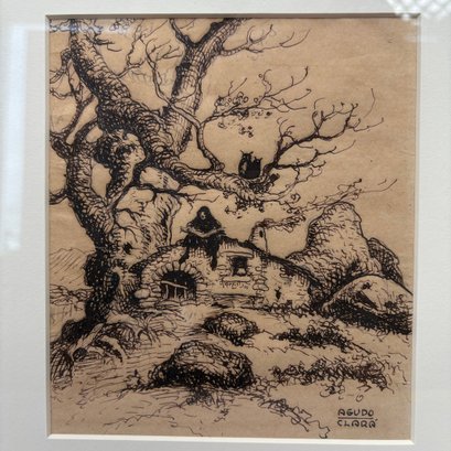 Ignacio Agudo Clara (1880, Zaragoza -1966, Ibiza, Spain). Reading on the Cottage Rooftop. Etching, signed "AGUDO/ CLARA" lower right, (6.625 x 5.75 inches, sight).