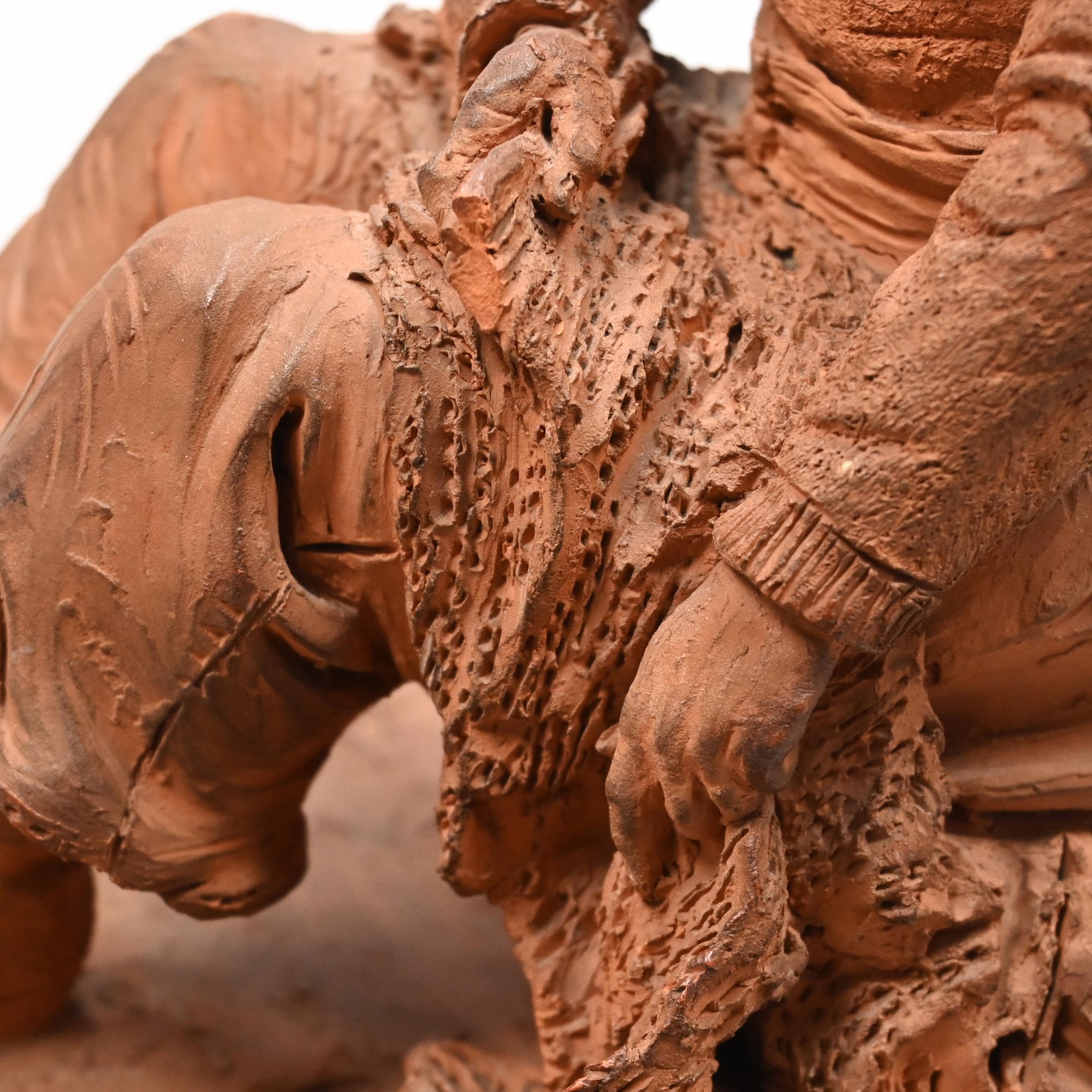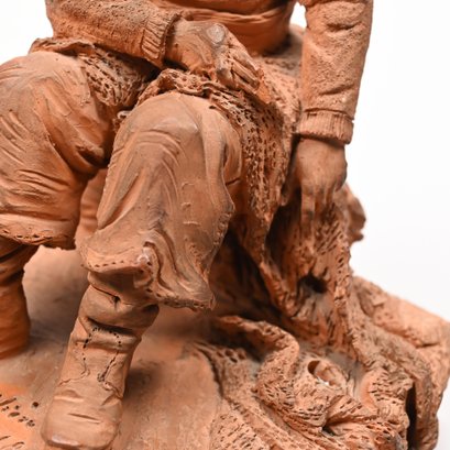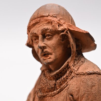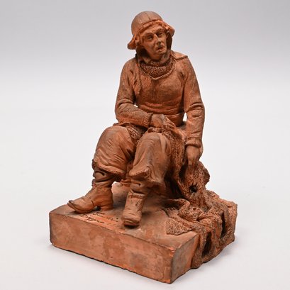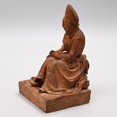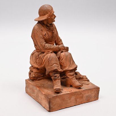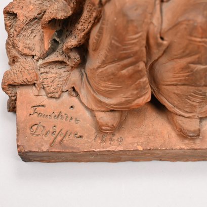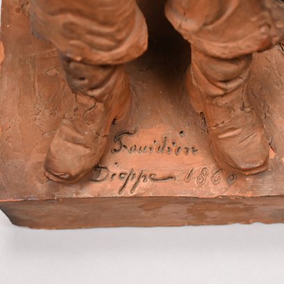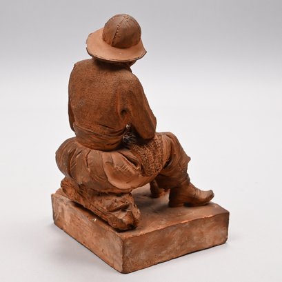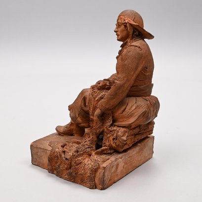 Adrien Fourdrin (French, 19th Century). Pair of Terracotta Figures of a Fisherman and His Wife, Dieppe, 1869. Each seated and repairing a net, each signed "Fourdrin/ Dieppe 1869."