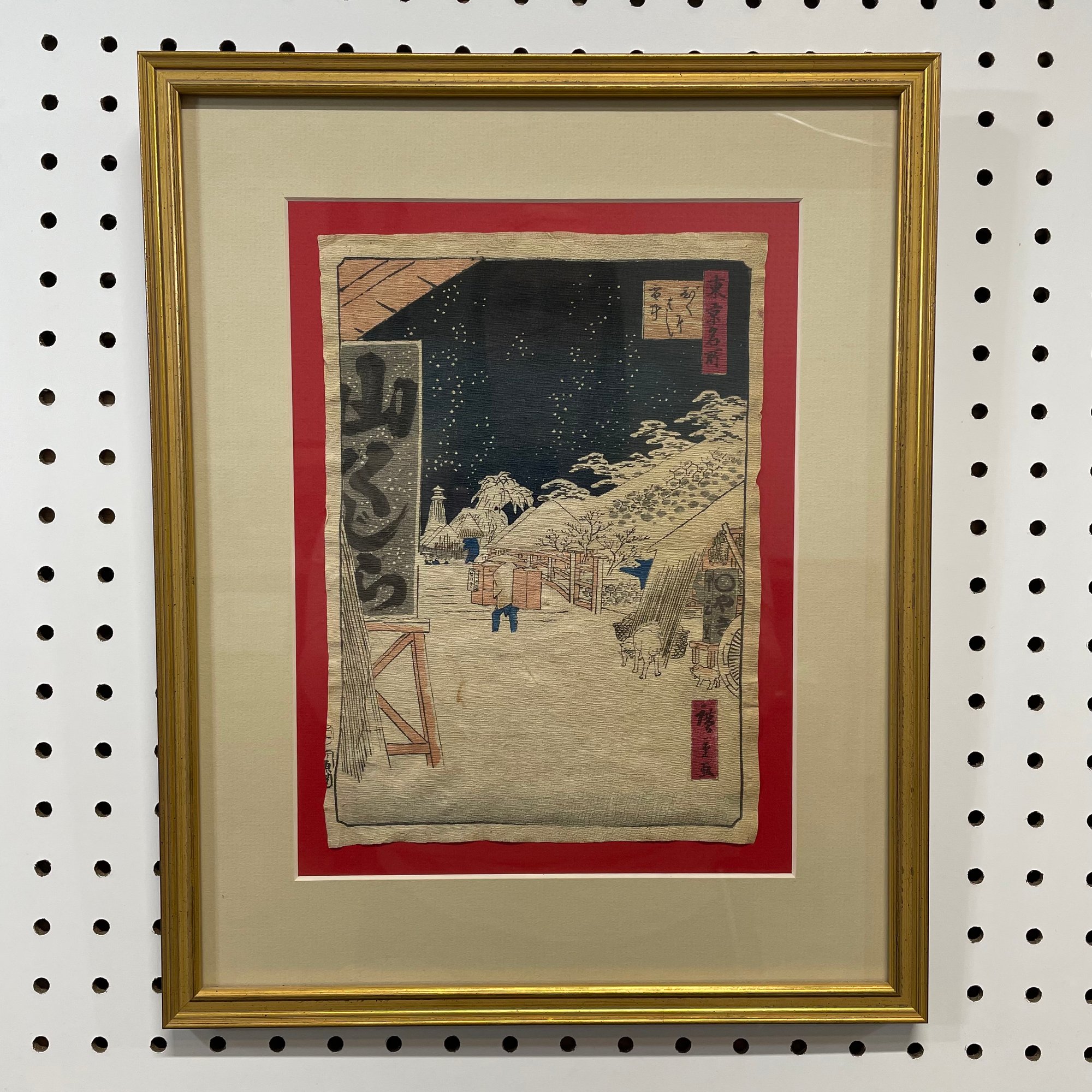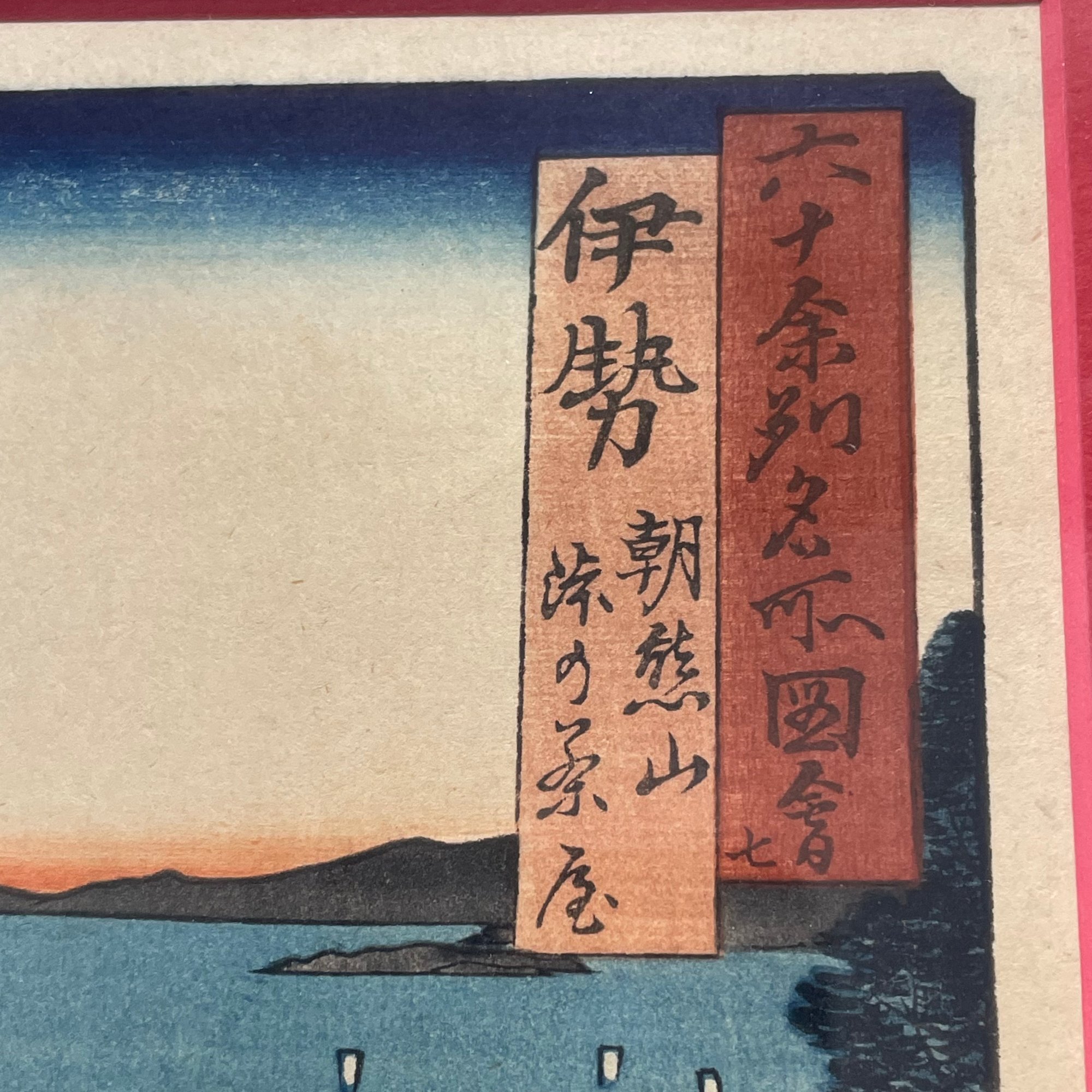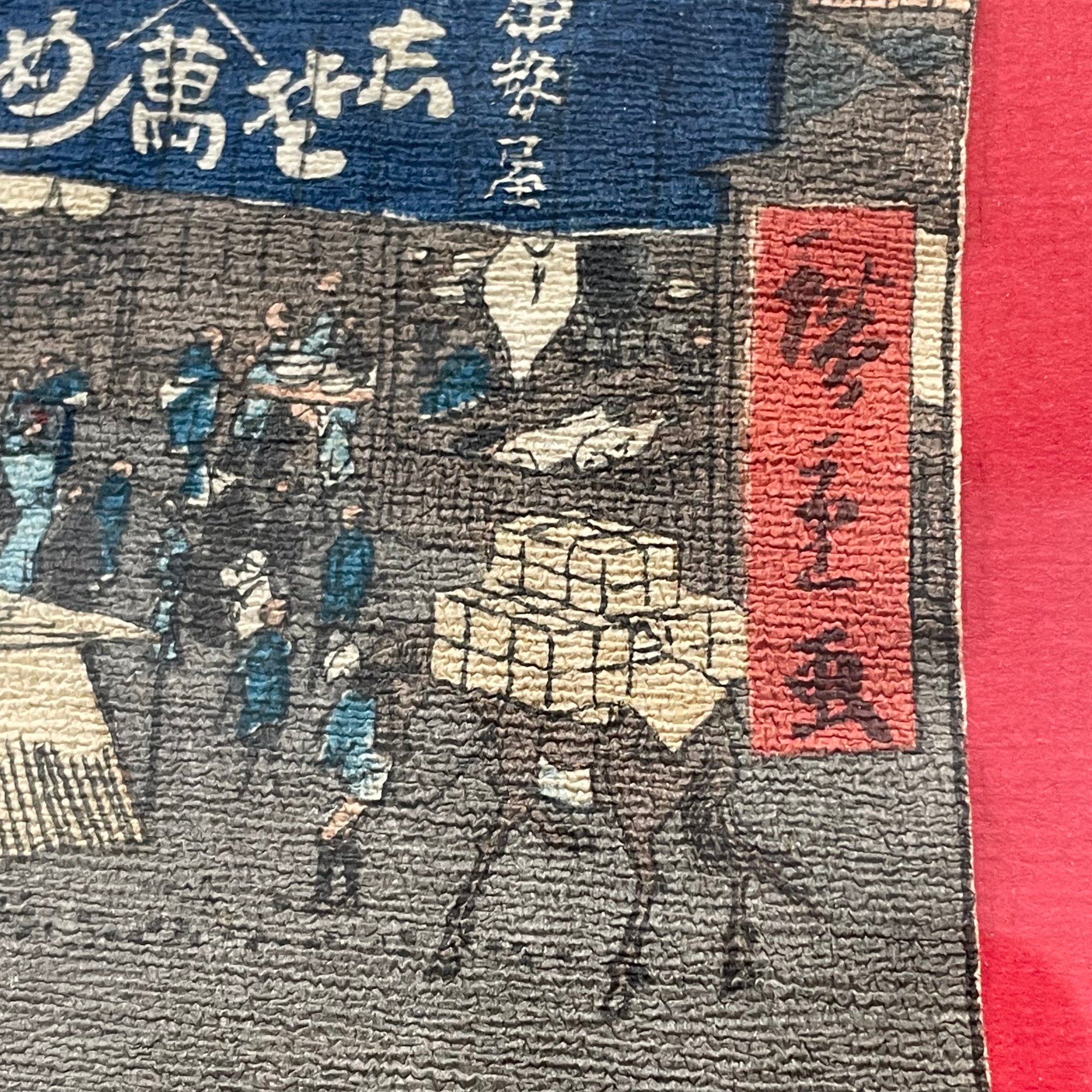 After Utagawa Hiroshige. Three Japanese Woodblock Prints. One depicting a view from "Famous Places in the Sixty-Odd Provinces: Ise Province, Mount Asama, Teahouses on the Mountain Pass," (11 x 8 inches); and two depicting views from the "One Hundred Views of Edo: Ueno Yamashita" (10.5 x 7.375 in.) and "Bikuni Bridge in Snow," (10.25 x 7.375 in.).