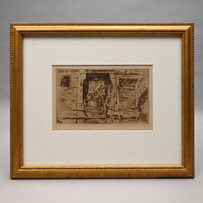 After James Abbott McNeill Whistler (American, Lowell, Massachusetts, London, 1834-1903). "Fish Shop, Venice." Print, (image 4.375 x 7.5).