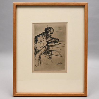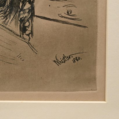 After James Abbott McNeill Whistler (American, Lowell, Massachusetts, London, 1834-1903). "Riault (The Wood Engraver). Print, signed "Whistler 1860" lower right, (image 6.75 x 4.75 inches).