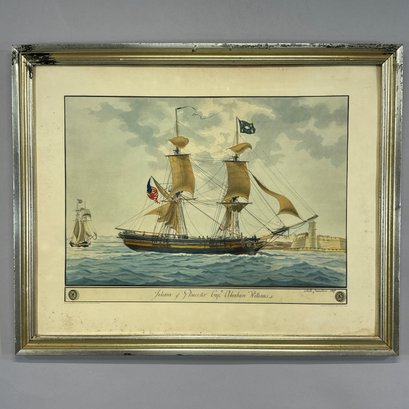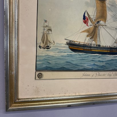 After Nicola Cammillieri. "Juliana of Gloucester Cap.ne Abraham Williams." "From the original watercolor in the Peabody Museum of Salem, Massachusetts" lower left and "Reproduced in collotype by The Meriden Gravure Company."