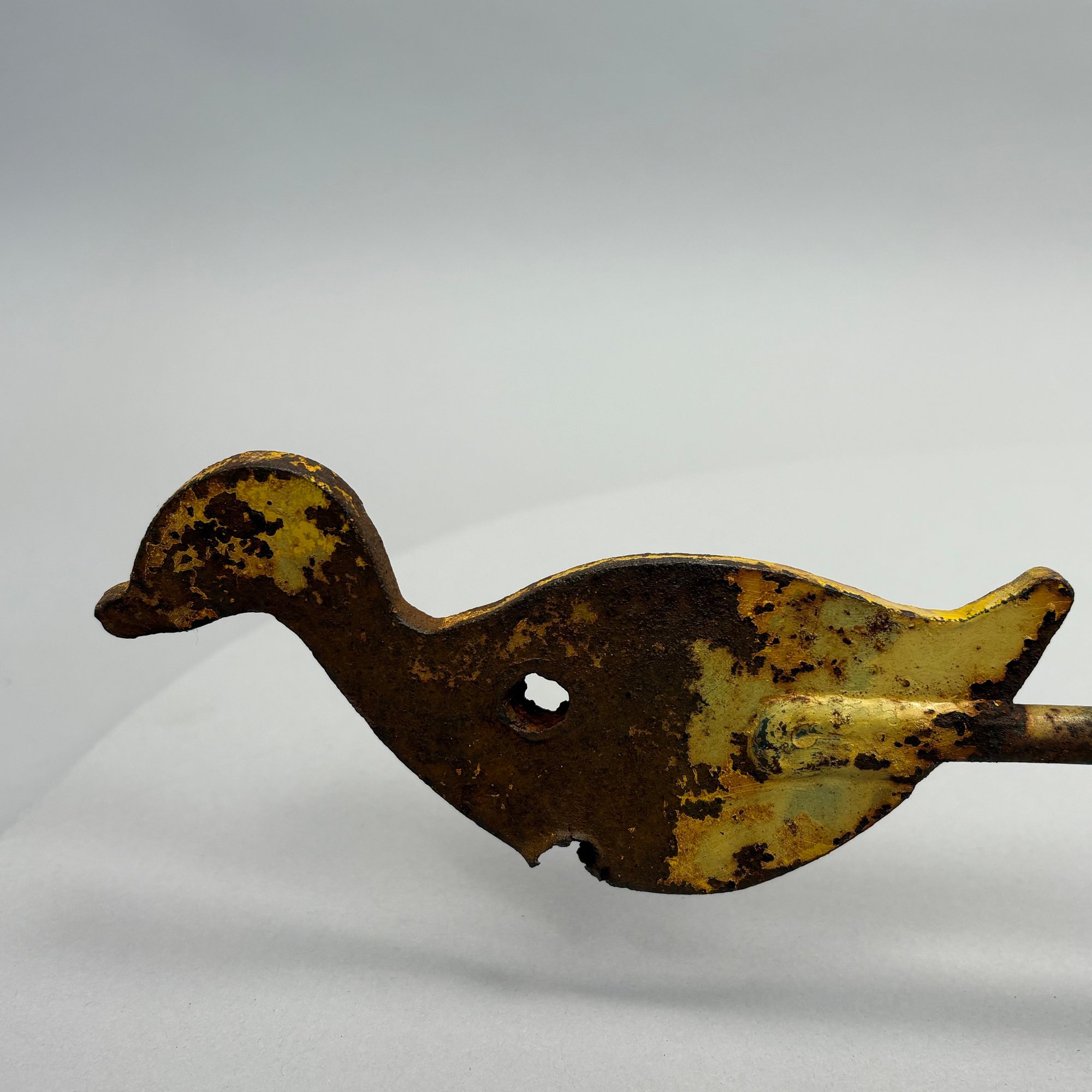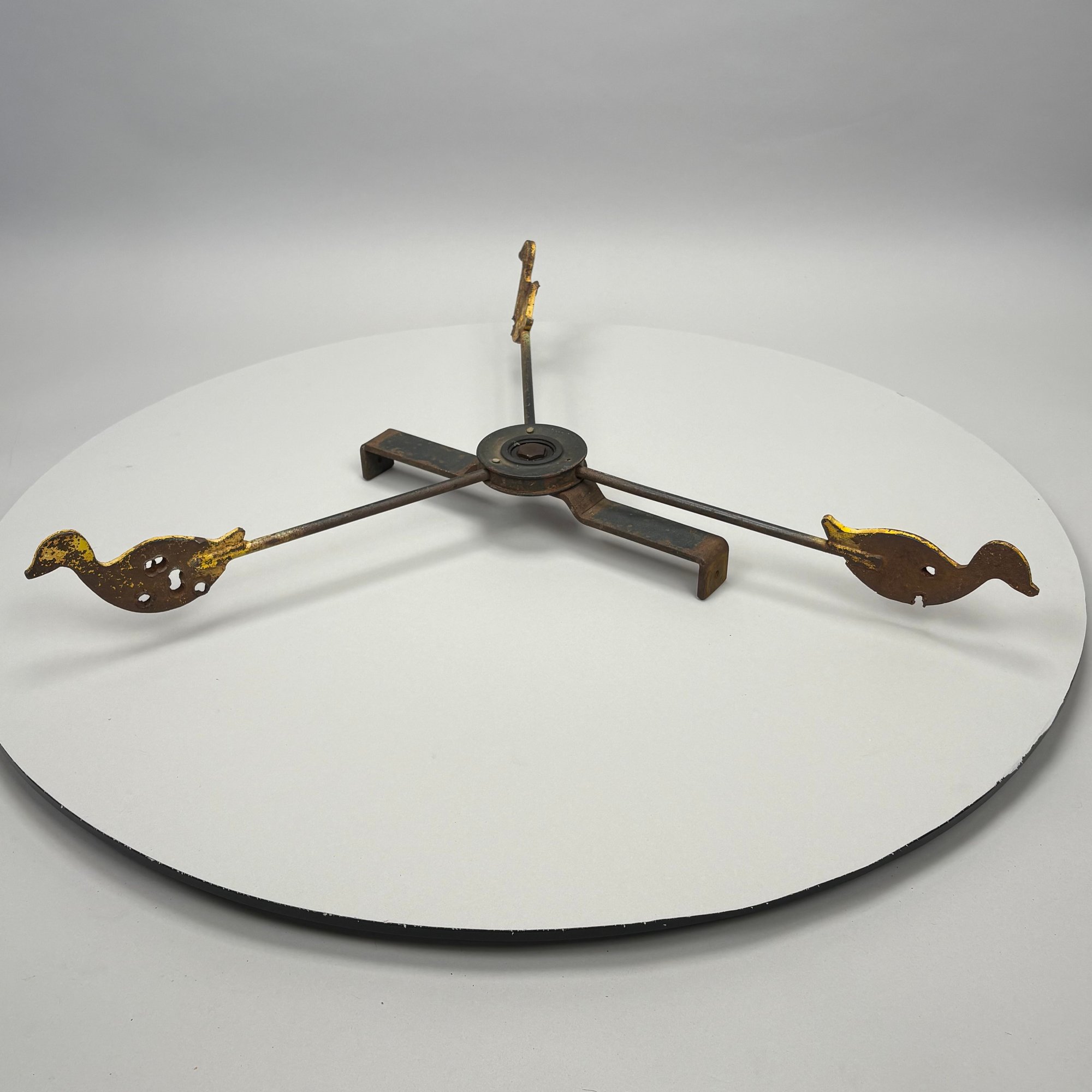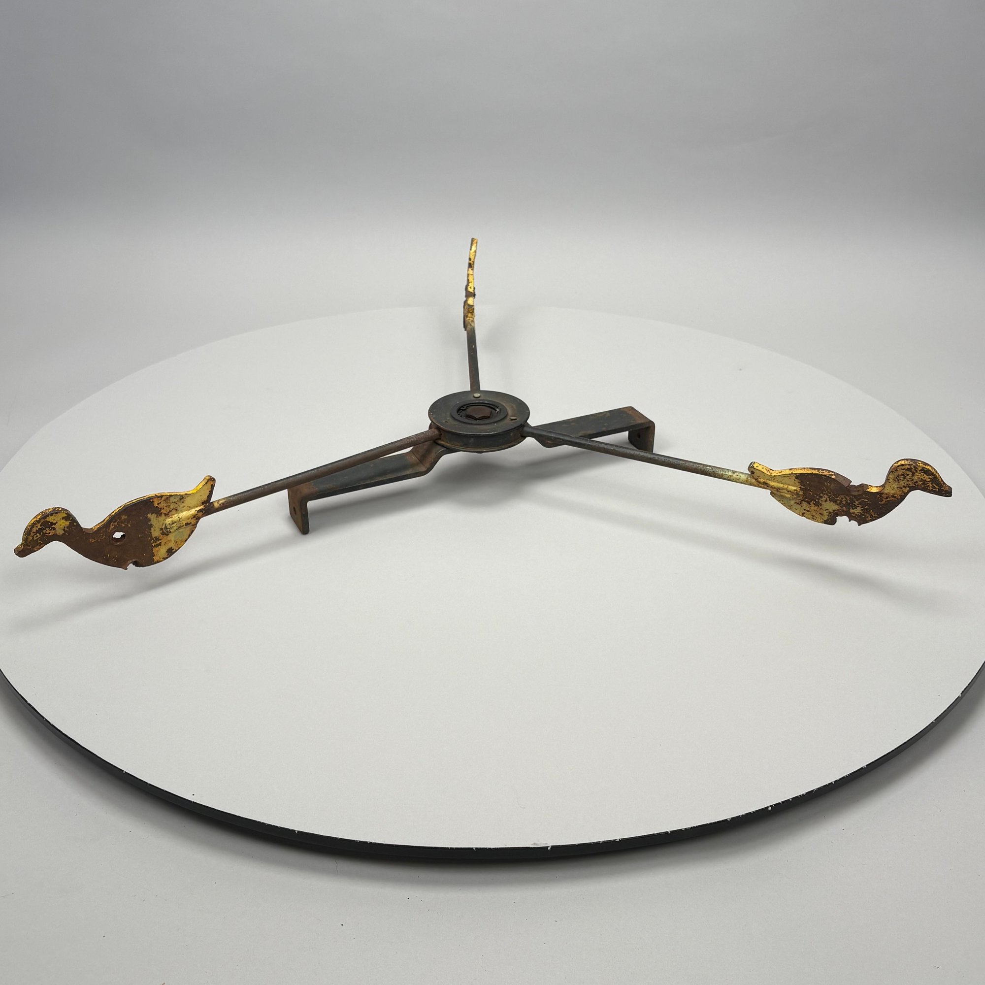 Paint-Decorated Iron Shooting Gallery Target. The three rods each fitted on the end with a yellow duck.