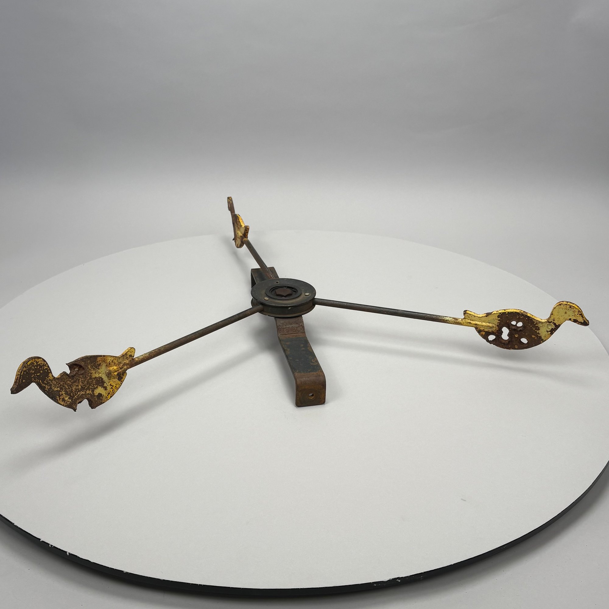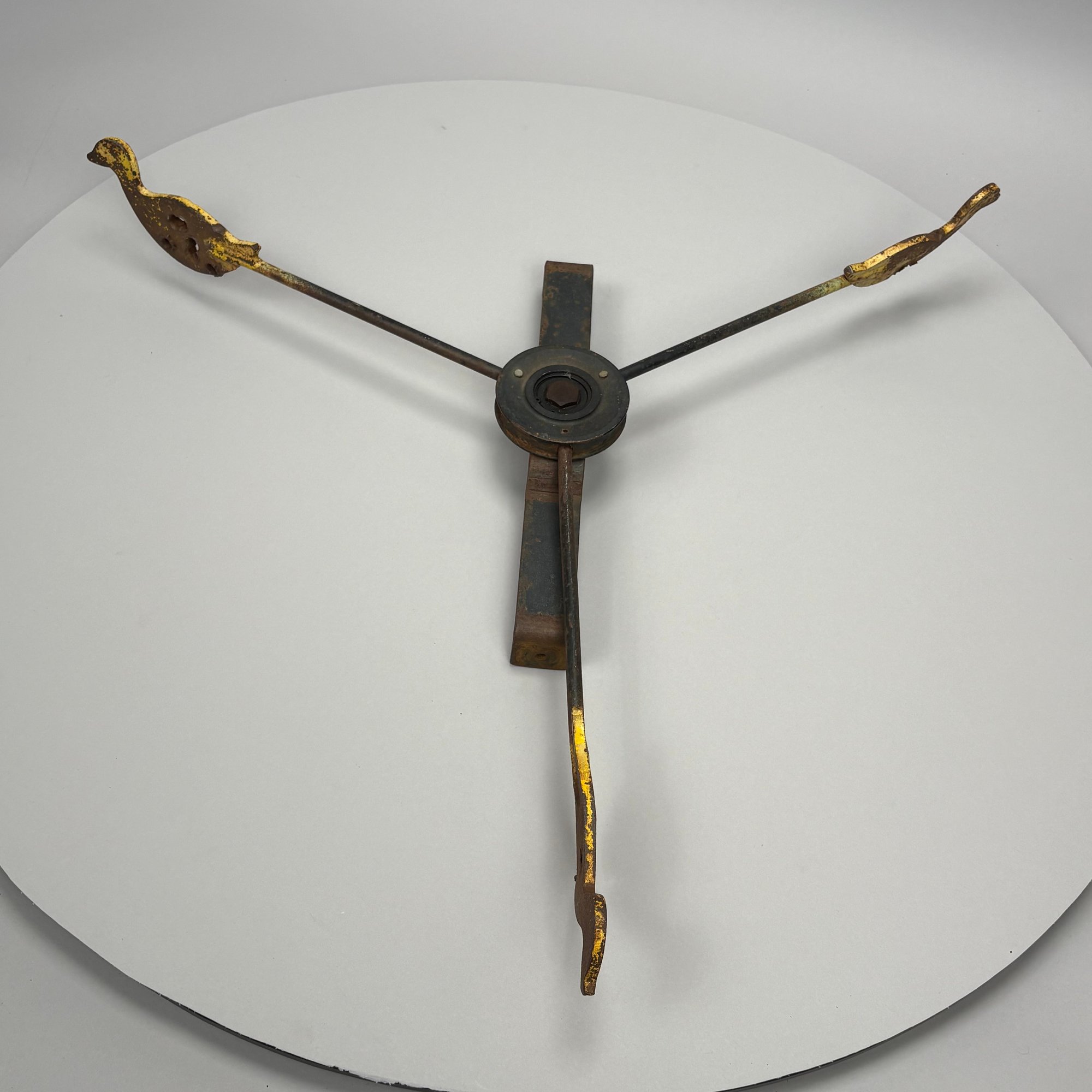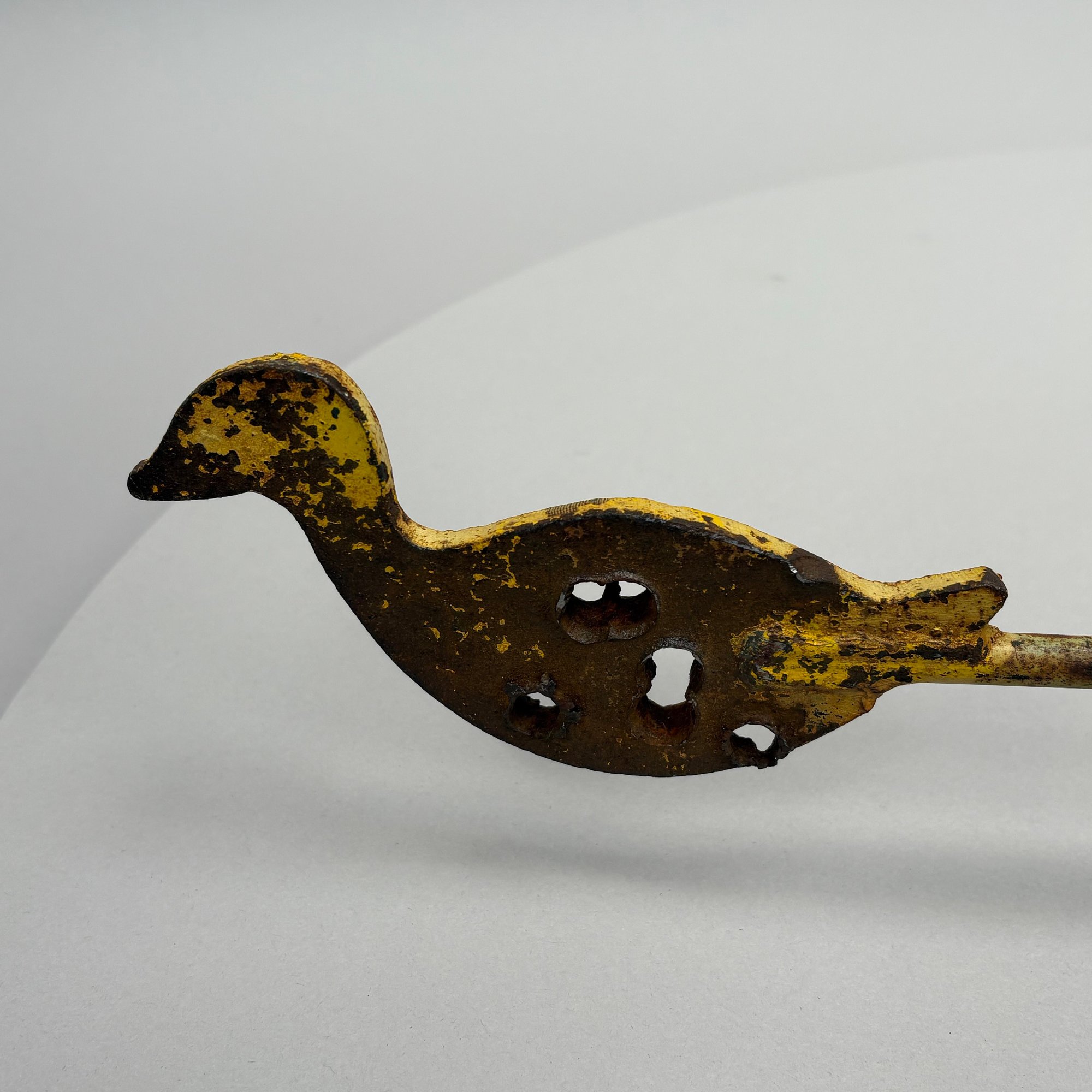 Paint-Decorated Iron Shooting Gallery Target. The three rods each fitted on the end with a yellow duck.