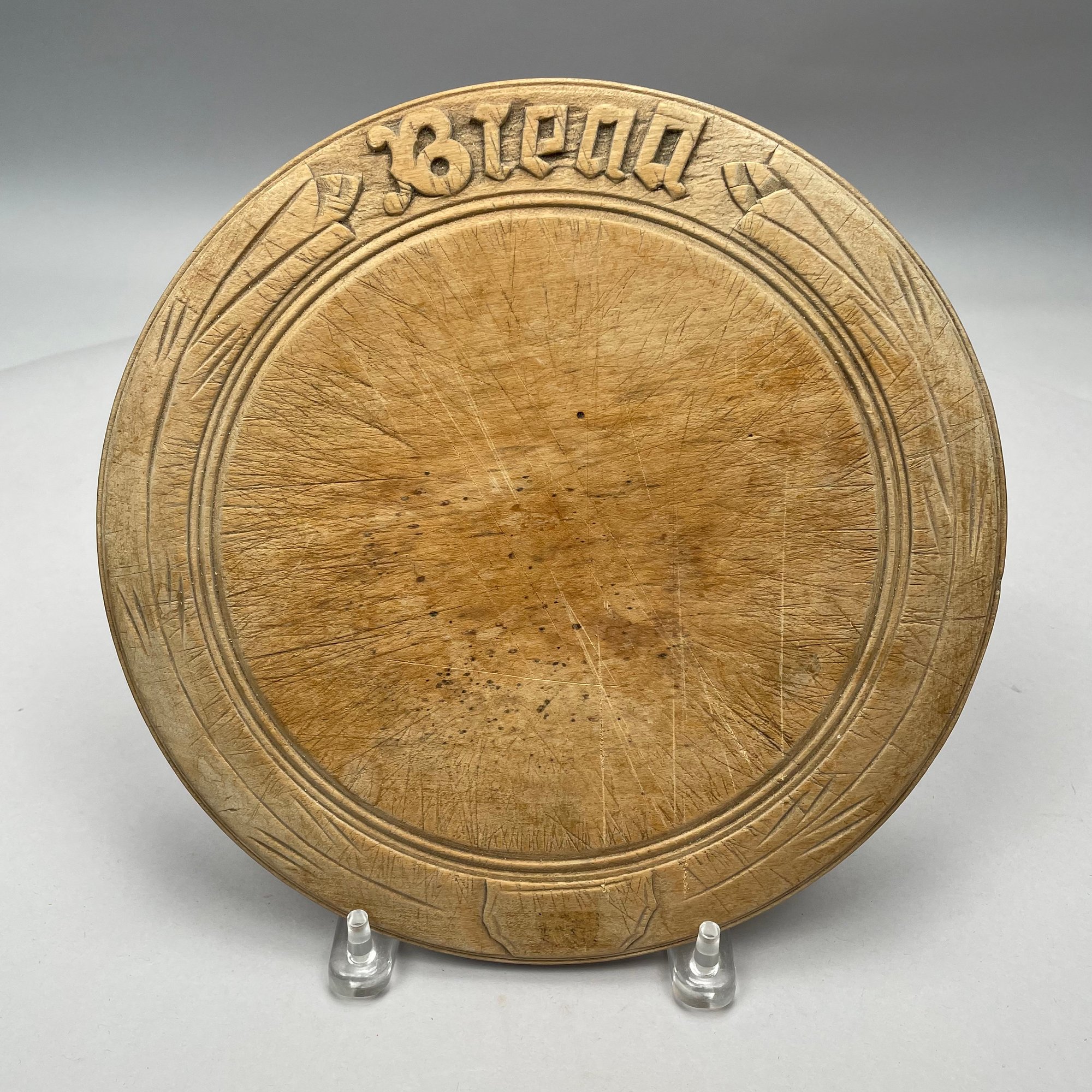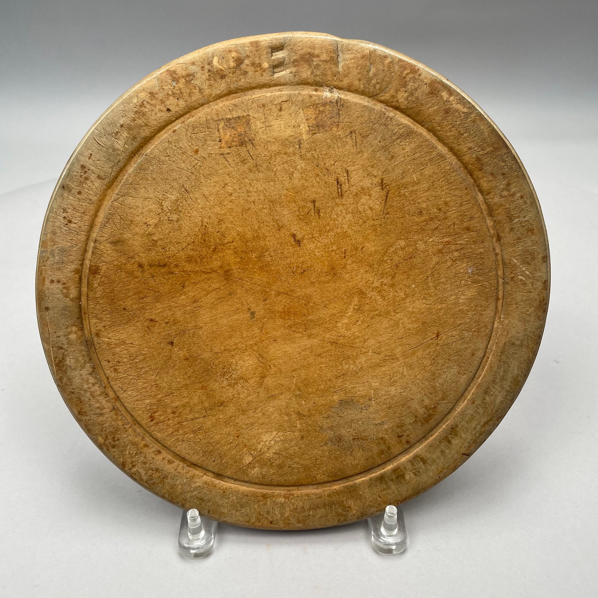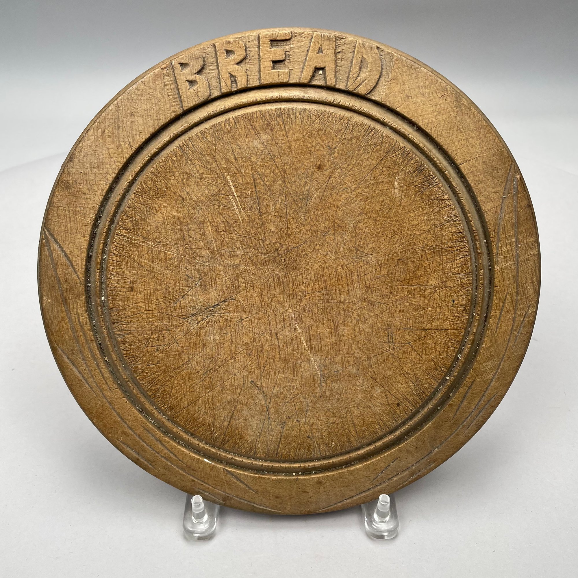 Painted Wooden Bowl and Three Bread Trays. The bowl painted green on the exterior, each of the trays carved "BREAD."