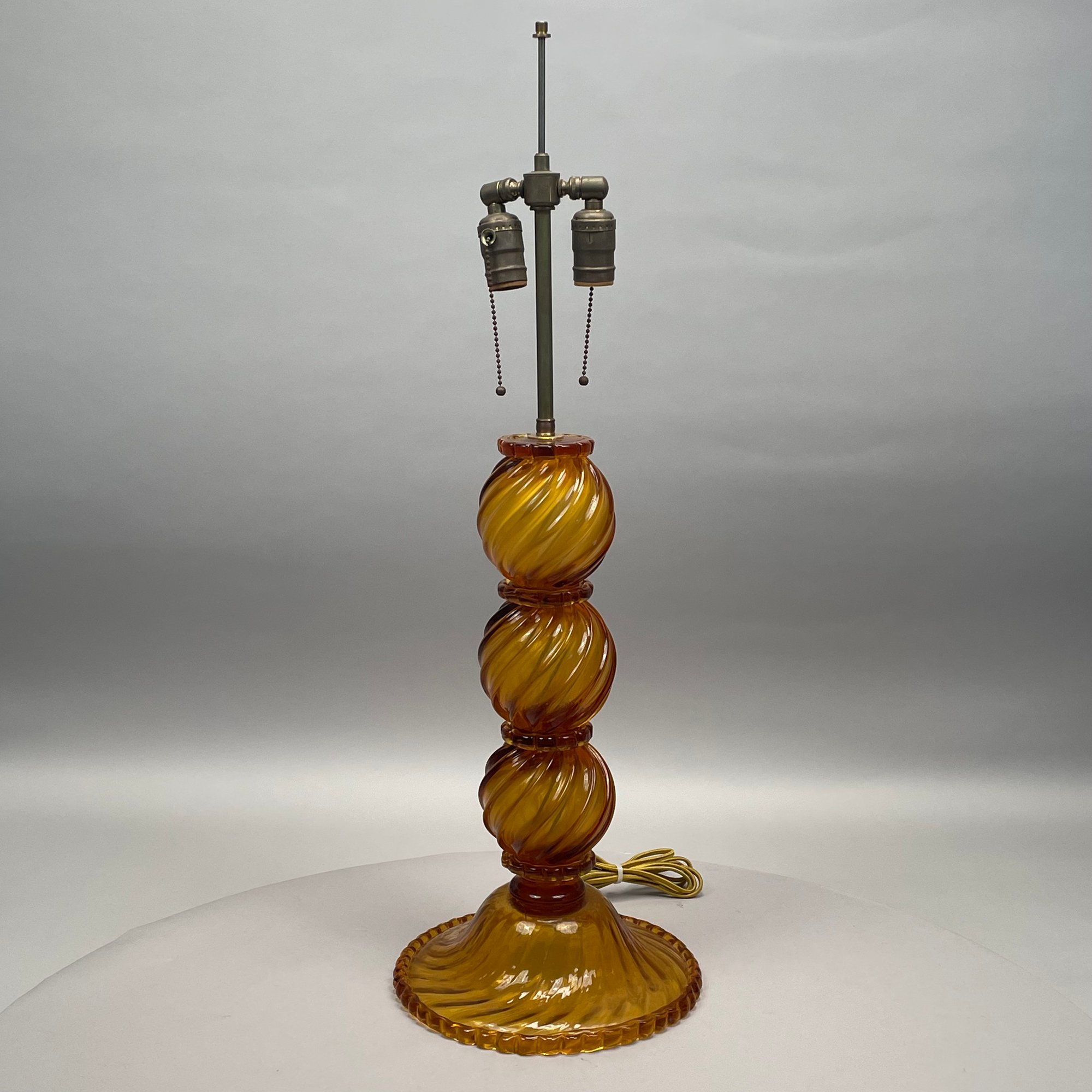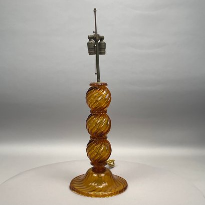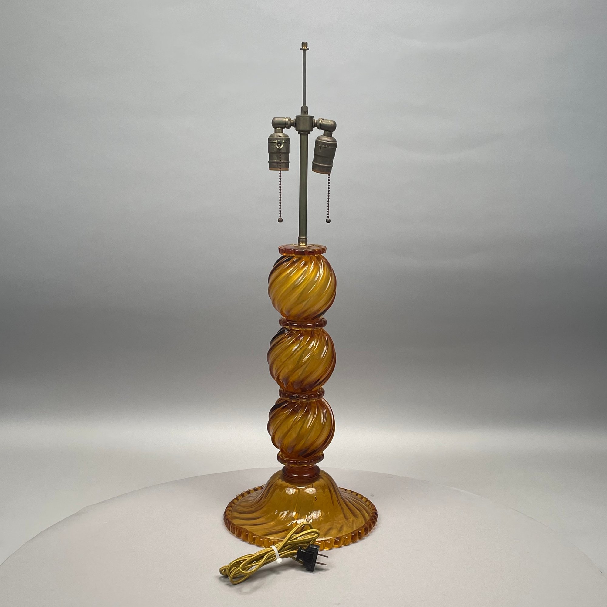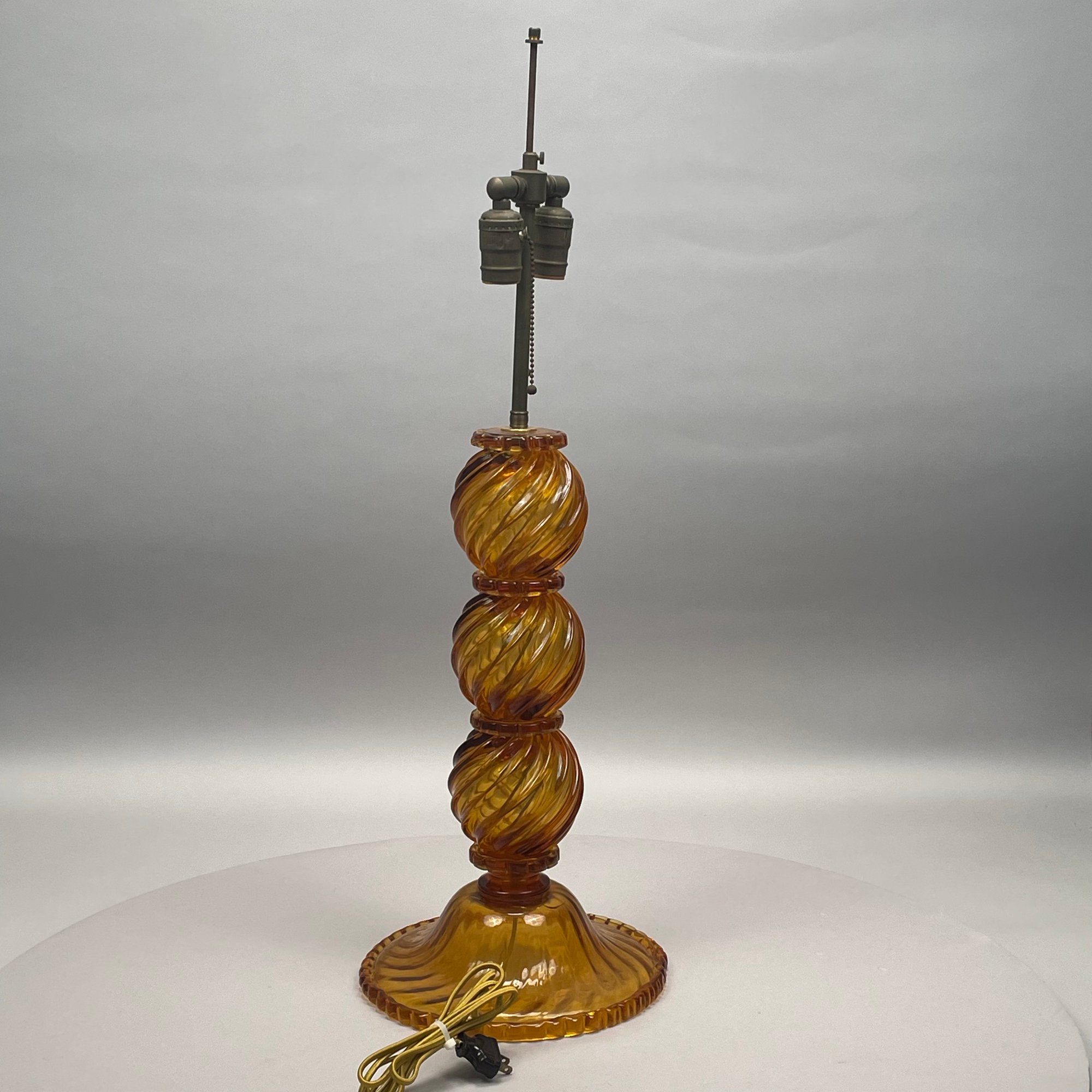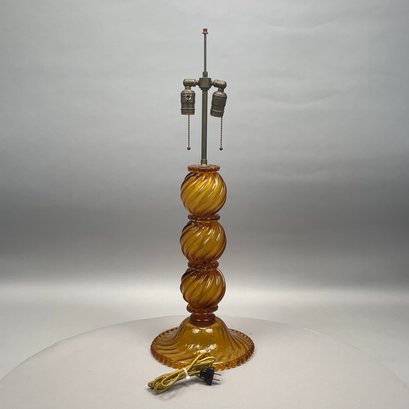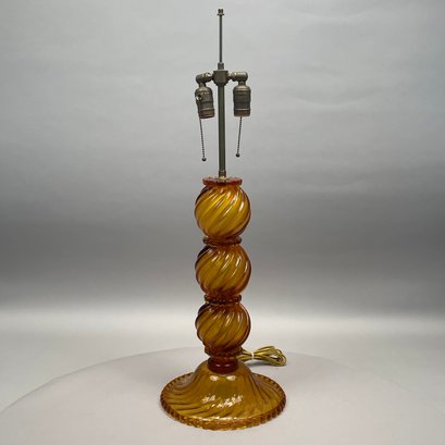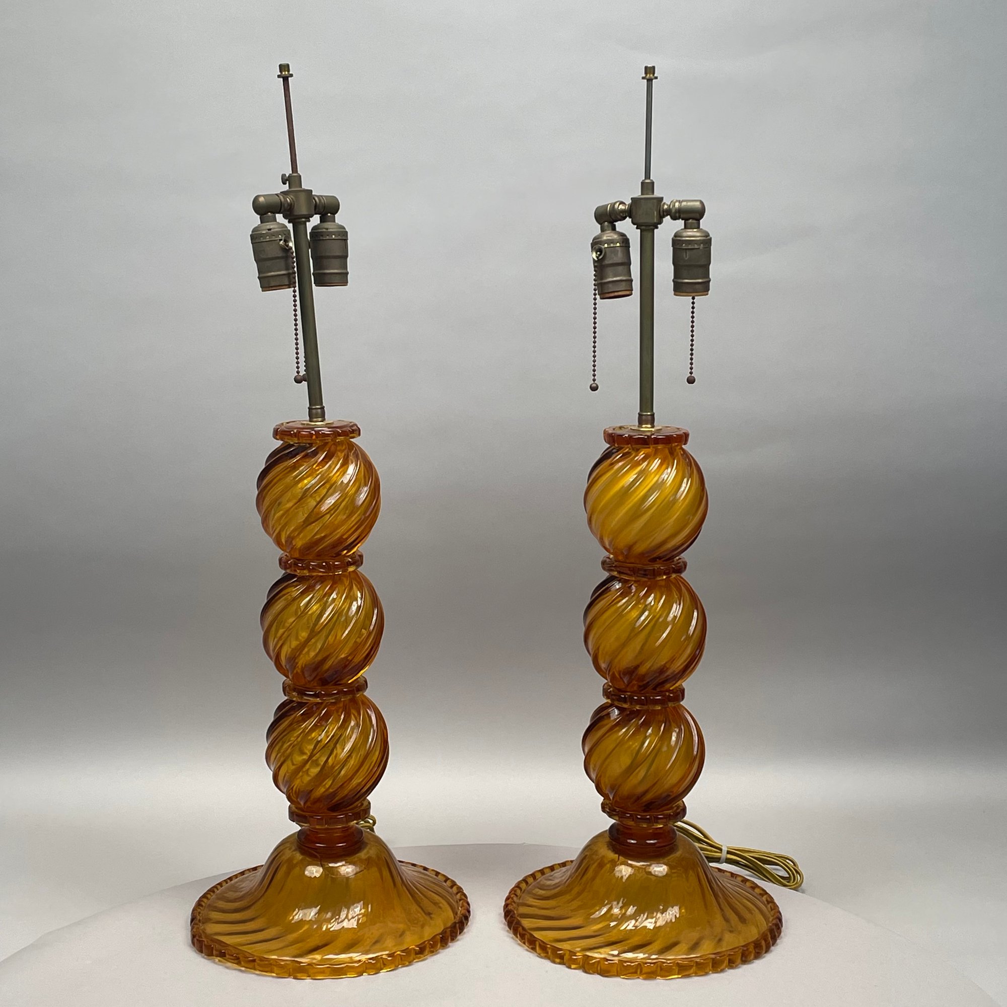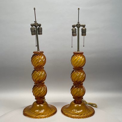Pair of Amethyst Glass Spiral Molded Table Lamps.