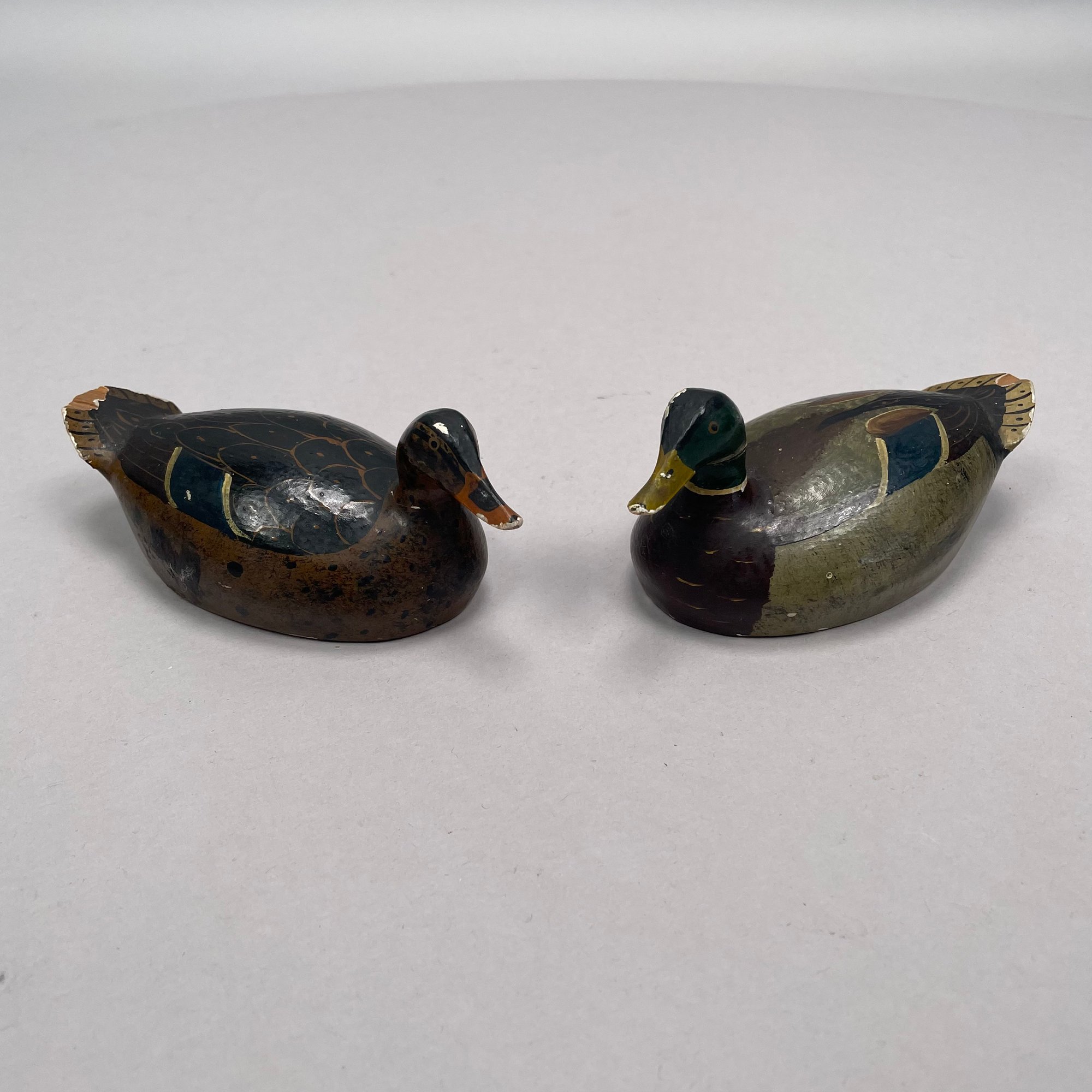 Pair of Carved and Painted Miniature Mallard Ducks.