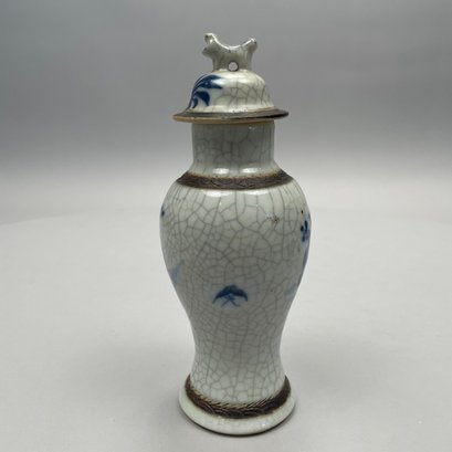 Vase and cover: H: 6.25 in., Diam: 3 in.