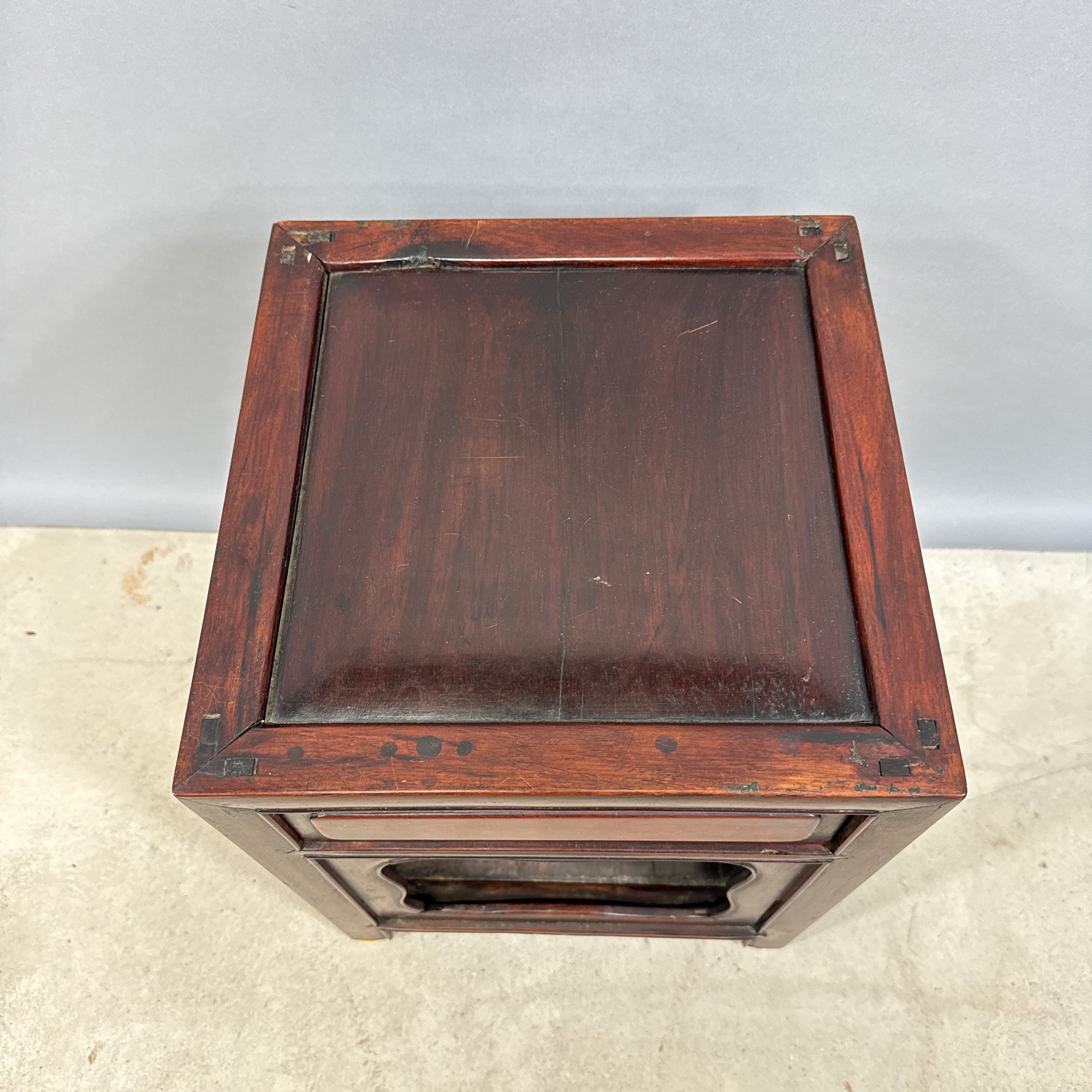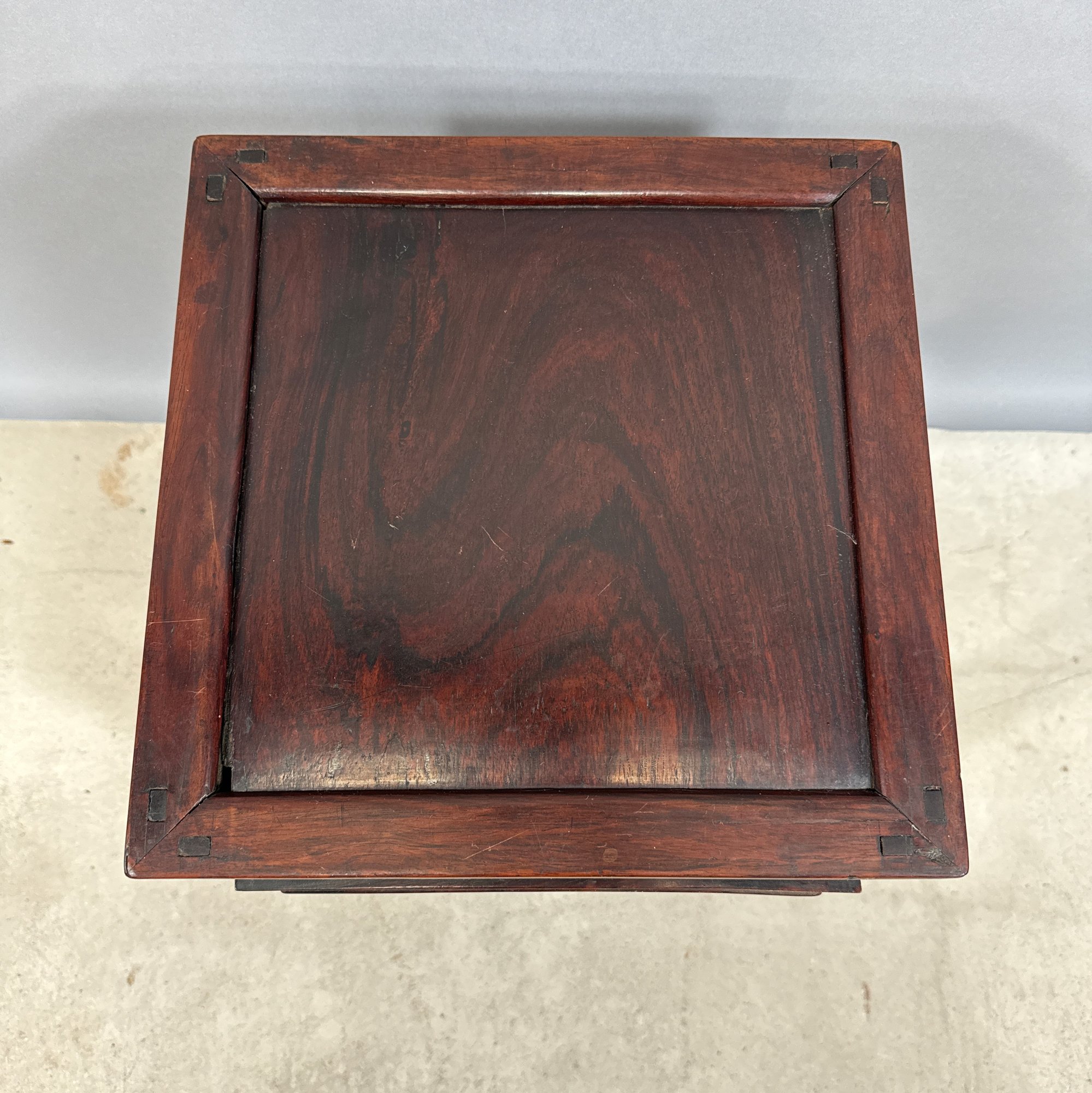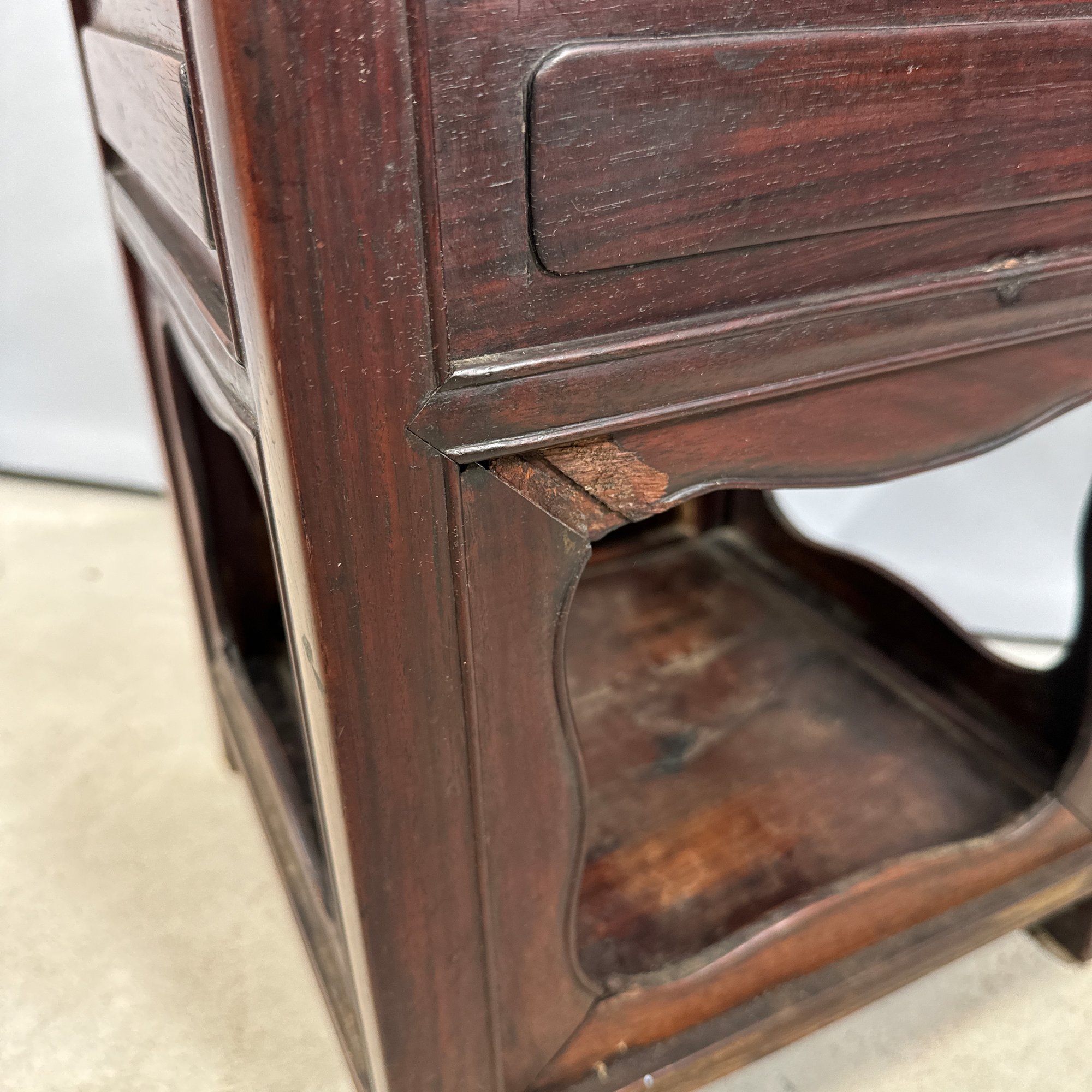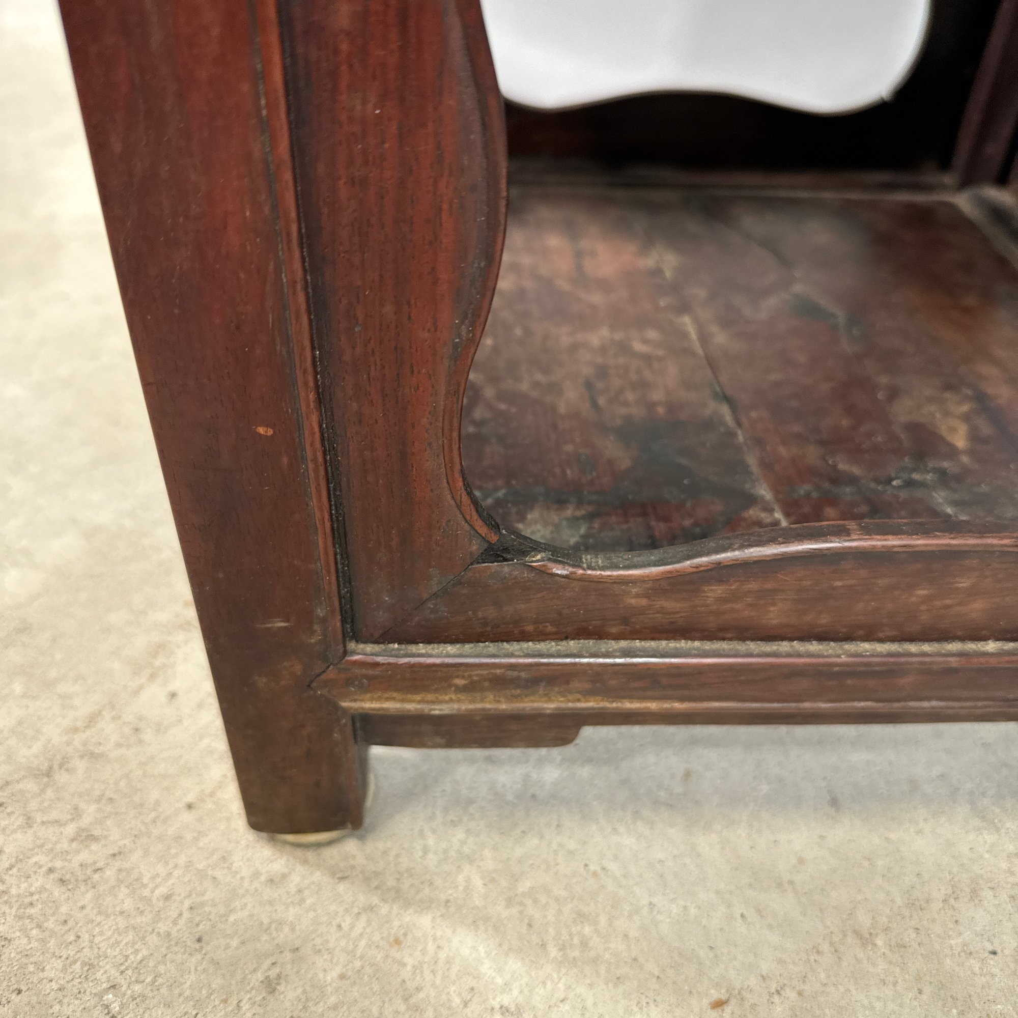 Pair of Chinese Hardwood Stands. Each inset square top above shaped open sides enclosing a shelf.