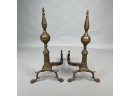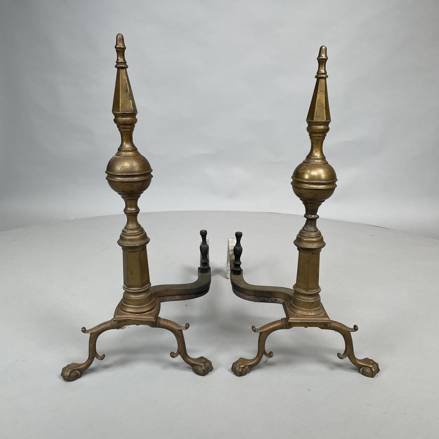Each faceted, ball and spire standard raised on spurred cabriole legs ending in talon-and-ball feet, baluster log stops.