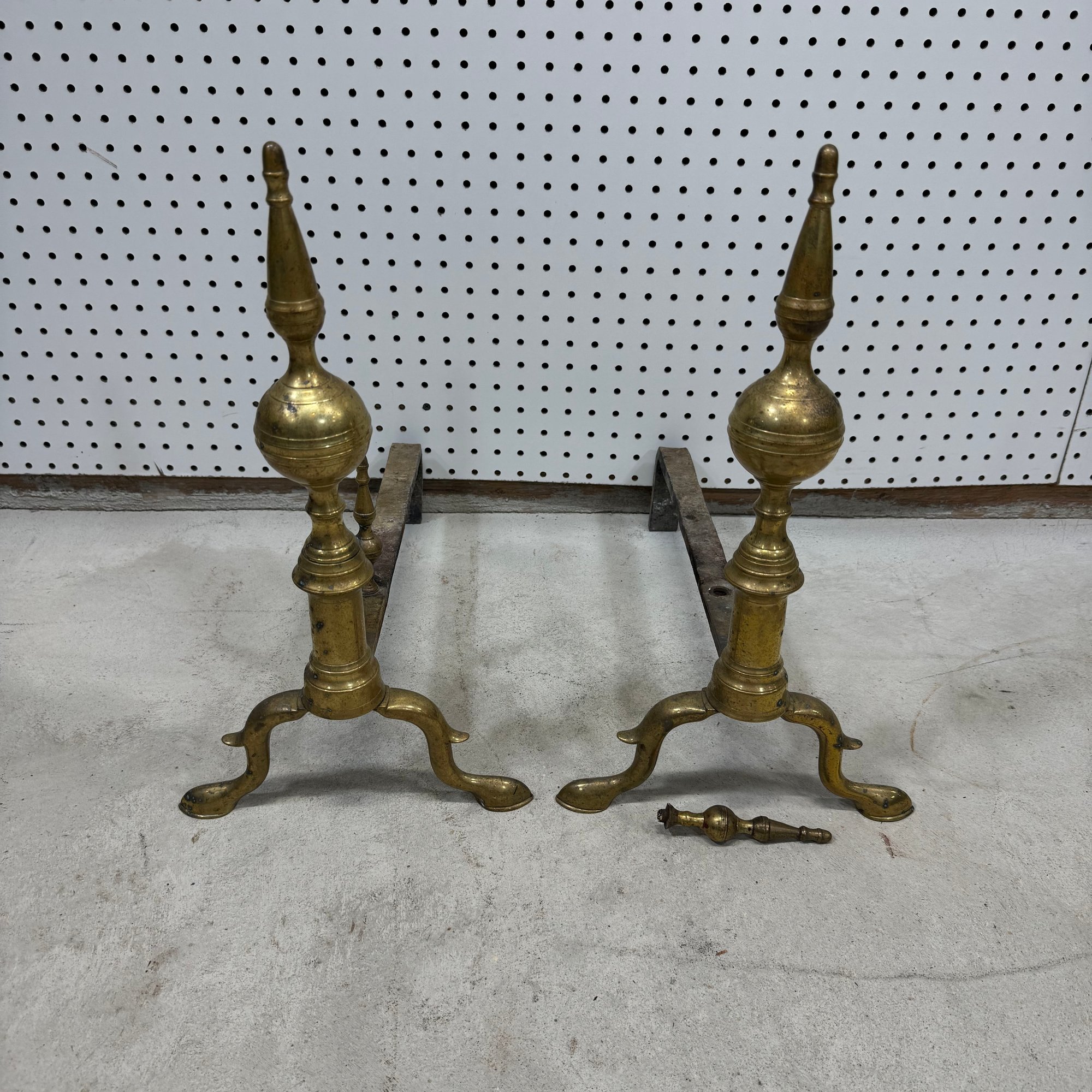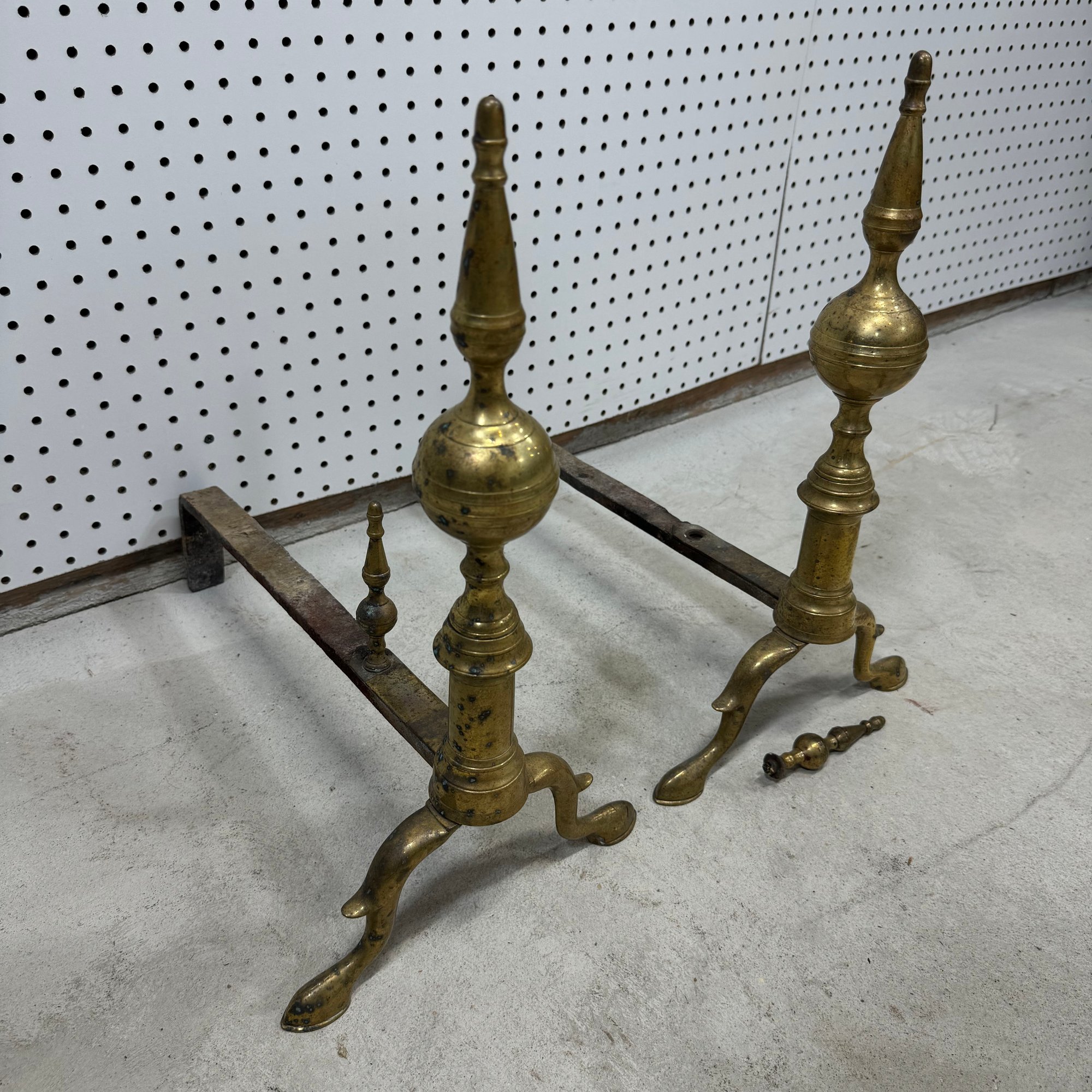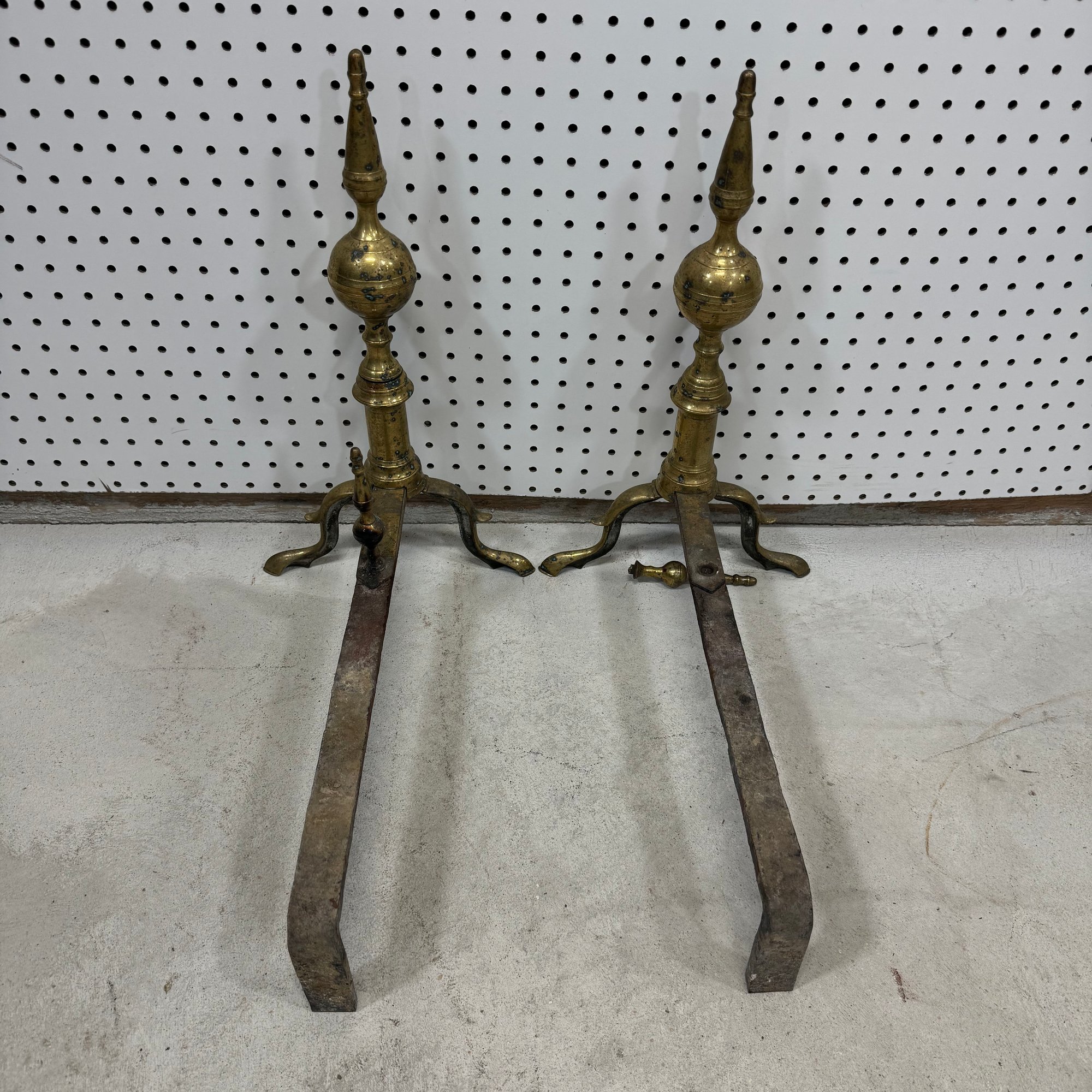 Pair of Federal Bell Metal Spire-Top Andirons.