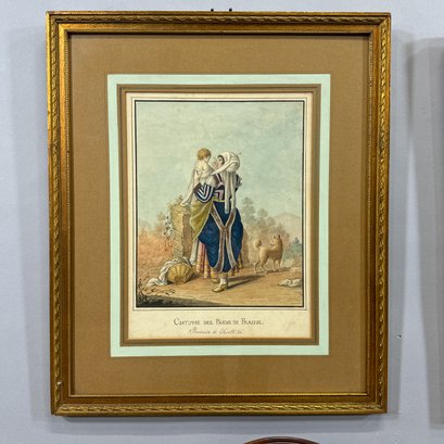 Italian School. Pair of Prints: "Costume del Paese di Fraine" and "Paese di Terrazzana Provincia di Abruzzo Citra;" and Two Pairs of British Colored Prints, Le Blond & Co.