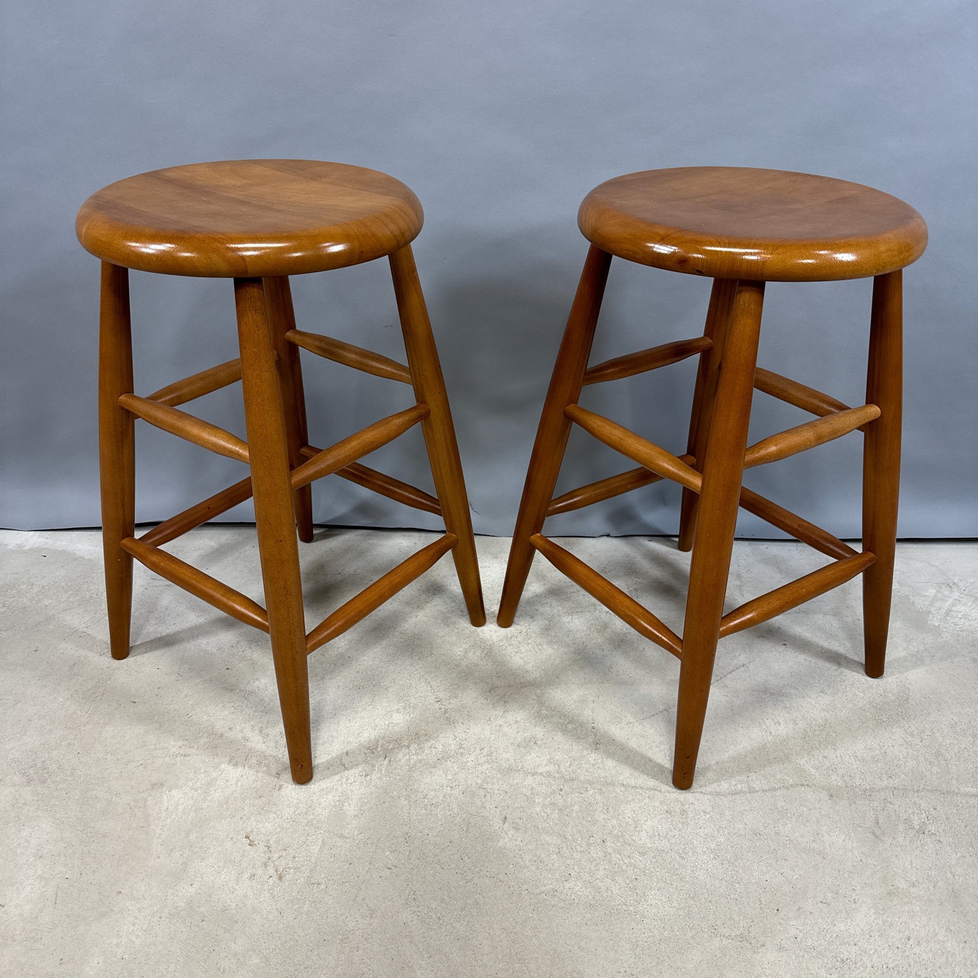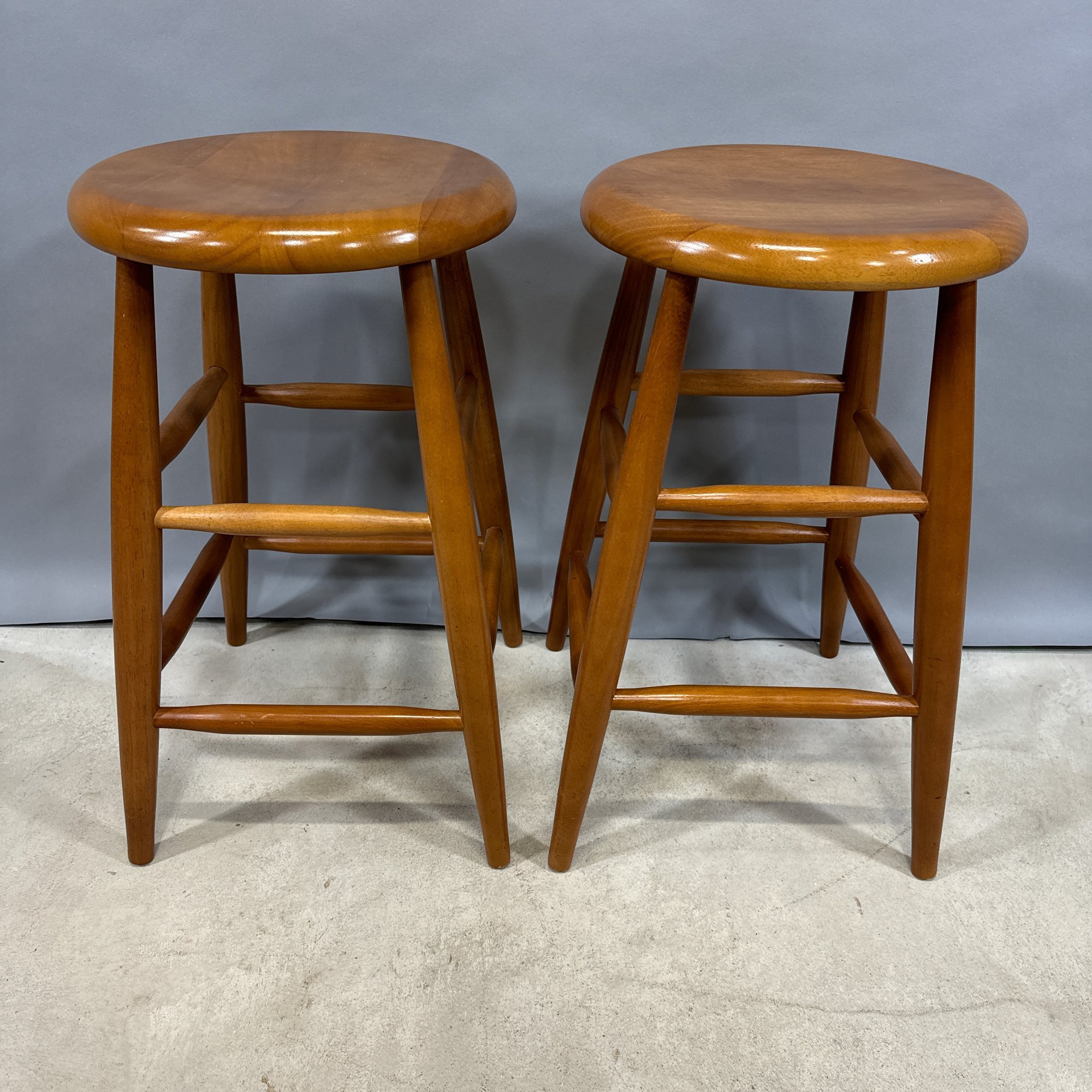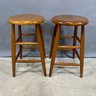 Pair of Modern Teak Bar Stools.
