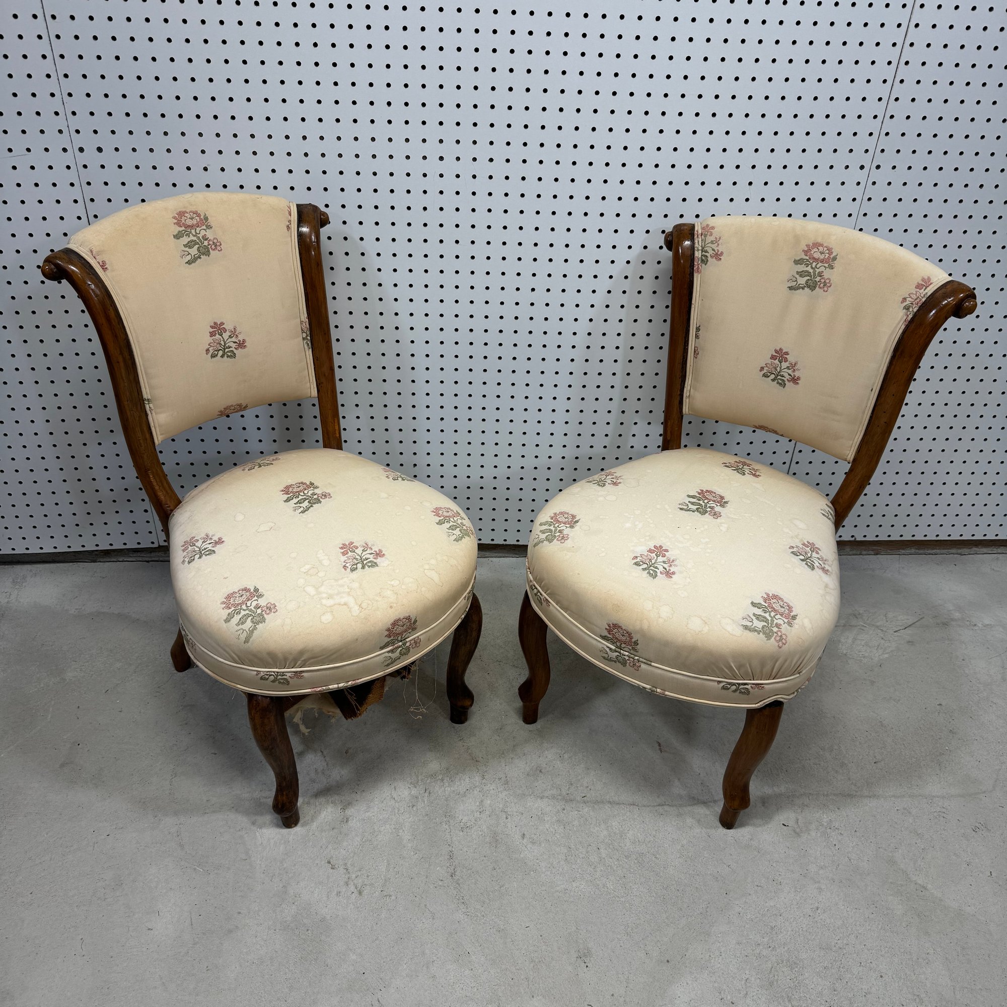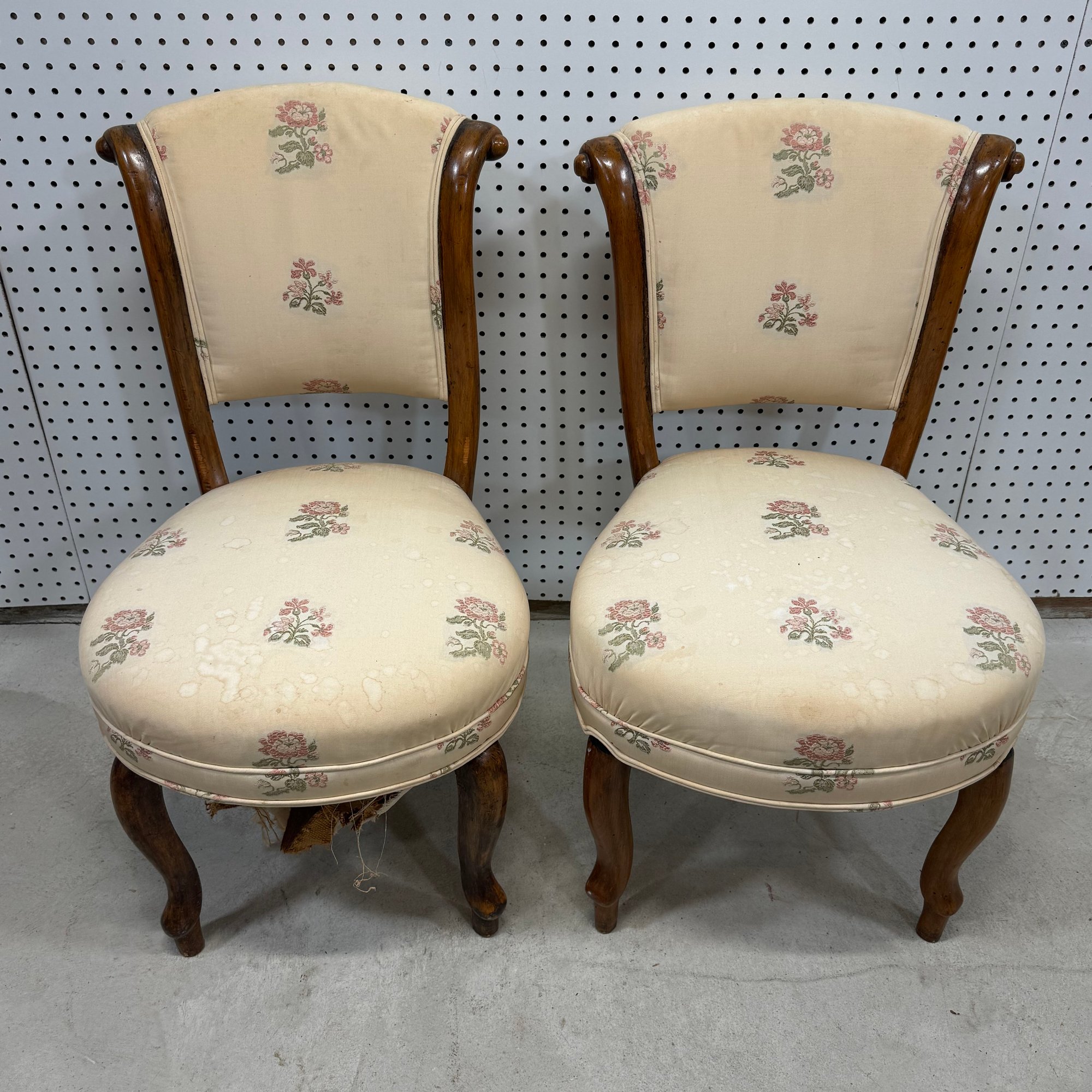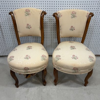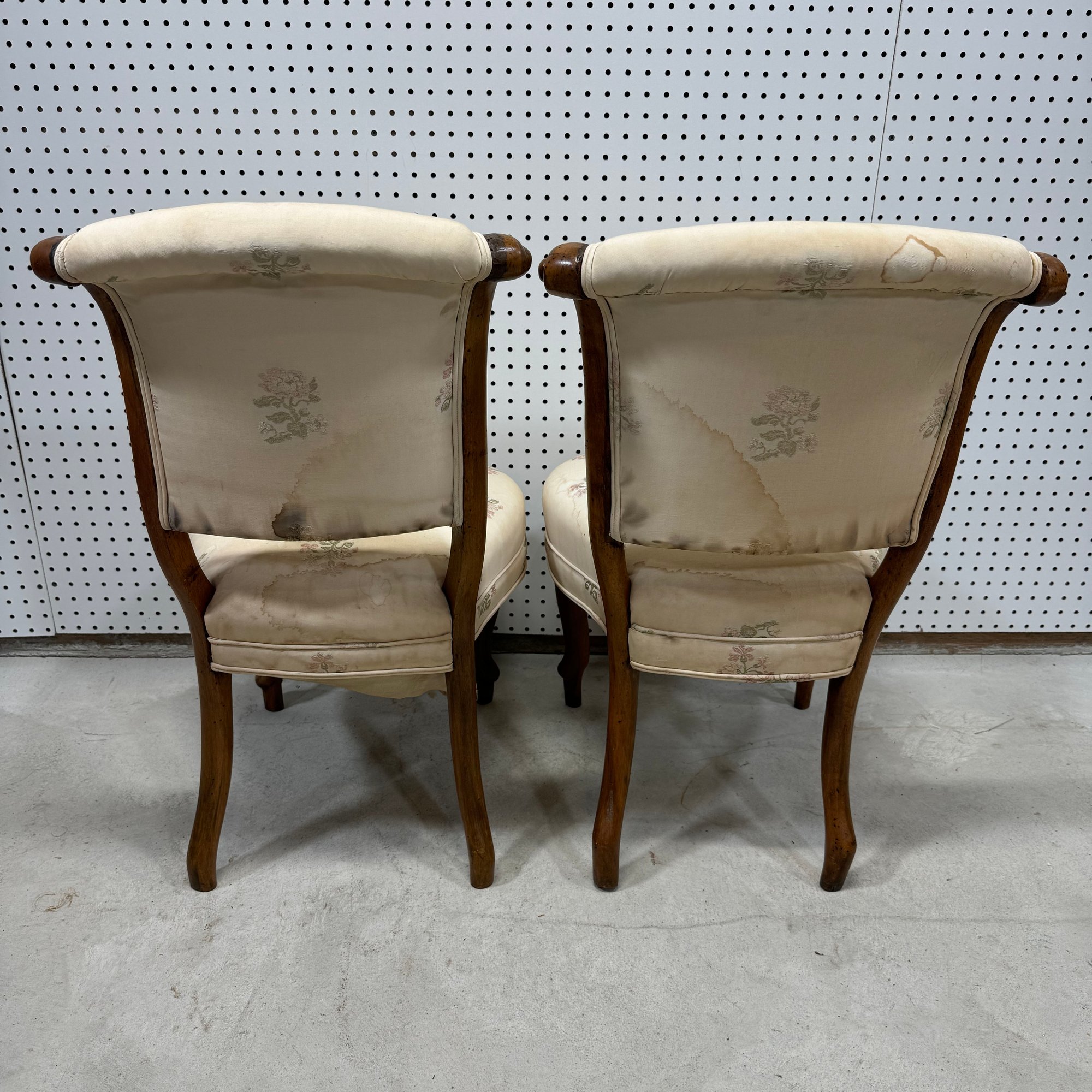 Pair of Regency Walnut and Upholstered Slipper Chairs.