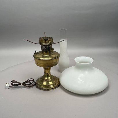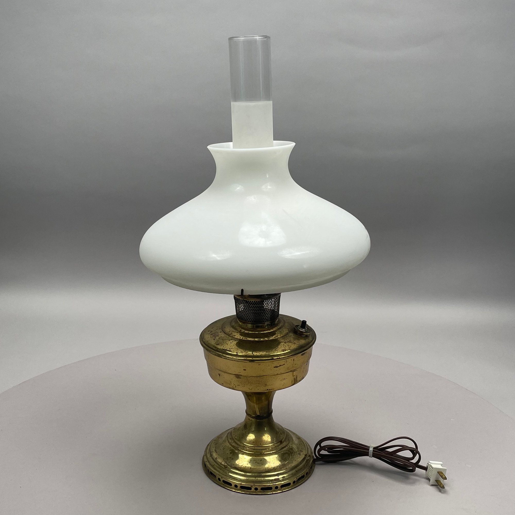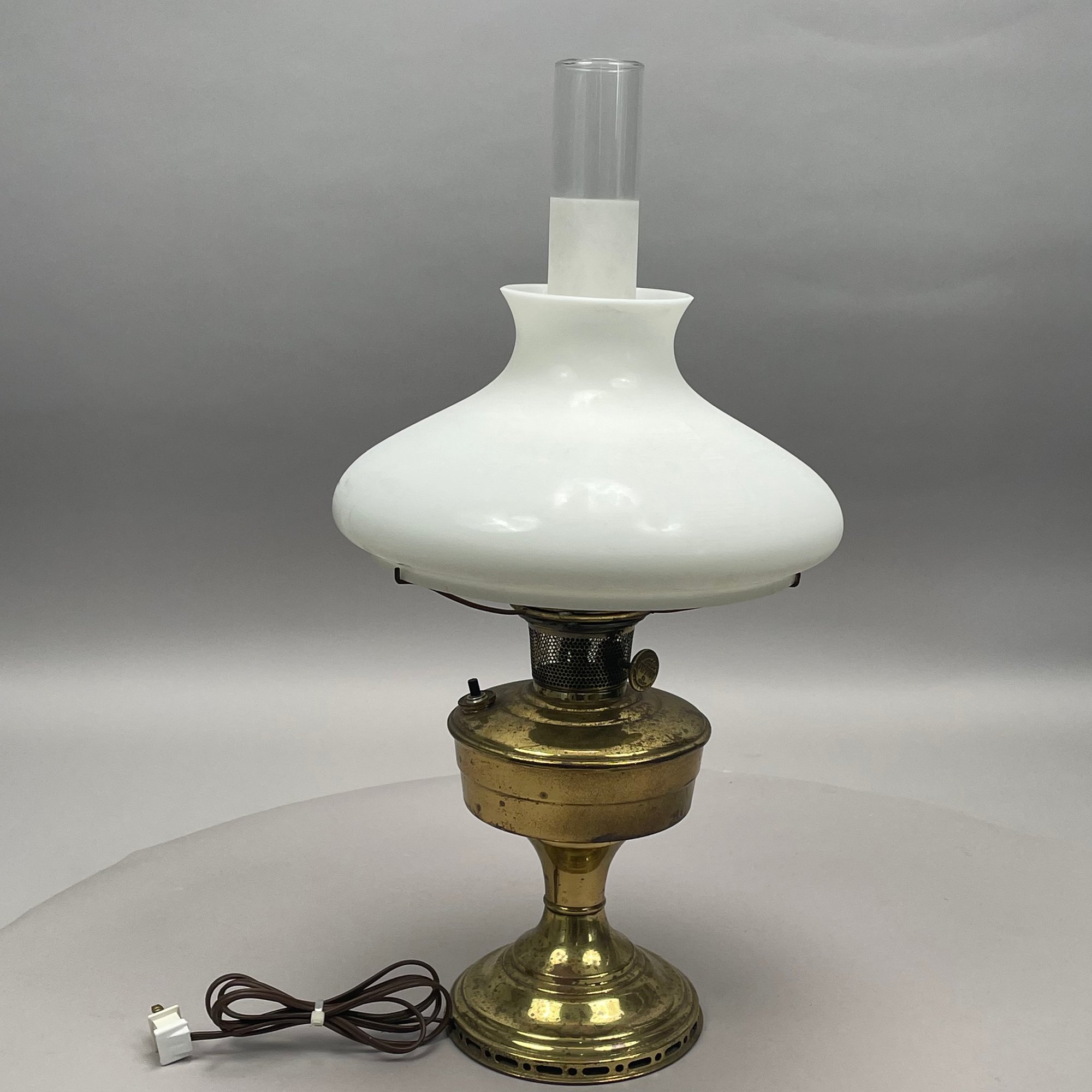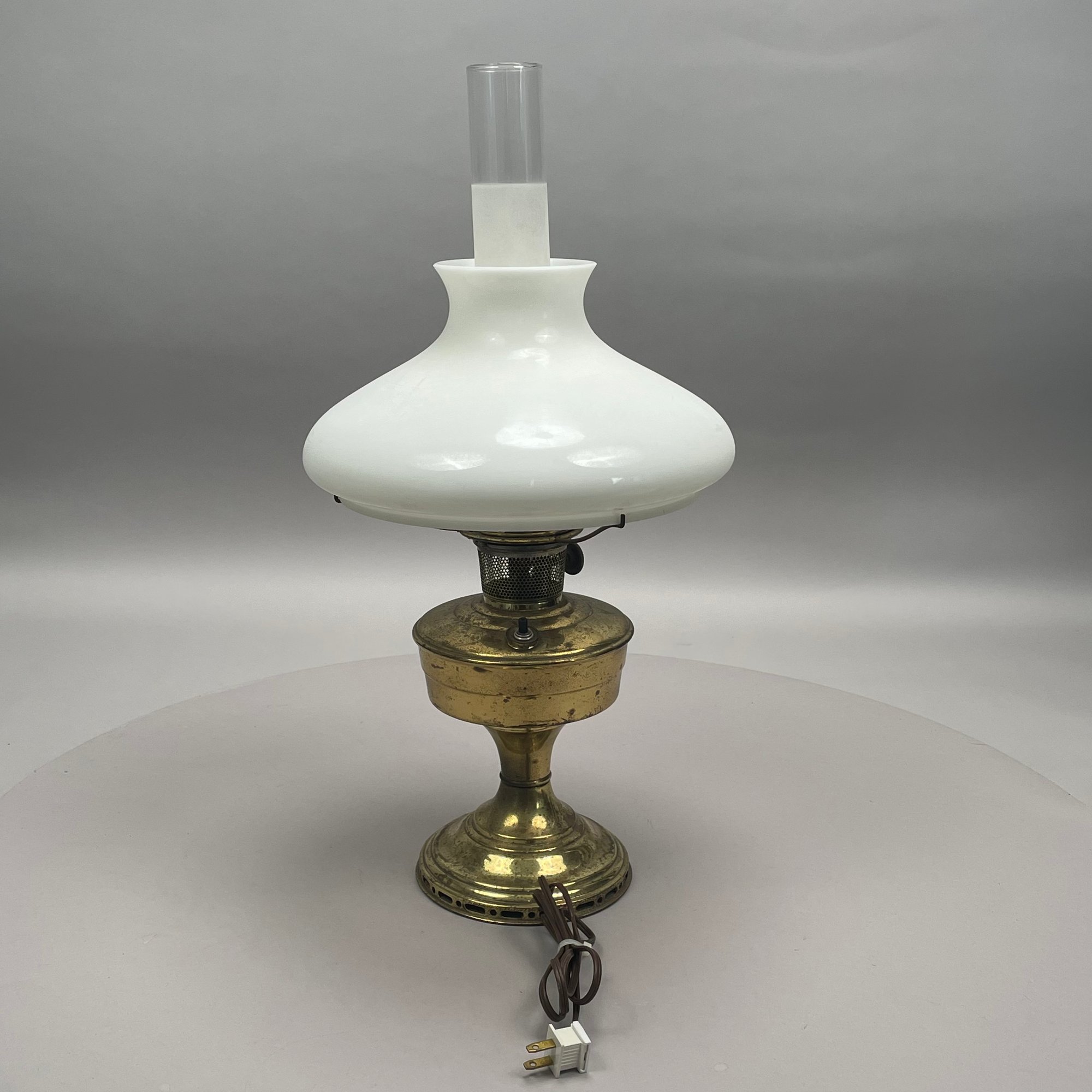 Aladdin Lamp Co. Brass 'Model 12' Lamp and Opaque White Glass Shade, 1928-35.