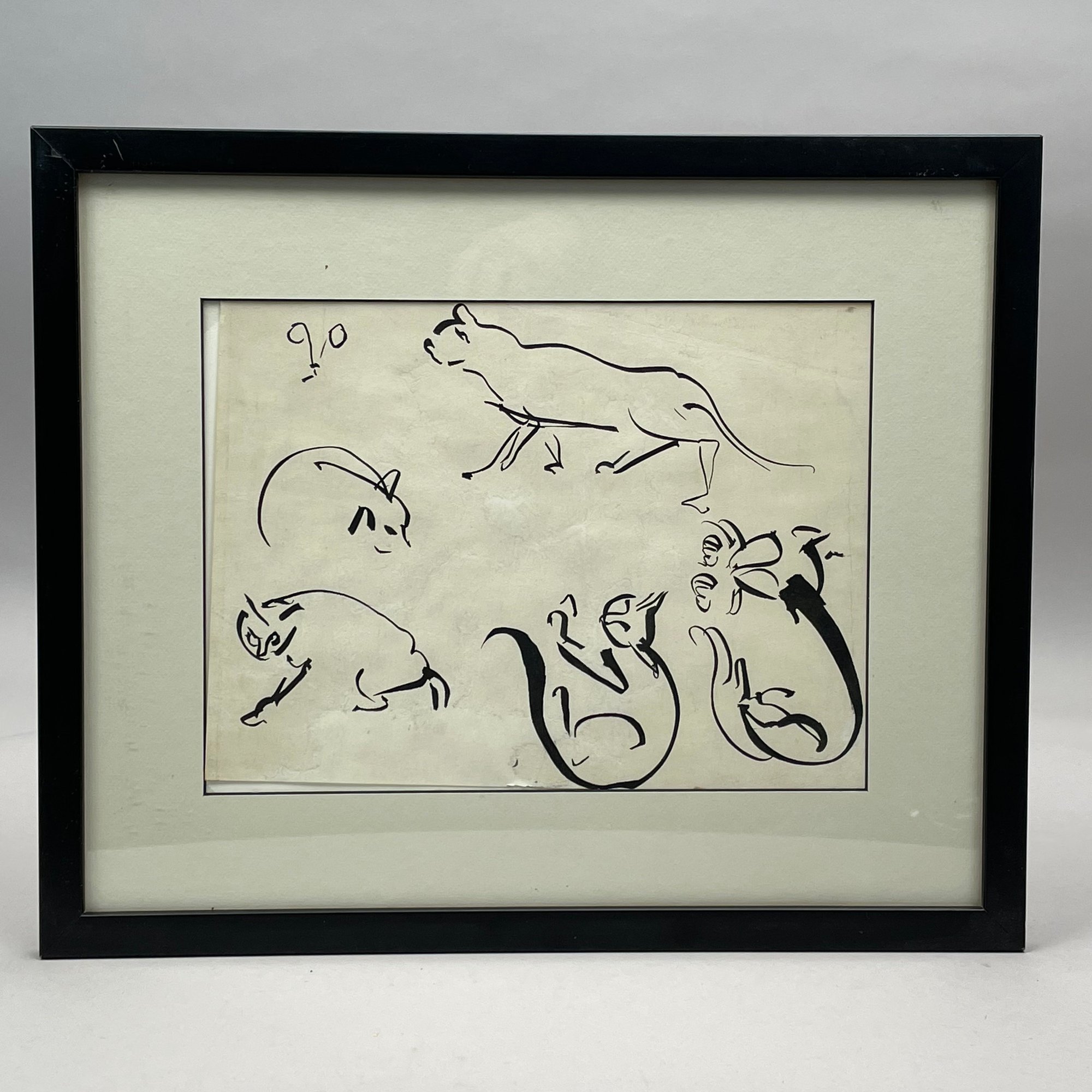Alexander Calder (American, 1898-1976). Cat Studies, ink wash on paper (9.125 x 12 inches), apparently unsigned.