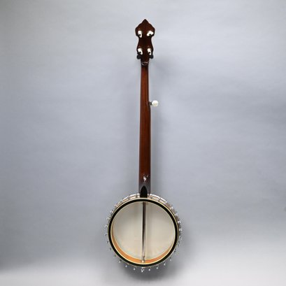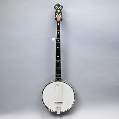 Alvarez 'Silver Princess' Rosewood and Maple Five-String Open-Back Banjo, 1970's. Inlaid in mother-of-pearl on the peghead "Silver Princess" within a shield, leaf and scrolls, printed "REMO/ WEATHER KING/ BANJO HEAD ONLY/ MADE IN U.S.A." on the drum head; housed in the original hardshell case.