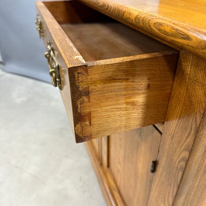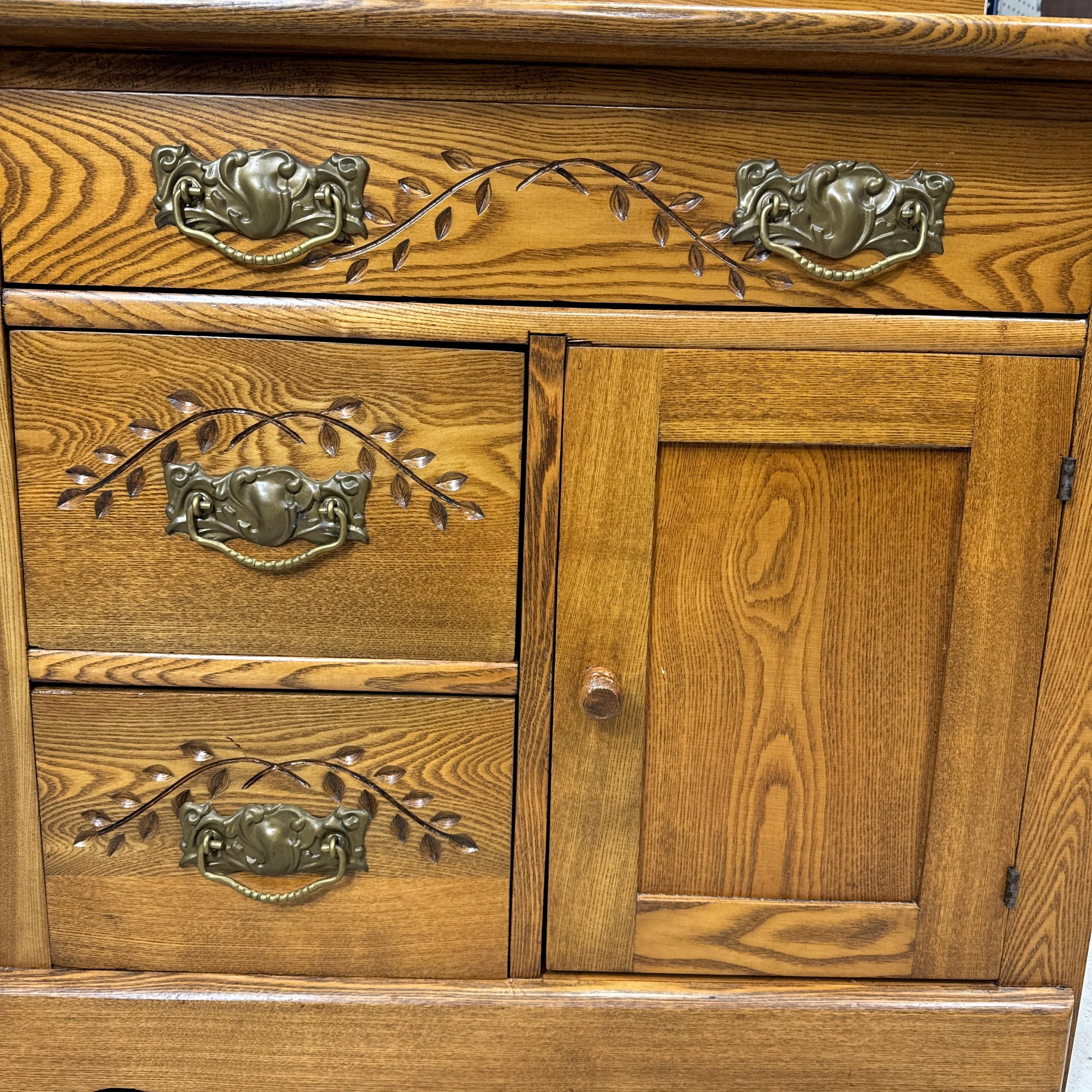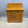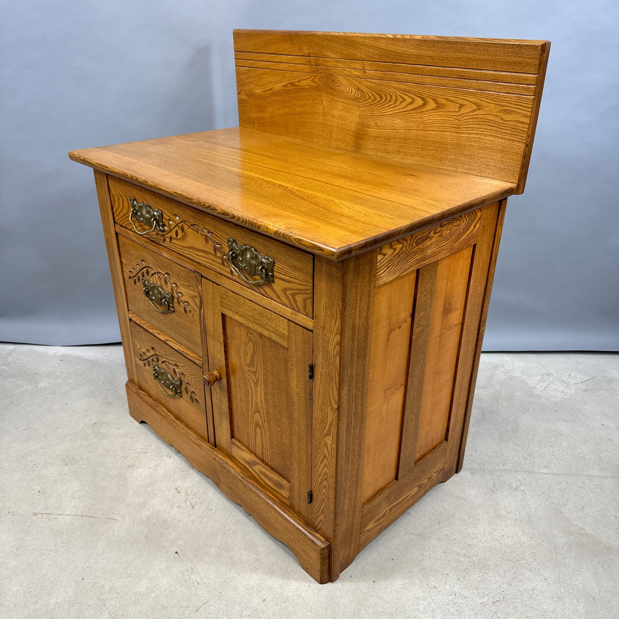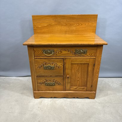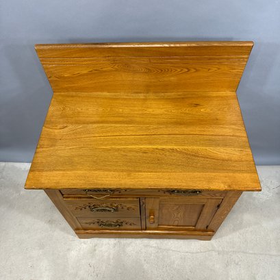 American Ash Spoon-Carved Commode, Late 19th Century. The rectangular backsplash above the top and panelled cupboard door beside two drawers.