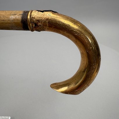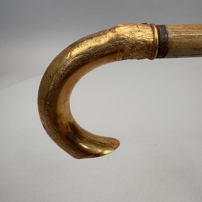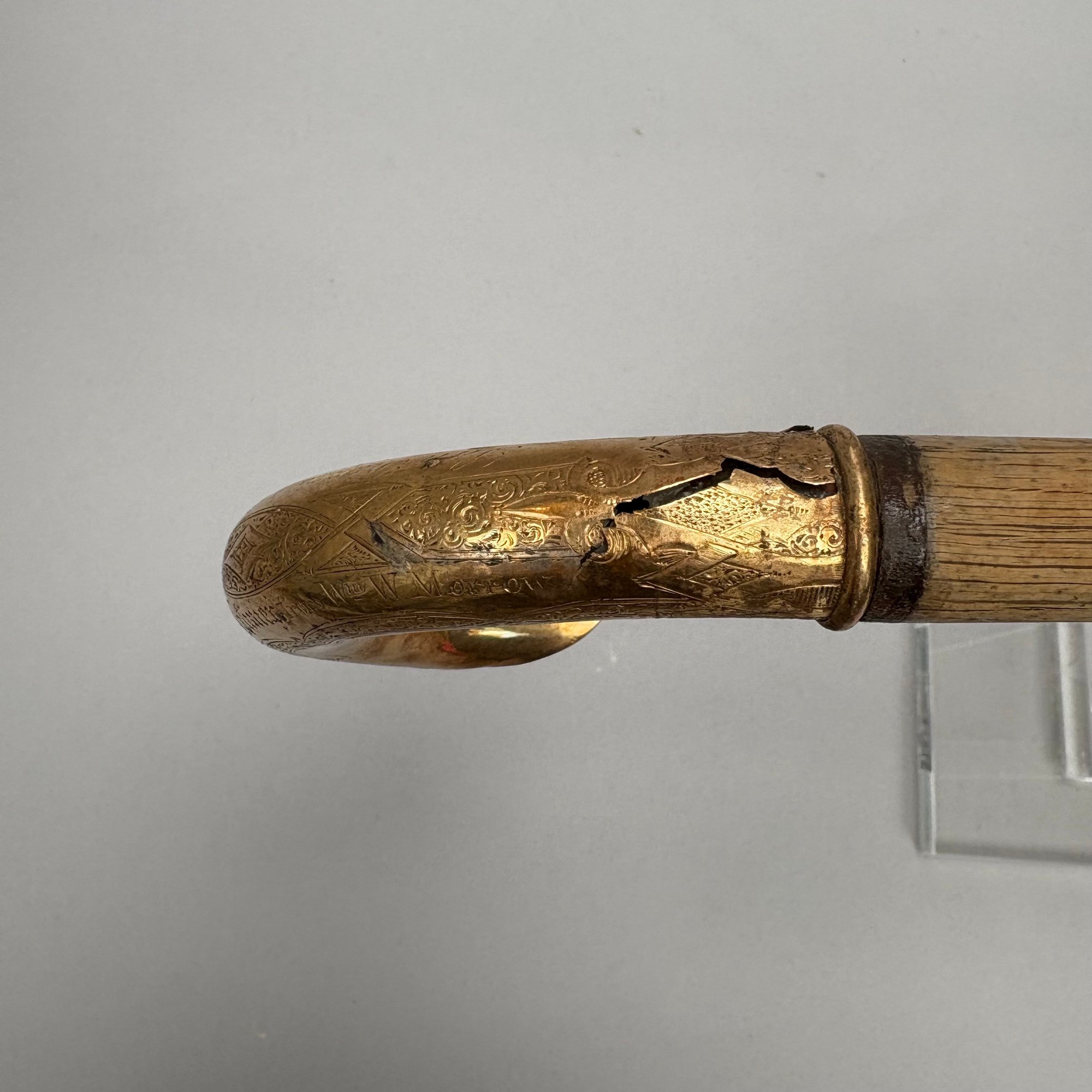 American Gold-Filled Presentation Cane, 1873 and a Folk Art Painted Walking Stick. The cane engraved "San Francisco June 12, 1873."