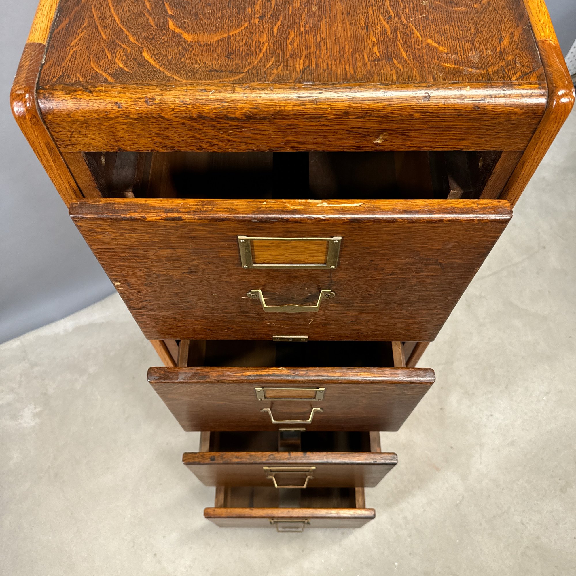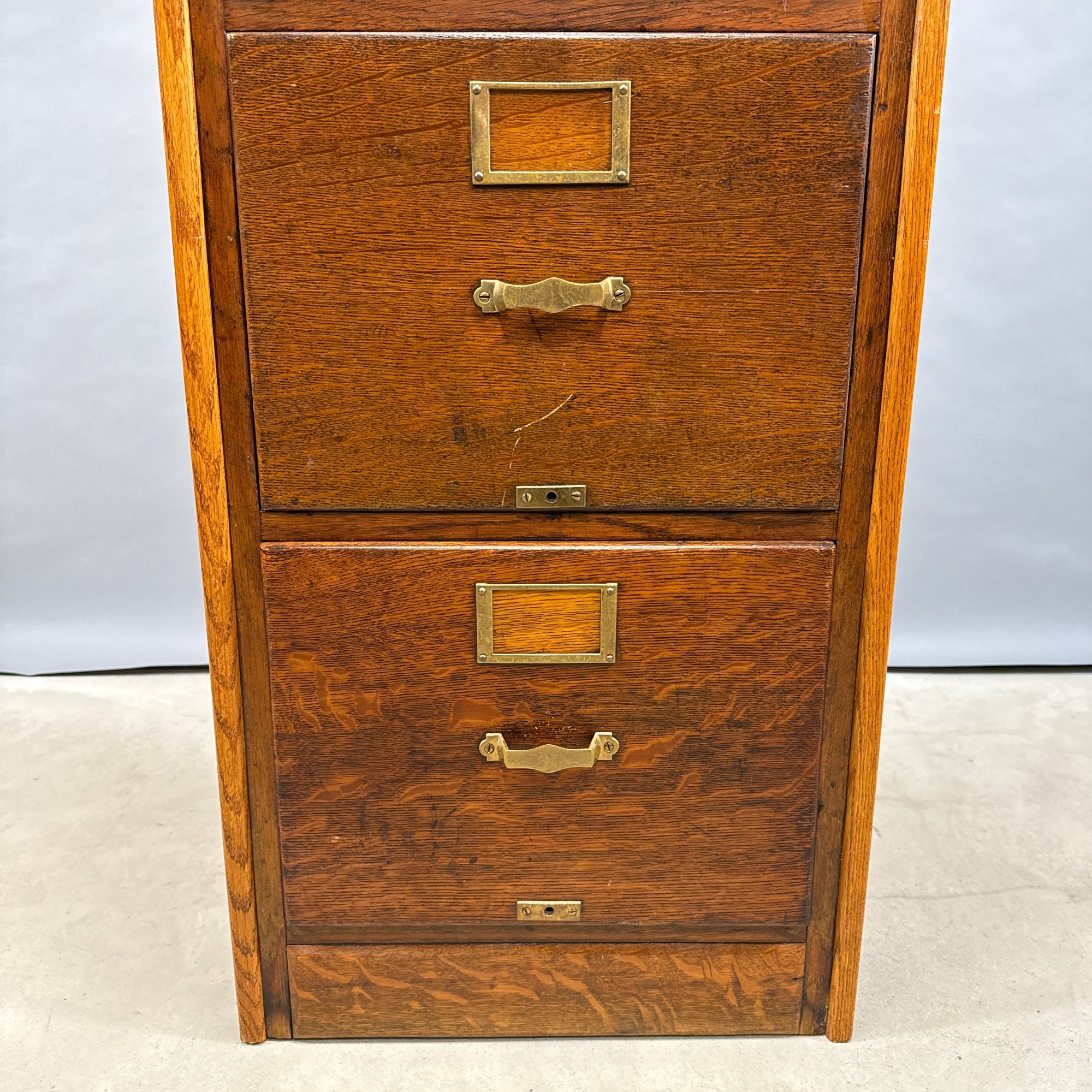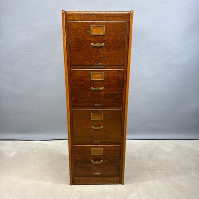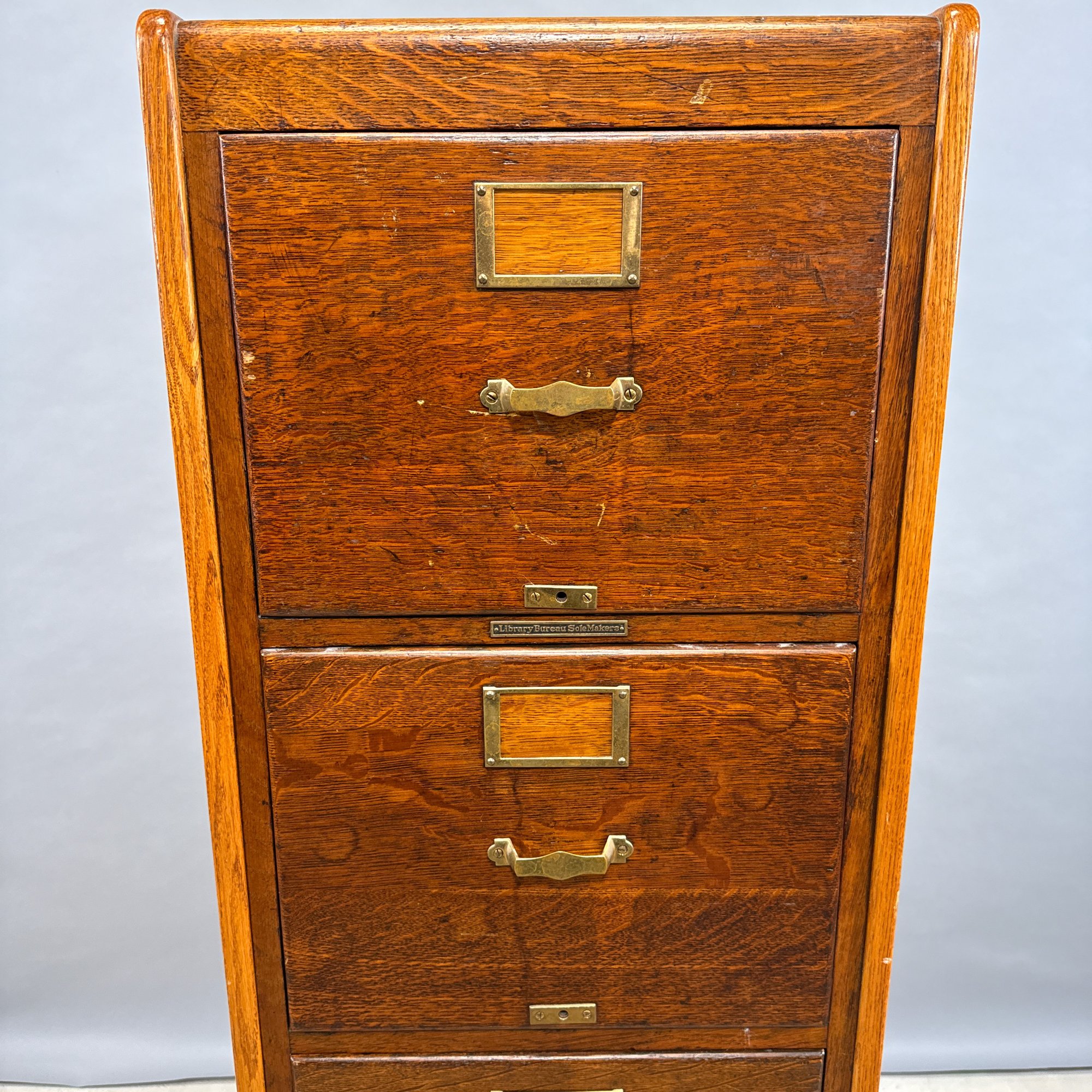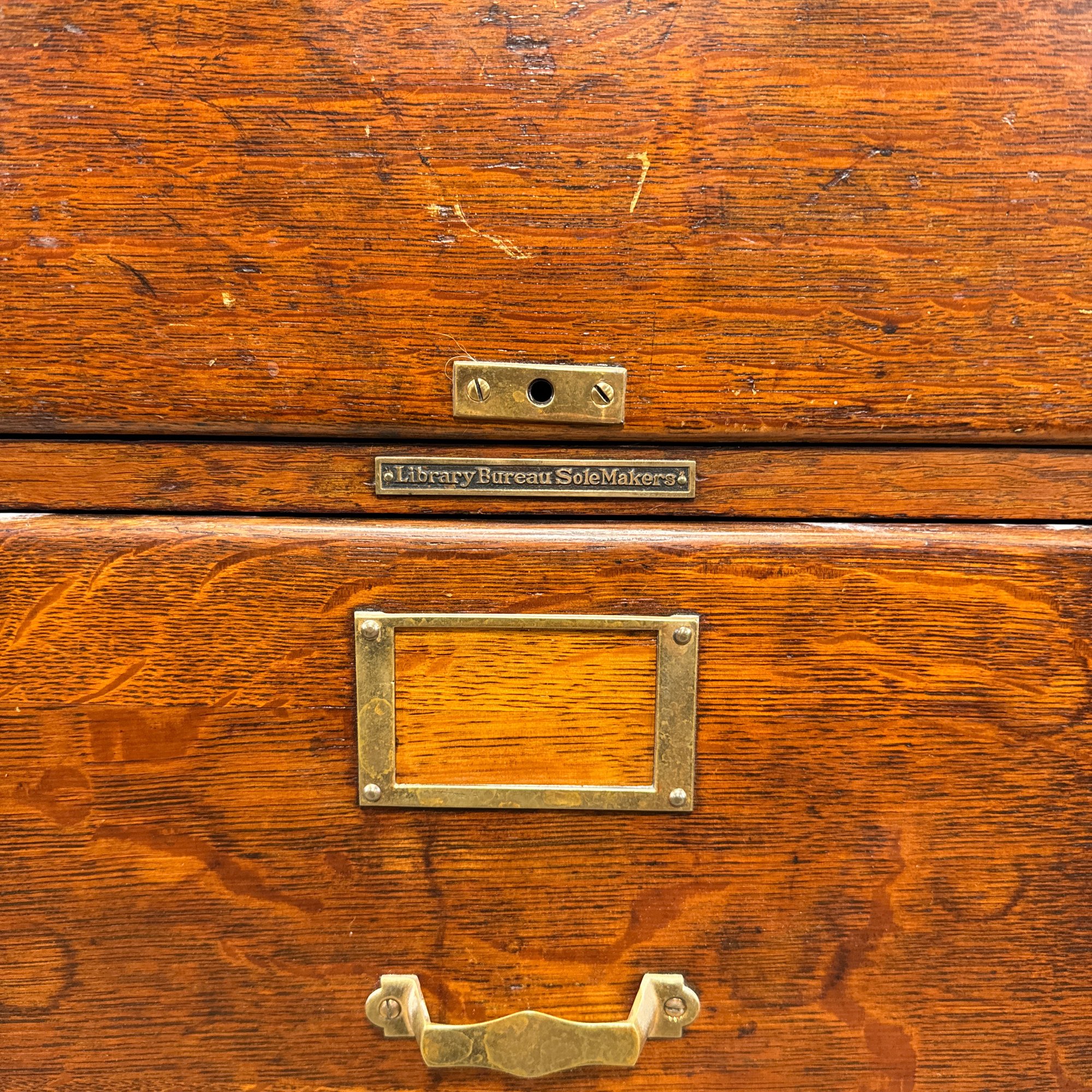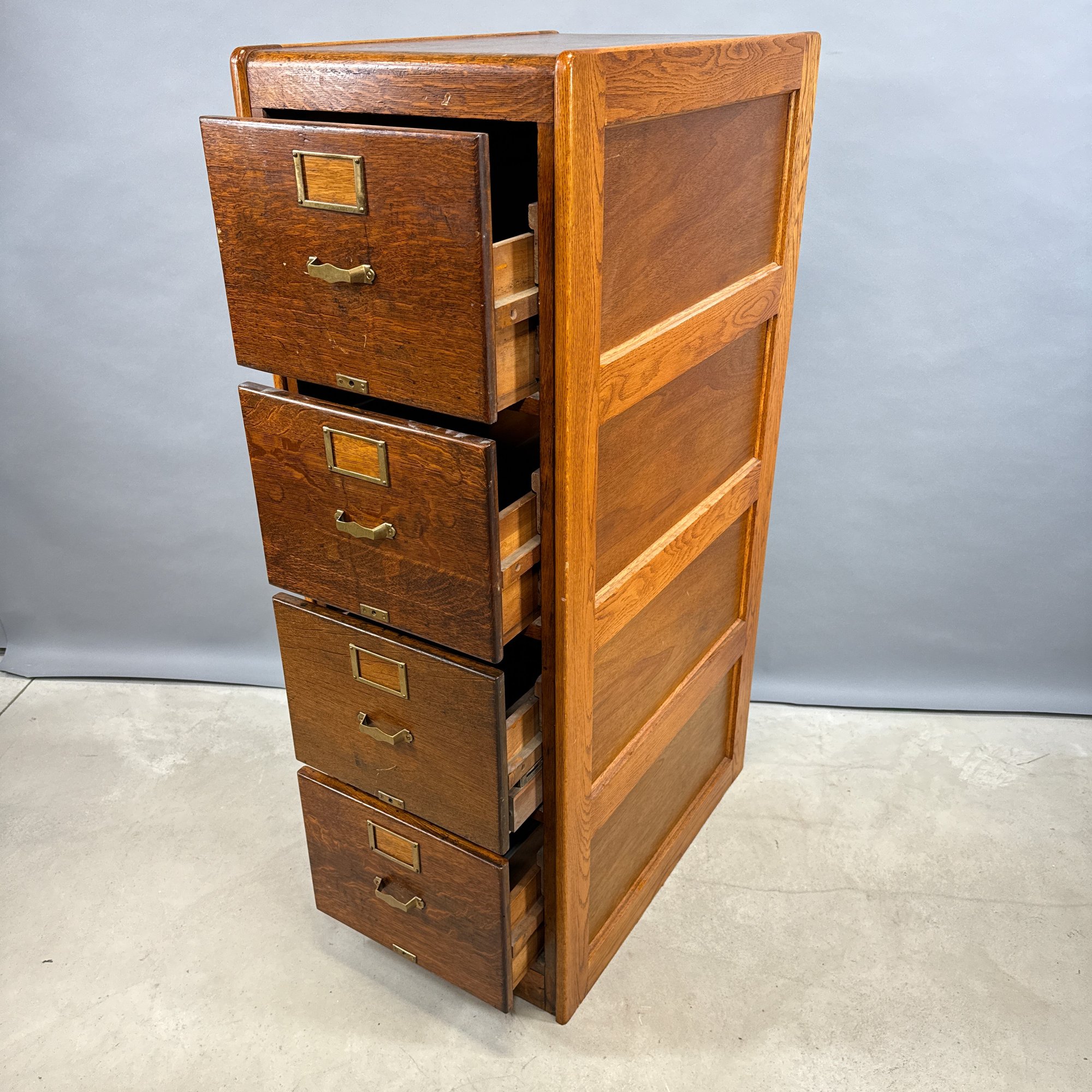 American Oak Four-Drawer Filing Cabinet, Library Bureau Sole Makers, Ilion, New York, 1886-1920. Affixed with a brass label stamped "Library Bureau Sole Makers."