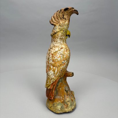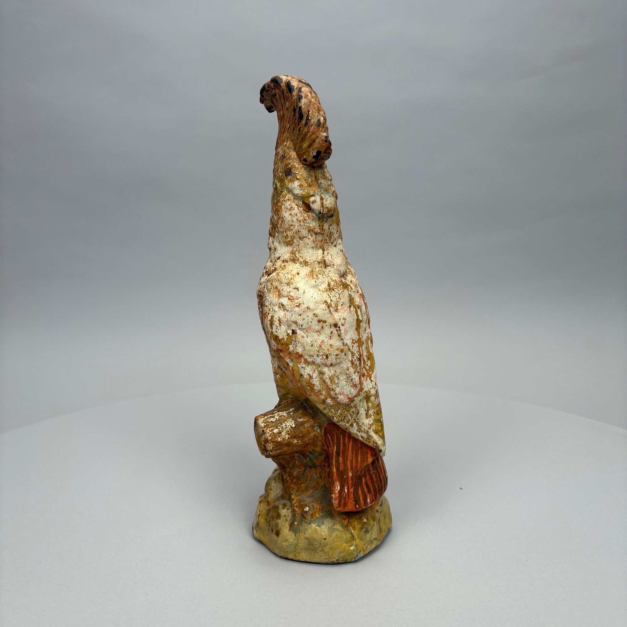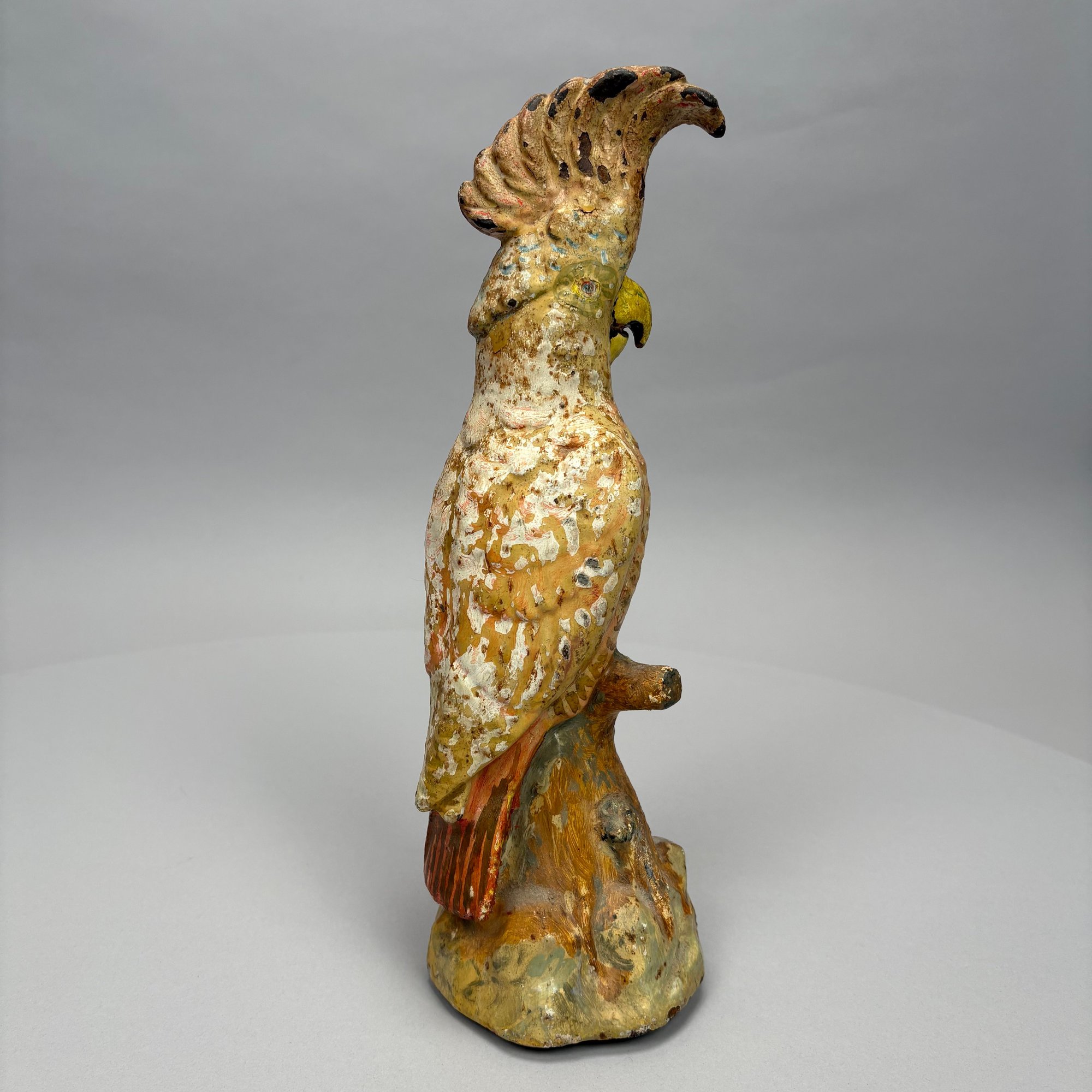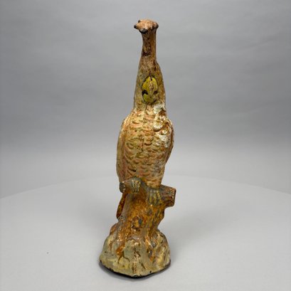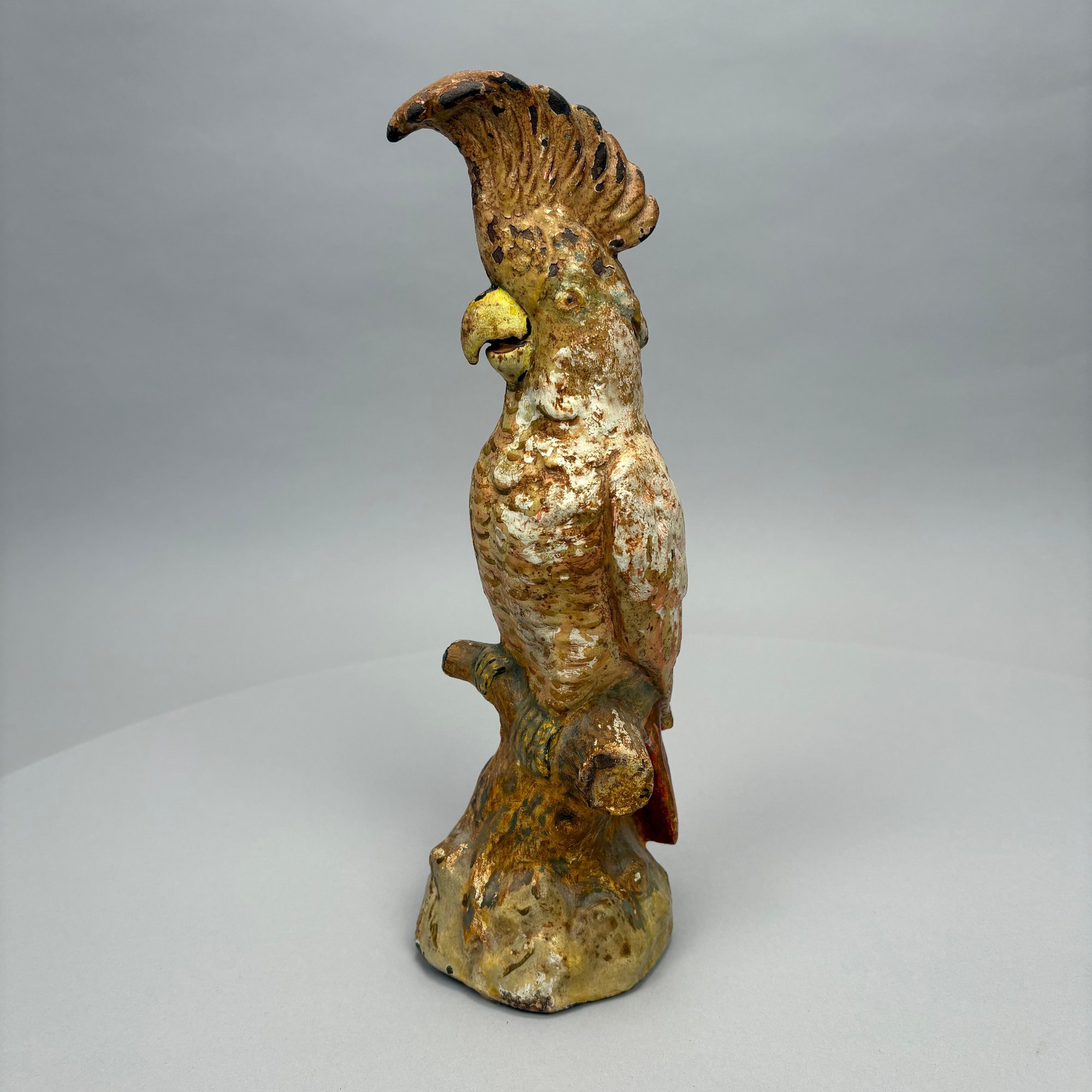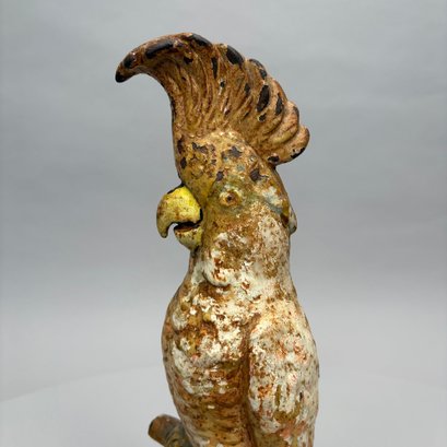 American Painted Cast-Iron Cockatoo on a Tree Stump Doorstop, Early 20th Century.