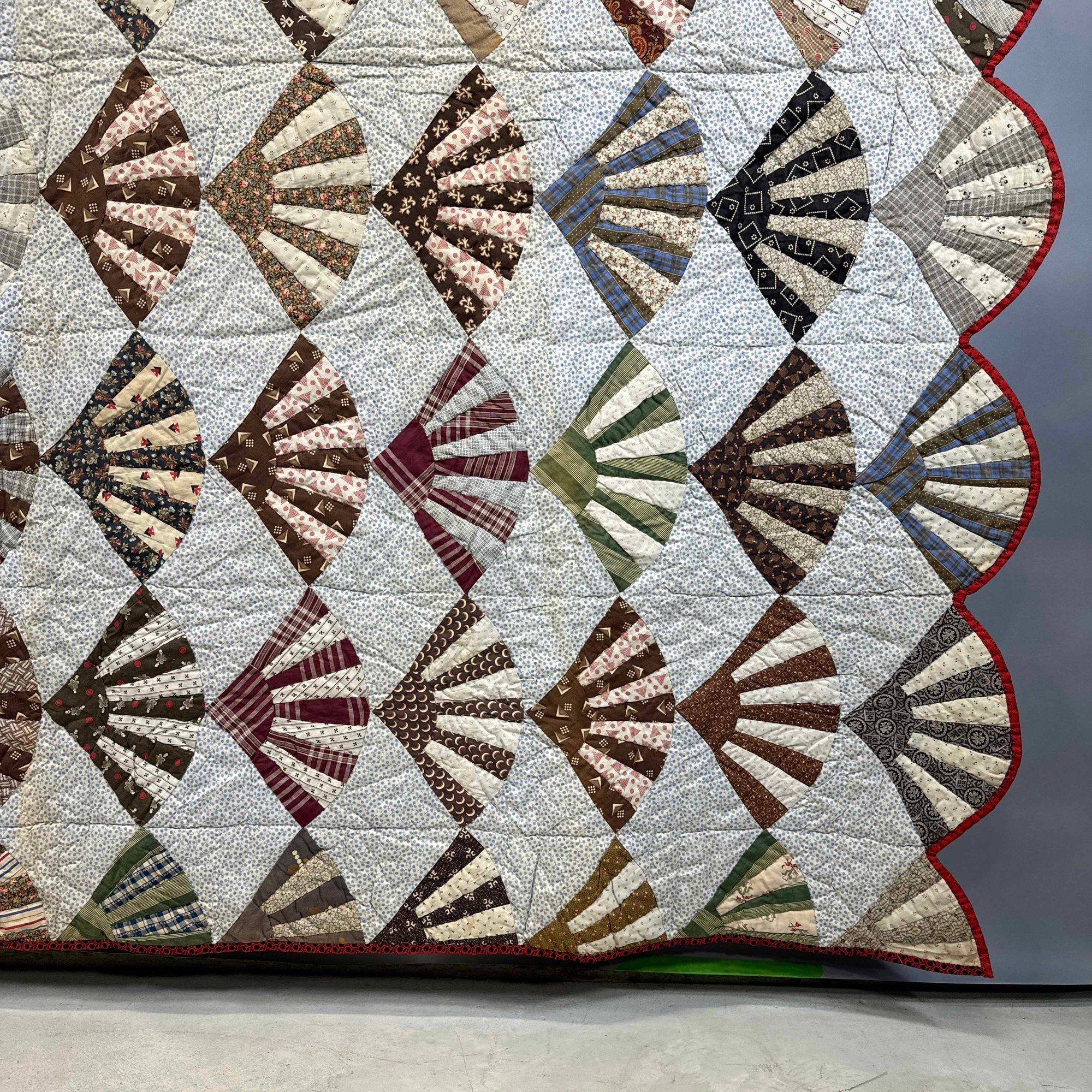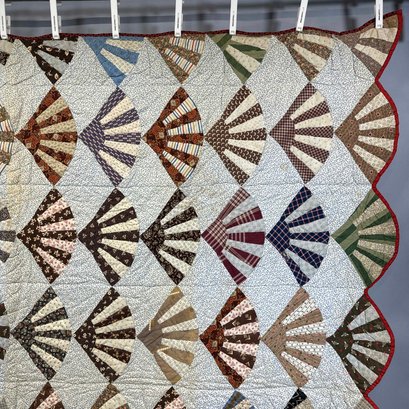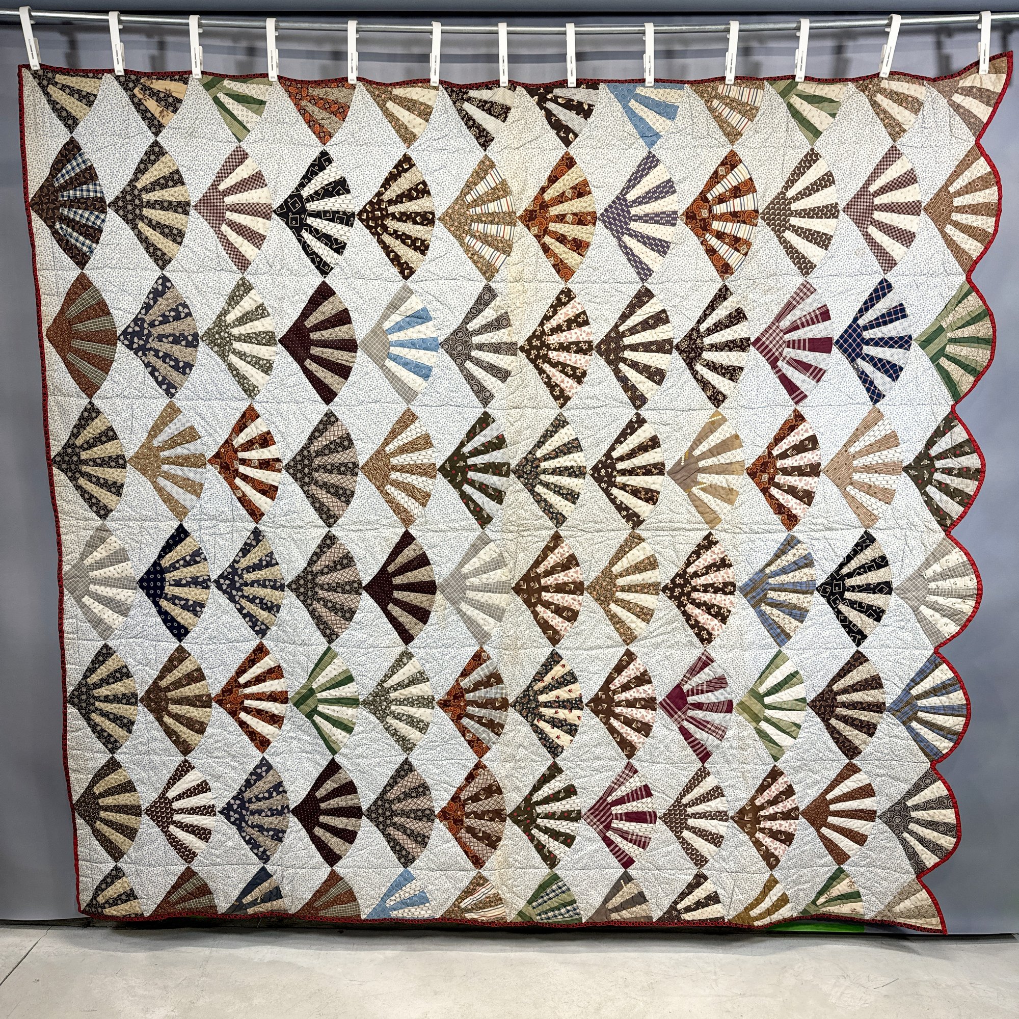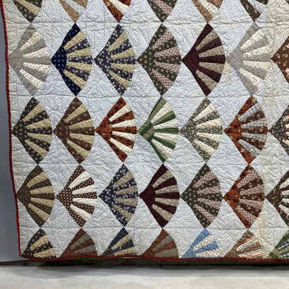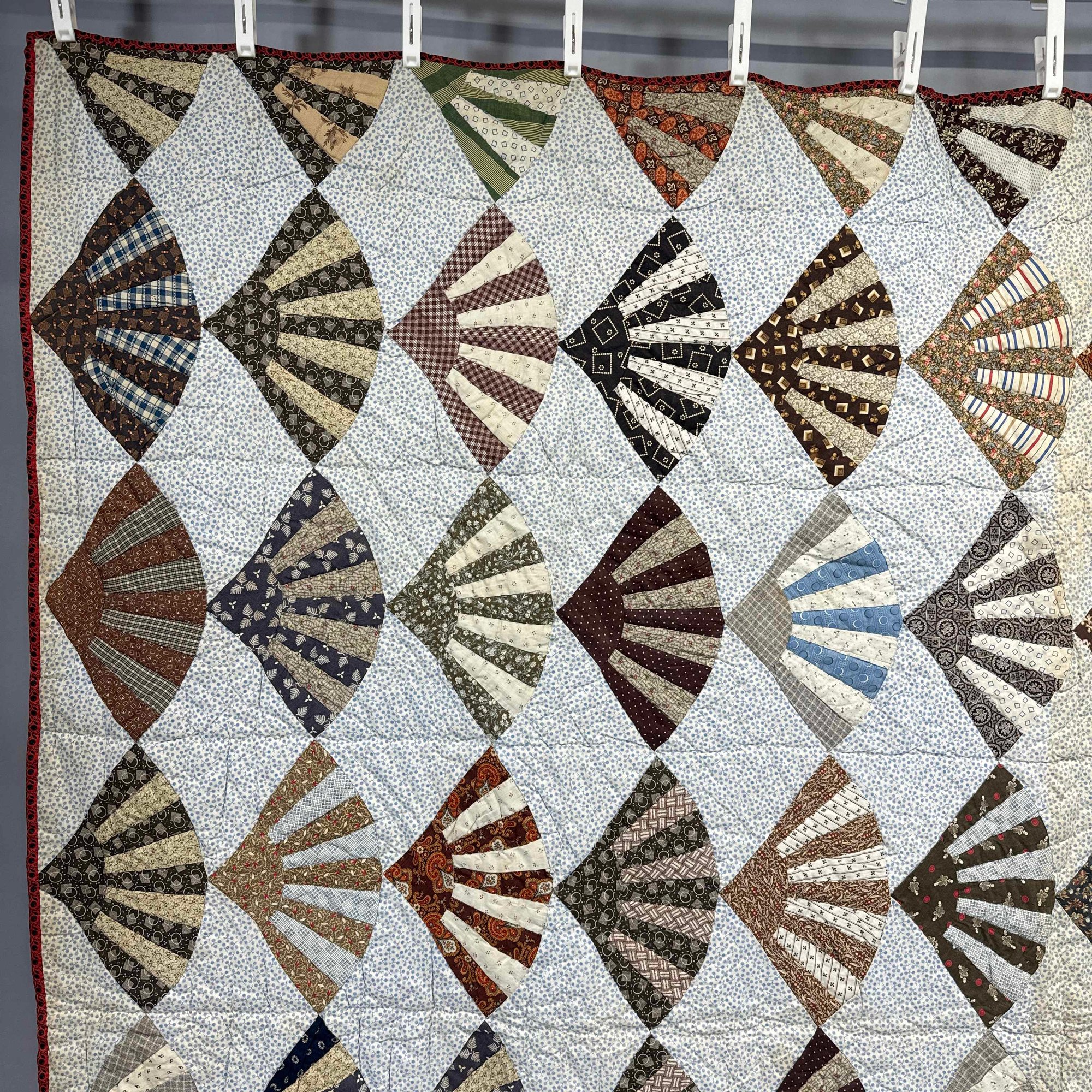 American Pieced Cotton 'Fan' Pattern Quilt, Late 19th-Early 20th Century. With paisley backing.