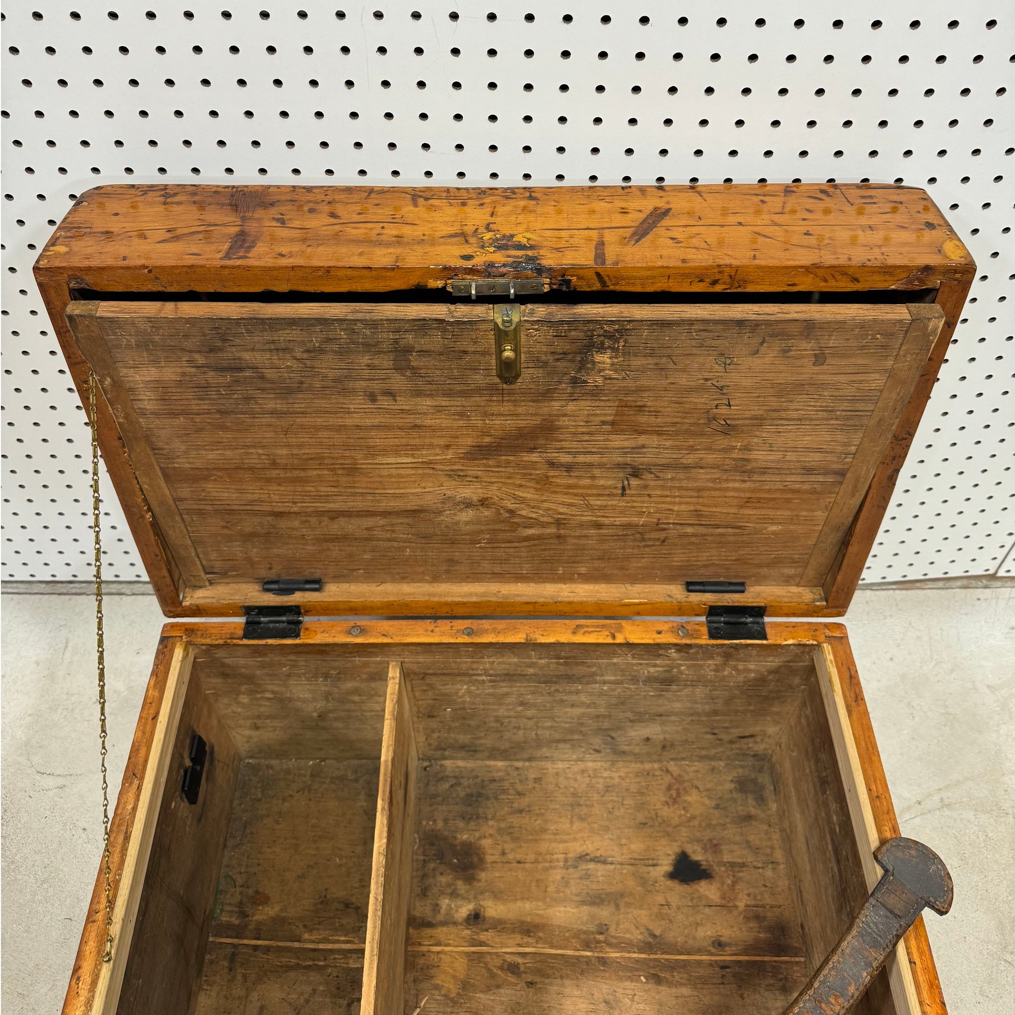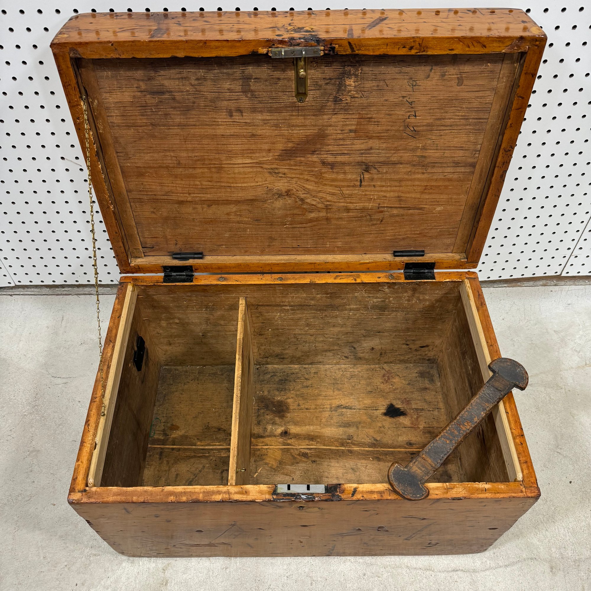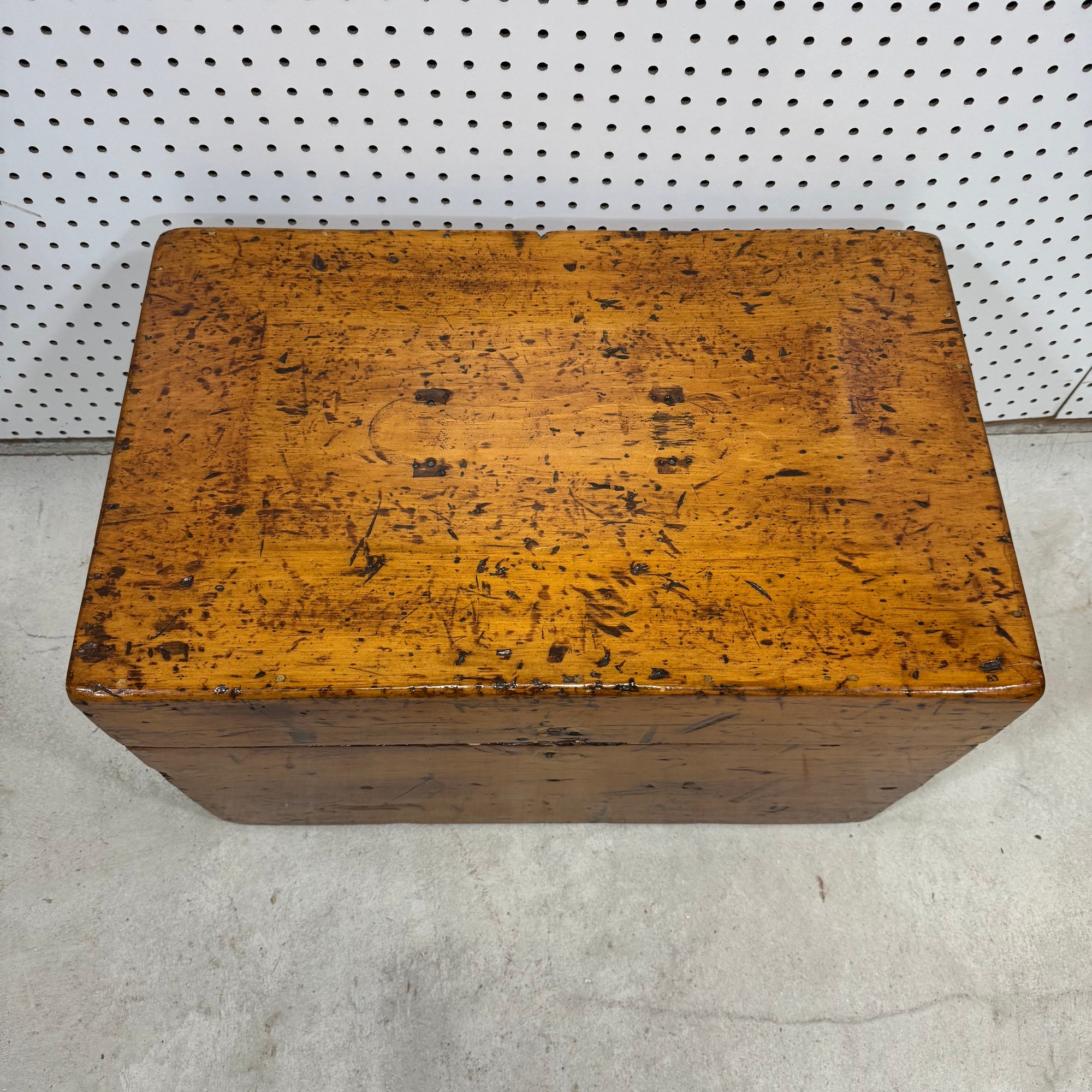 American Pine Storage Box, Late Nineteenth-Early Twentieth Century. The lid fitted with an inner cover creating a storage compartment, with leather strap handle.