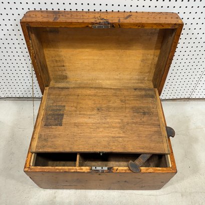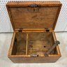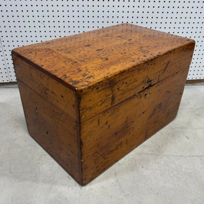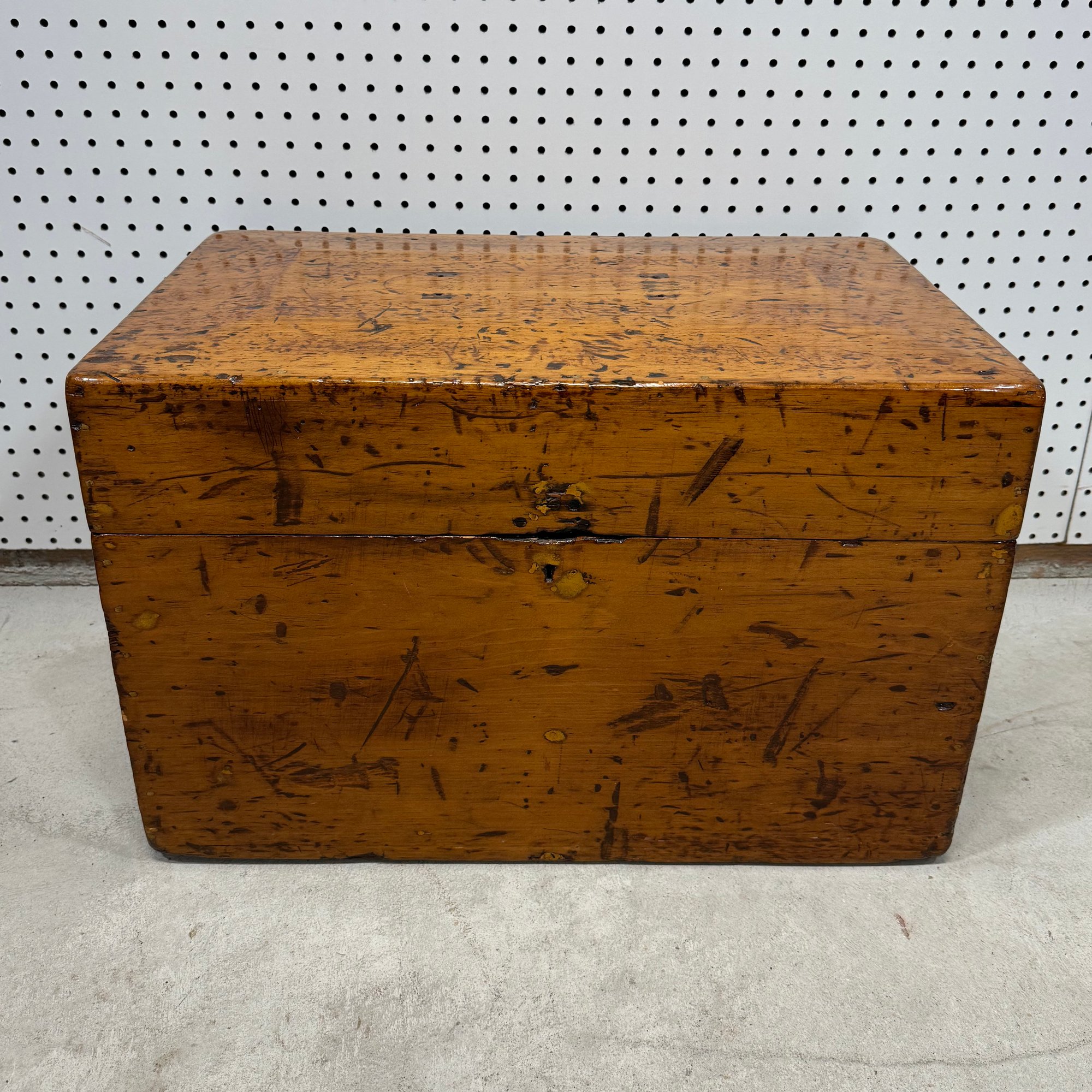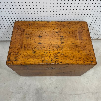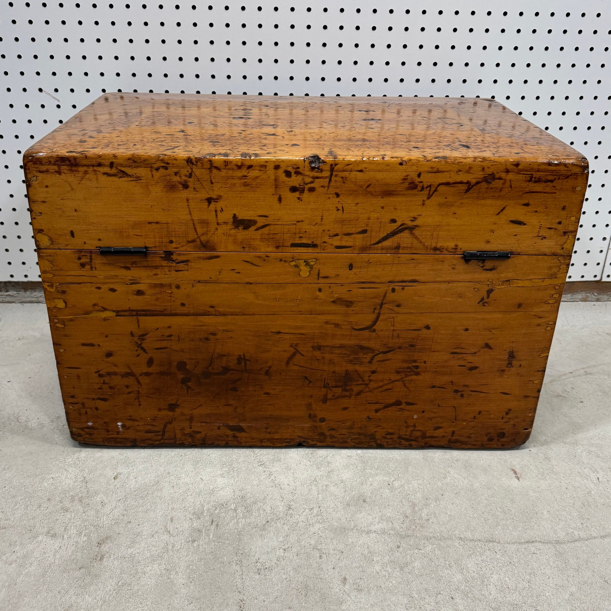 American Pine Storage Box, Late Nineteenth-Early Twentieth Century. The lid fitted with an inner cover creating a storage compartment, with leather strap handle.