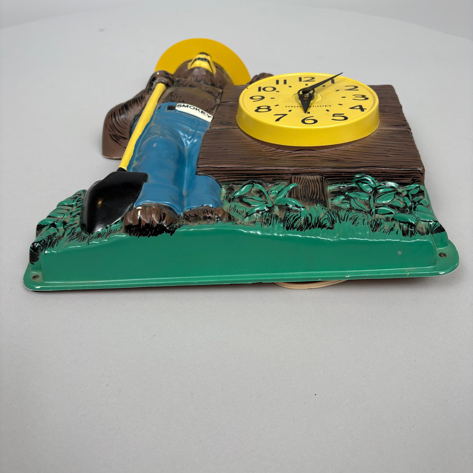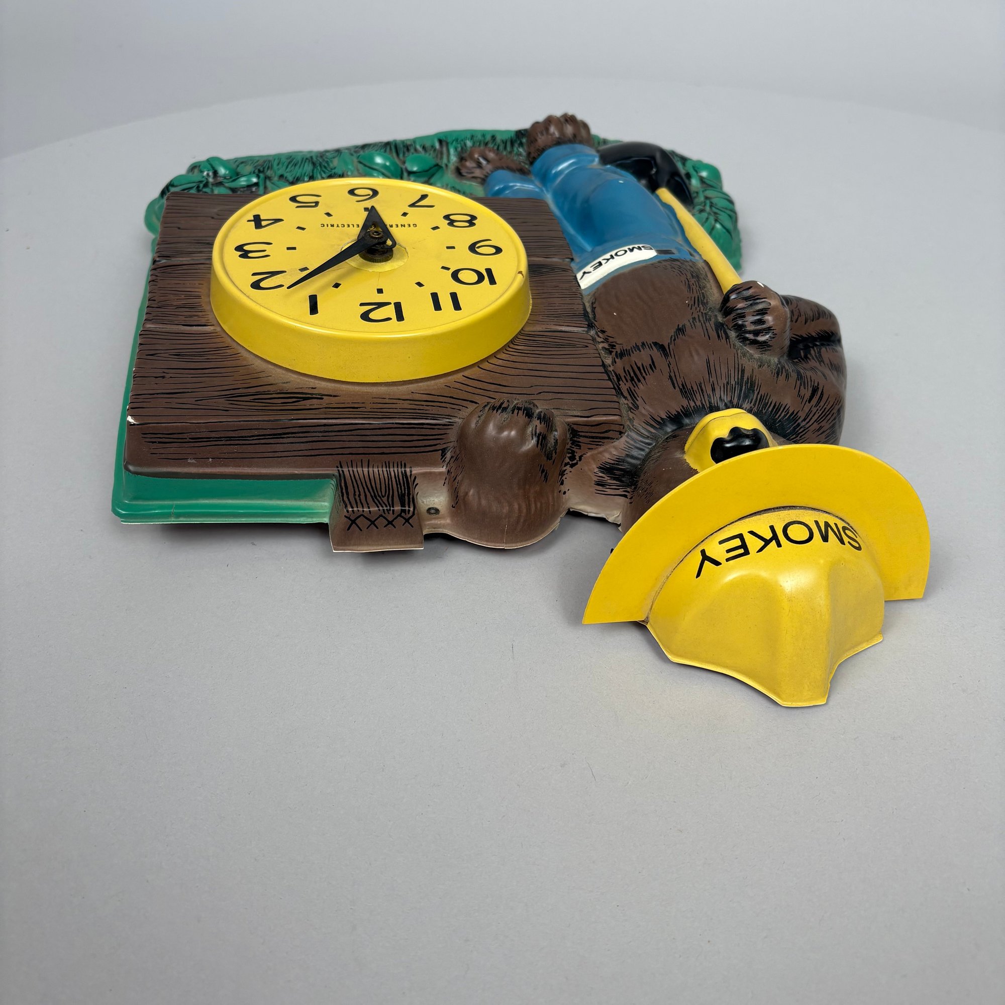American "Smokey Bear" Molded Plastic Wall Clock, The Clock Made by General Electric, 1958-1960s.